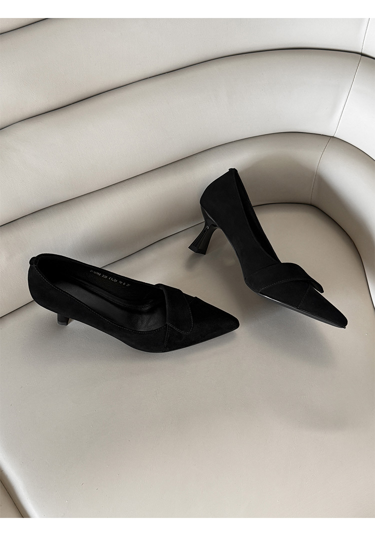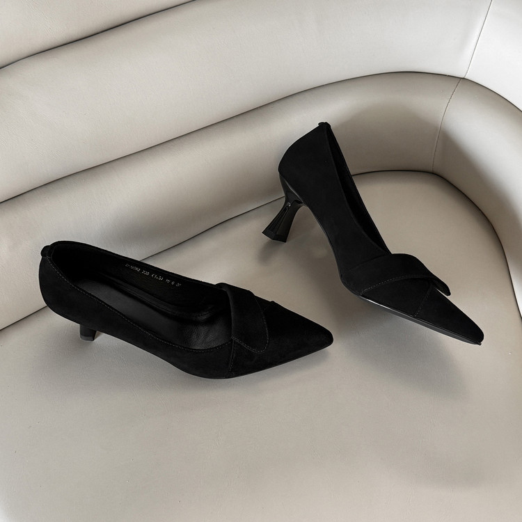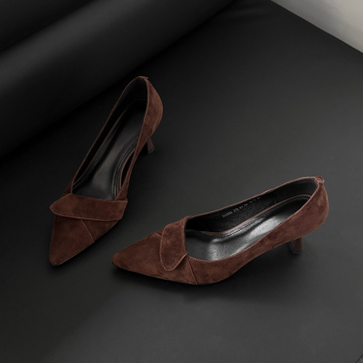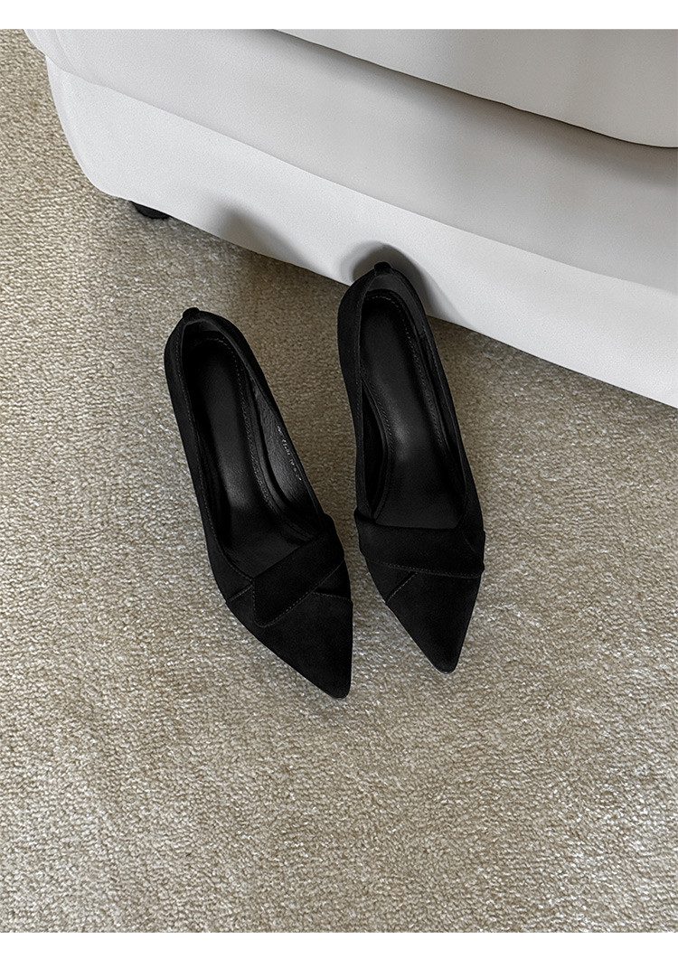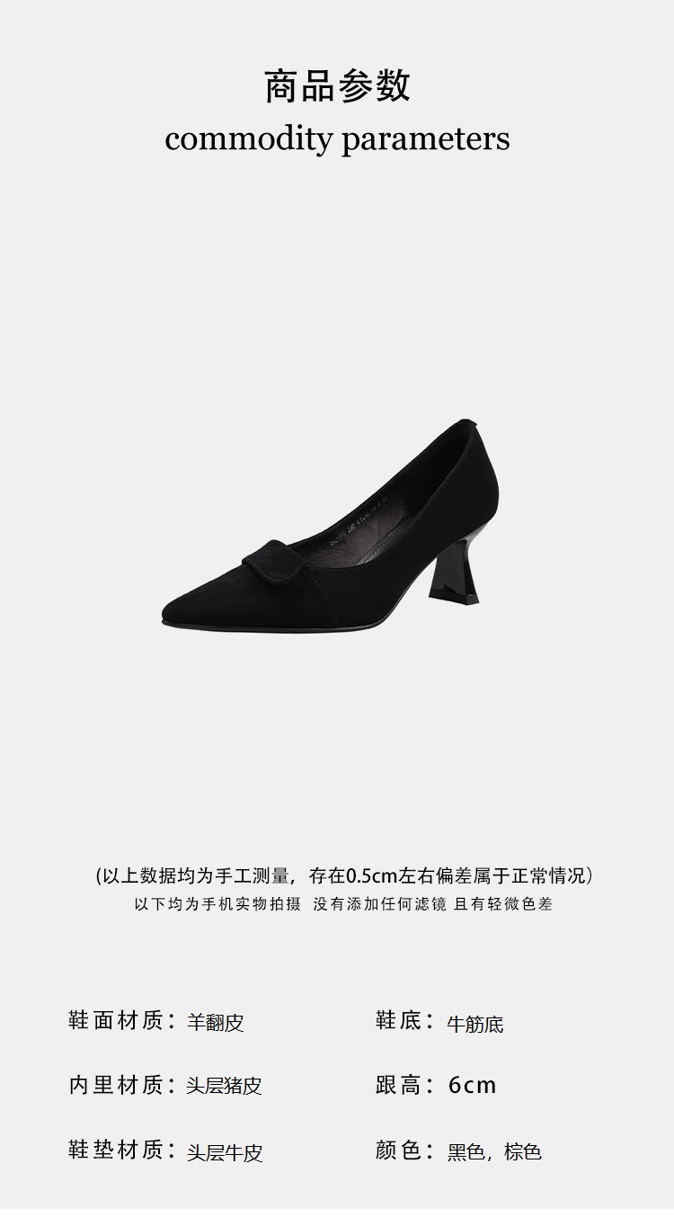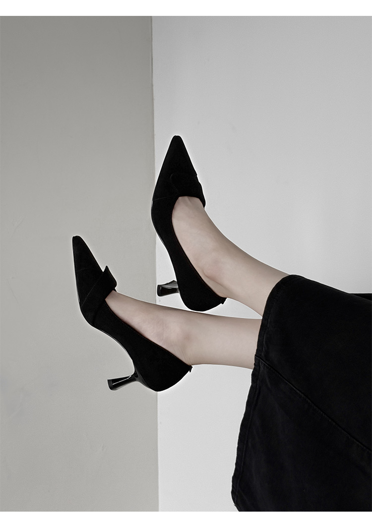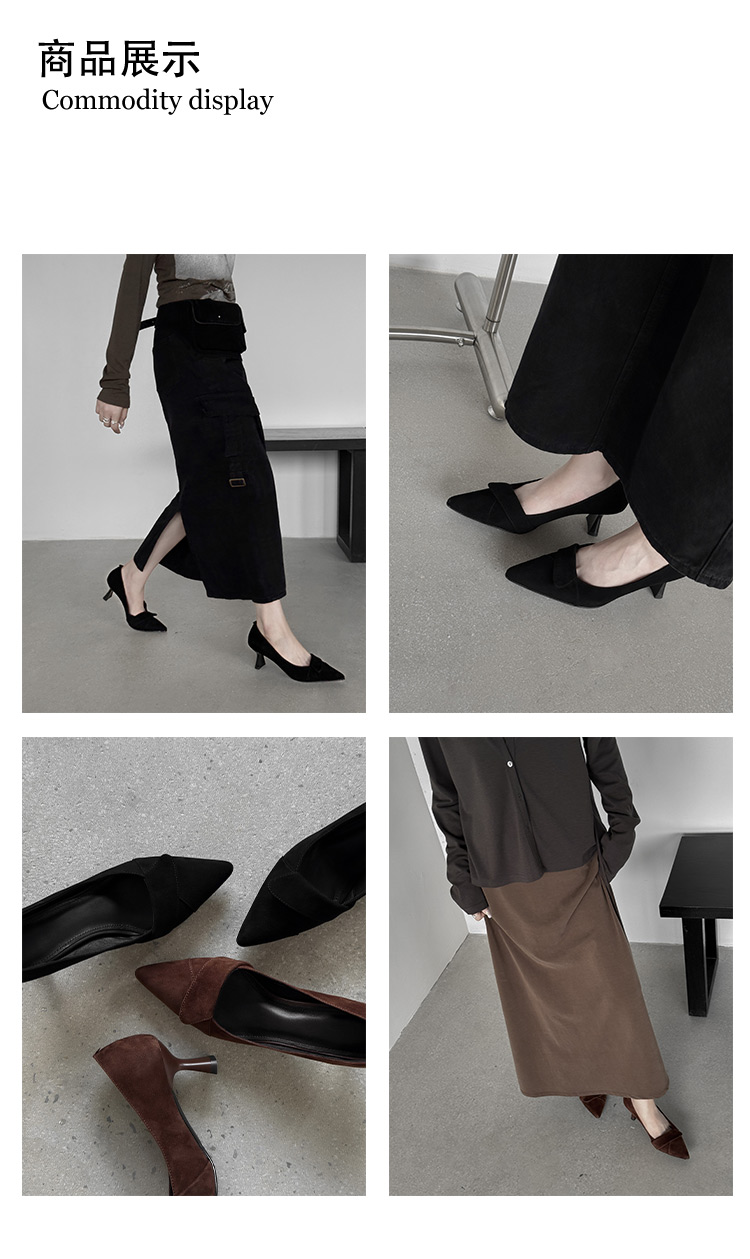 【预售5天】秋季法式复古绒面尖头高跟鞋女浅口细跟职业通勤百搭气质单鞋DQ&DQ9563W
