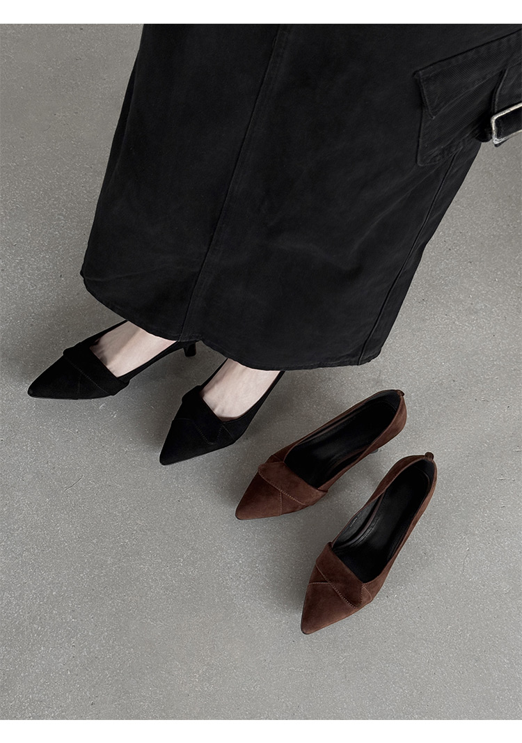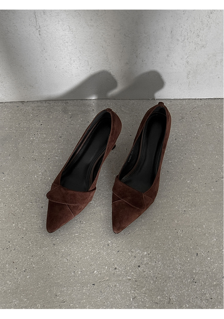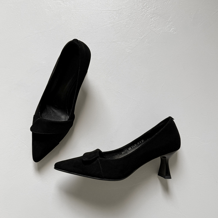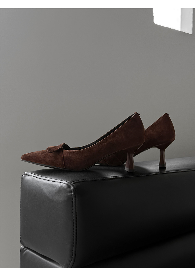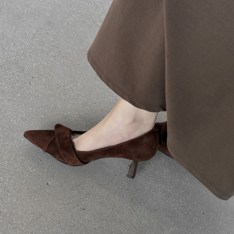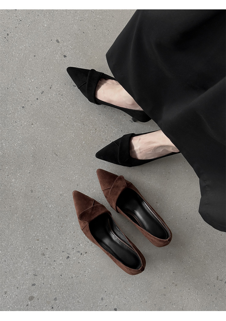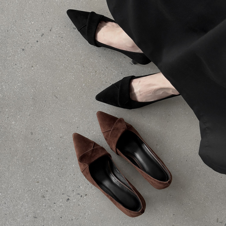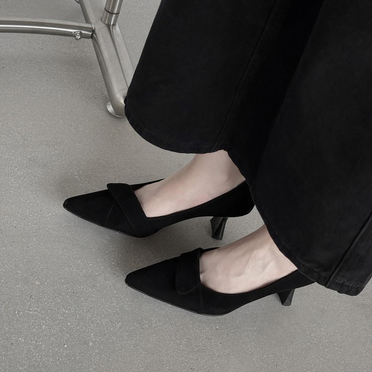 【预售5天】秋季法式复古绒面尖头高跟鞋女浅口细跟职业通勤百搭气质单鞋DQ&DQ9563W