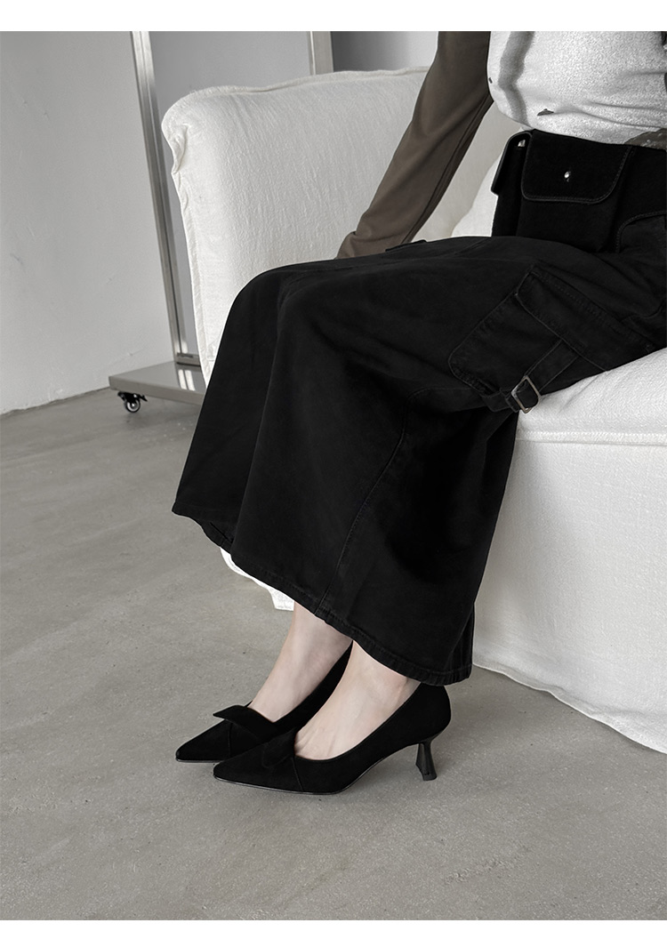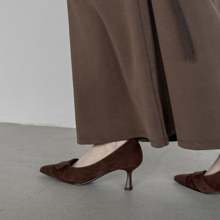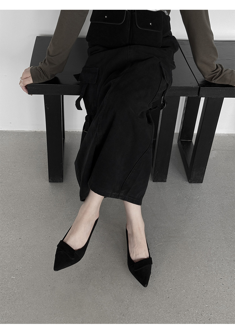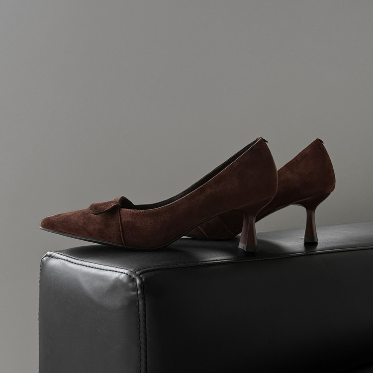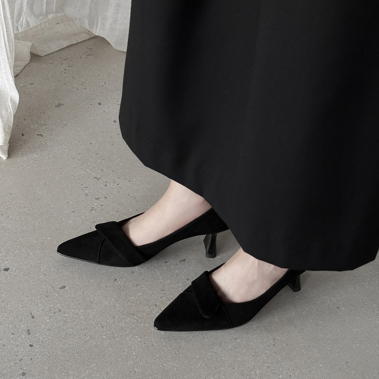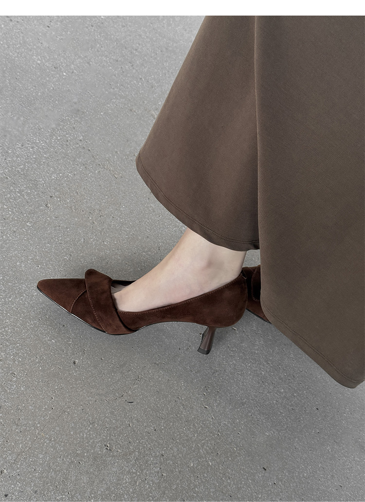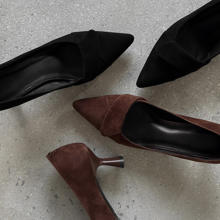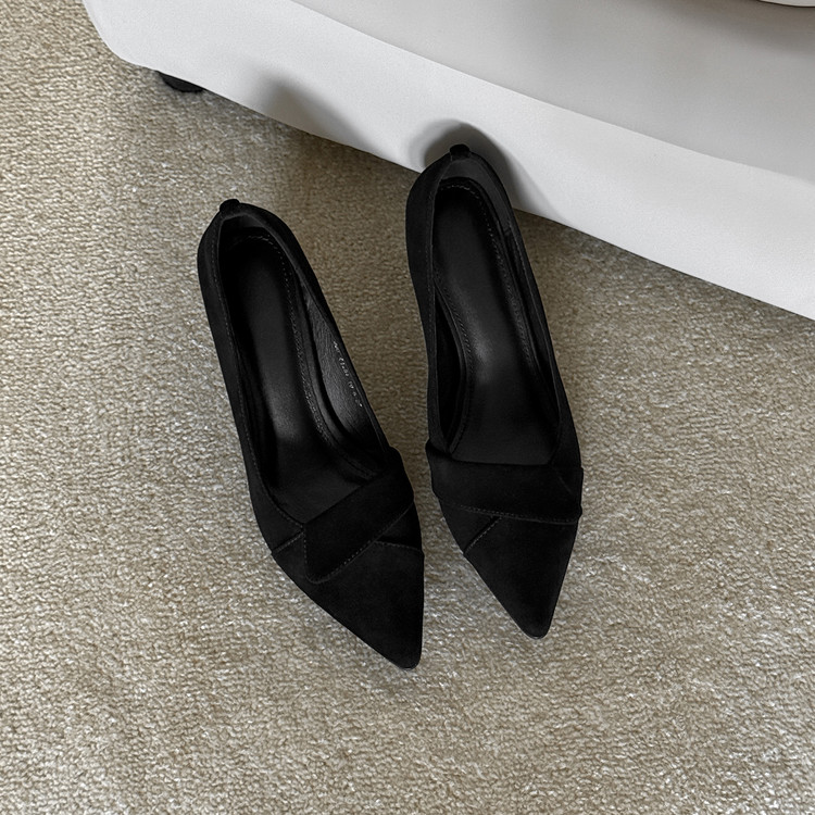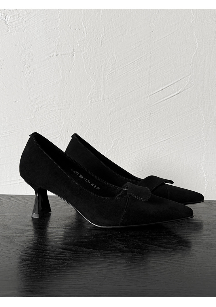 【预售5天】秋季法式复古绒面尖头高跟鞋女浅口细跟职业通勤百搭气质单鞋DQ&DQ9563W