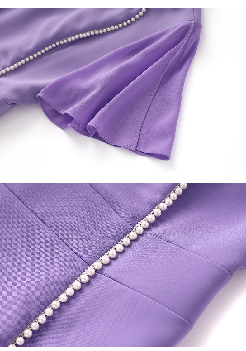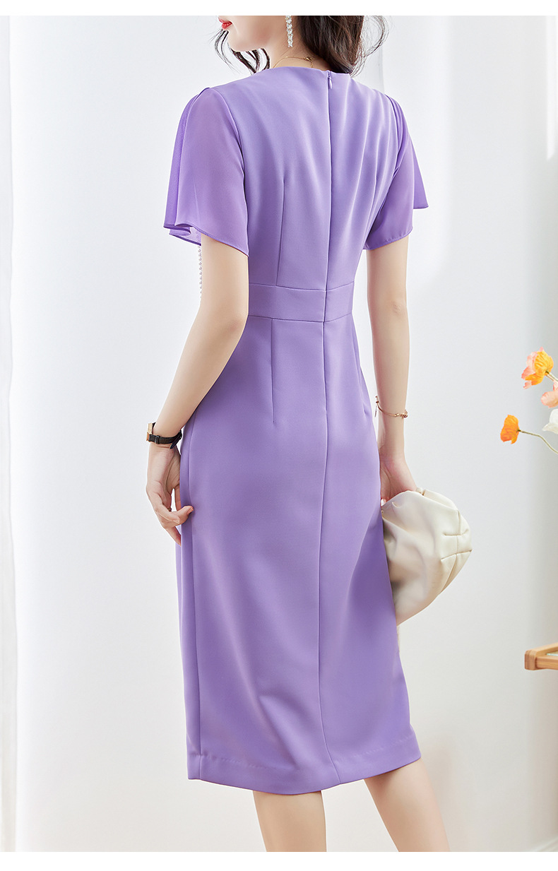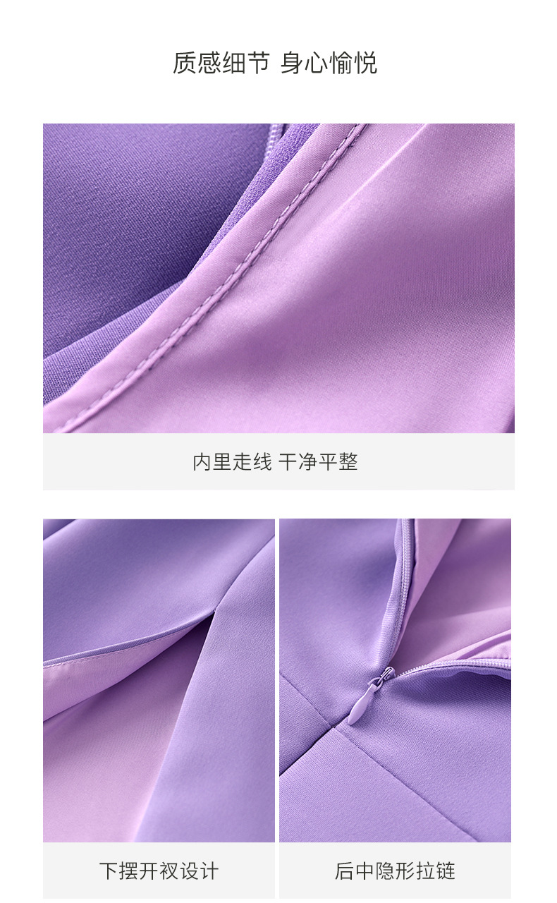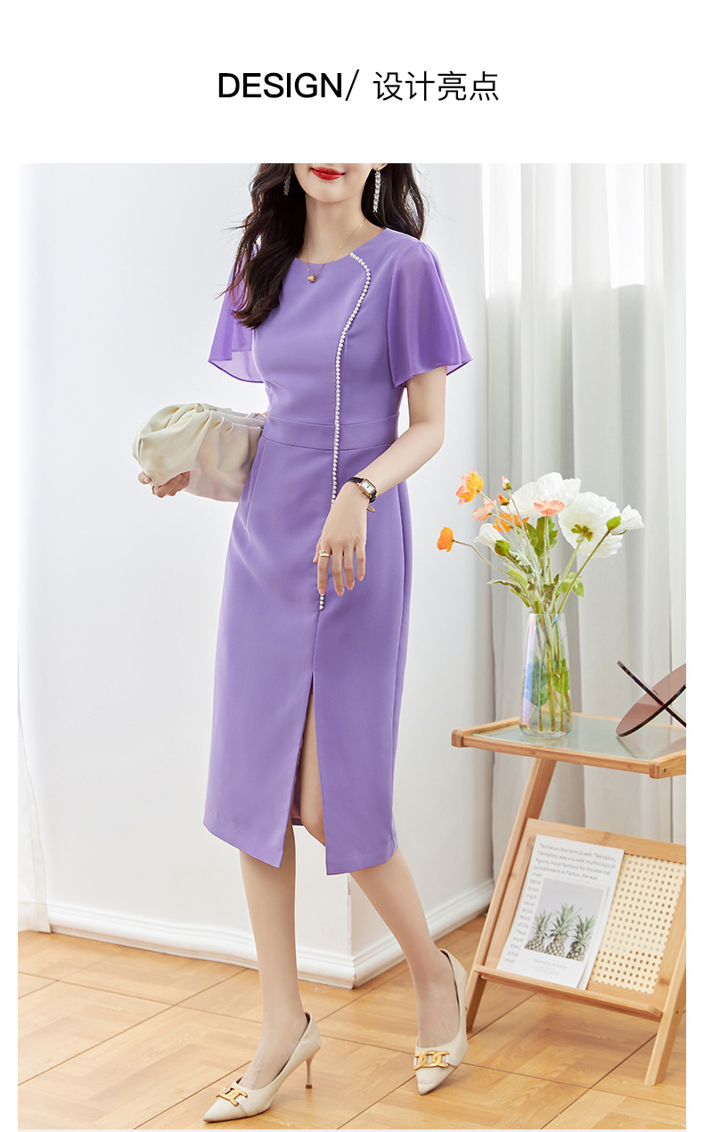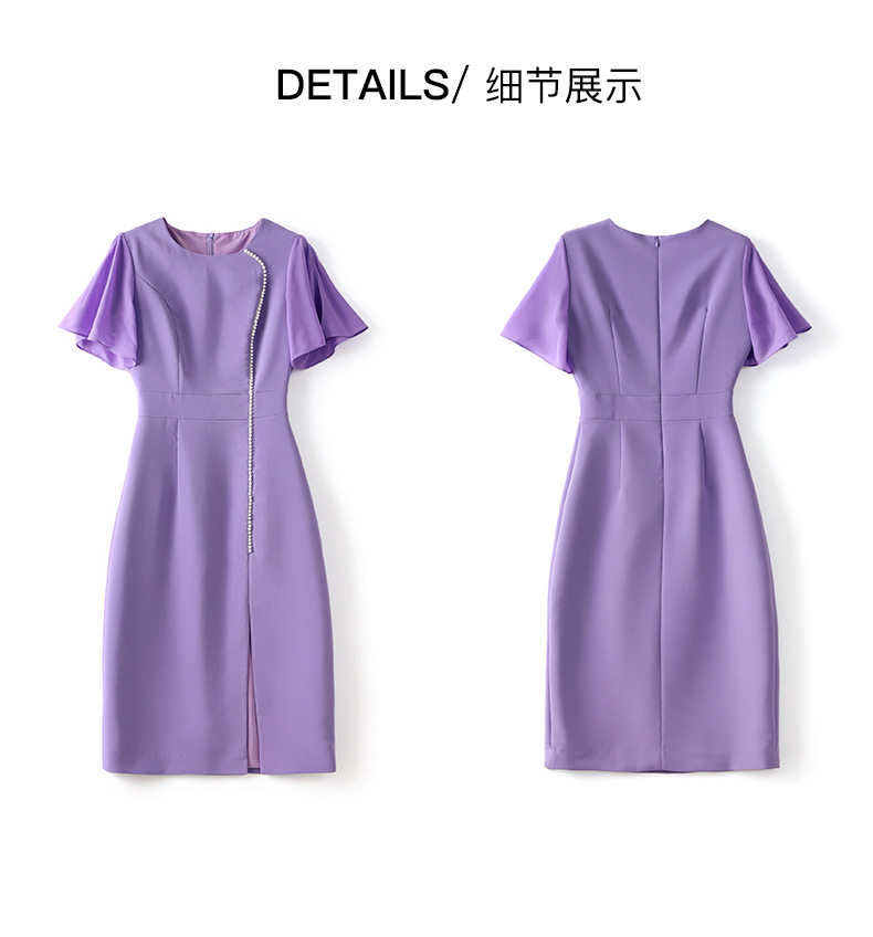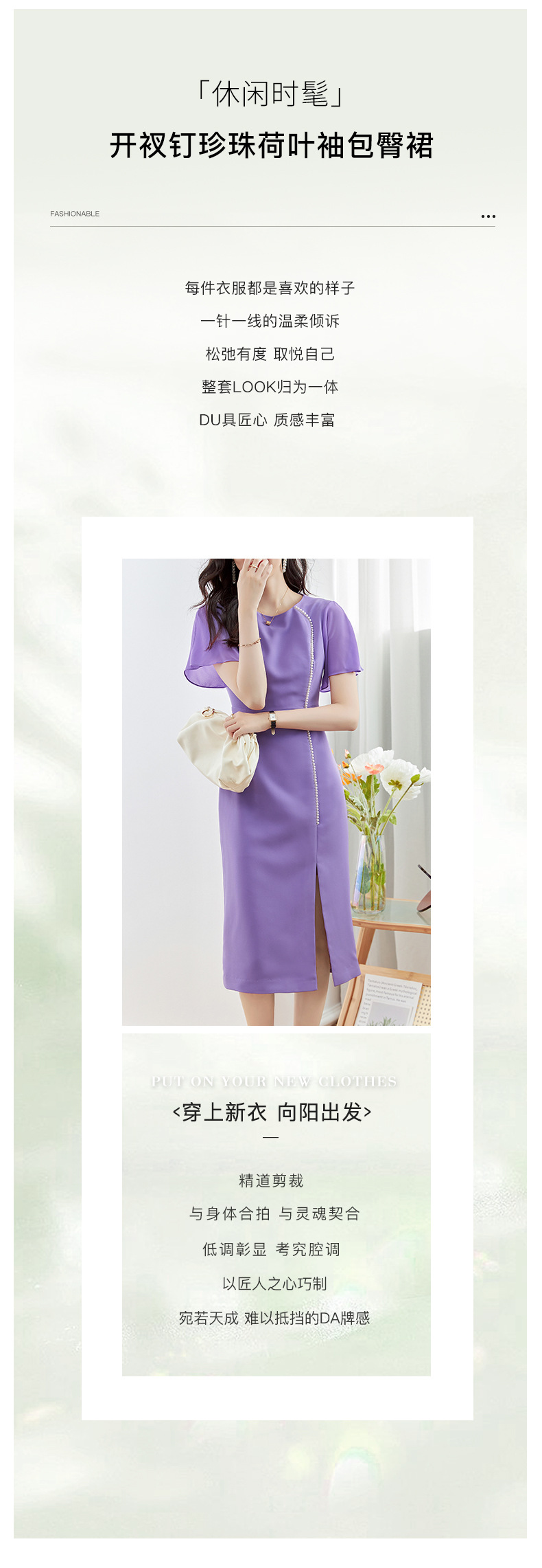 圆领重工钉珠修身收腰,显瘦开叉包臀连衣裙WLZD-2313301