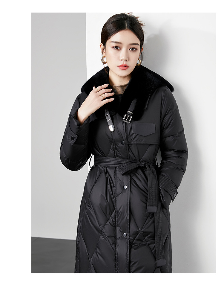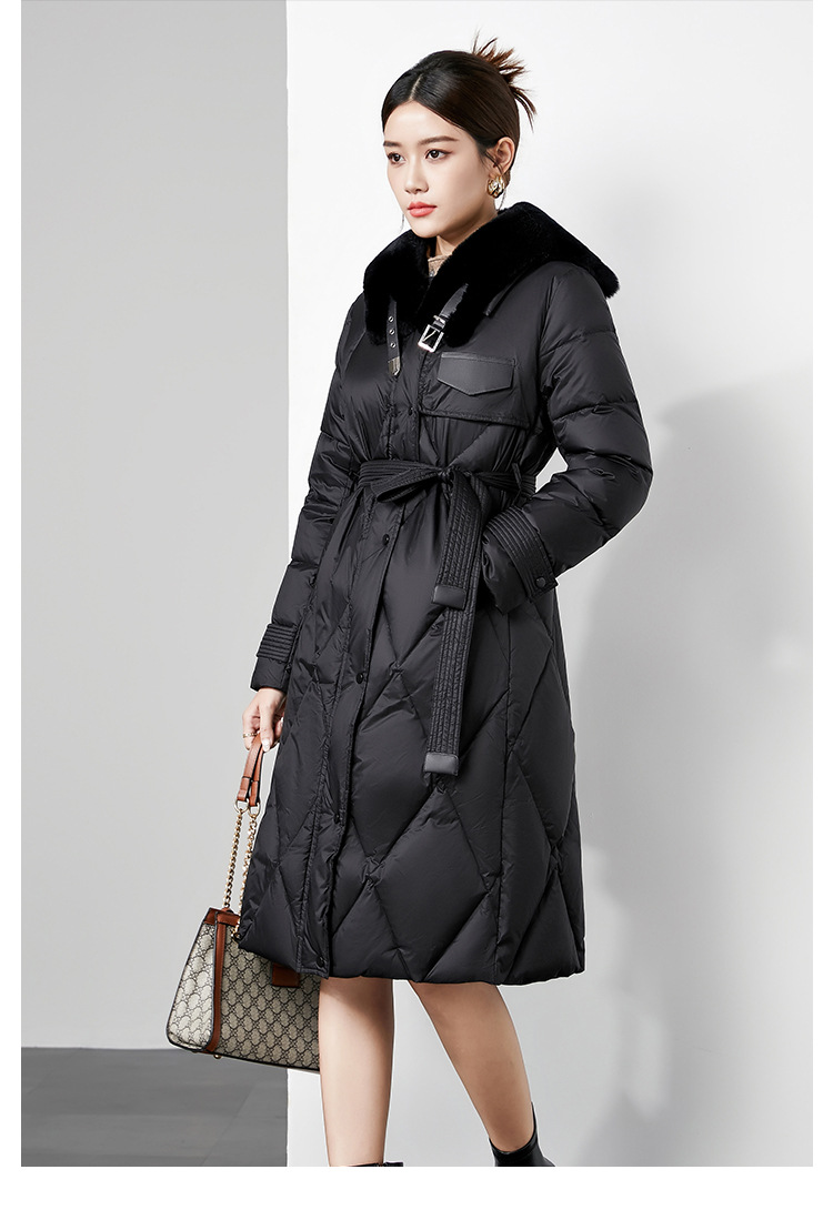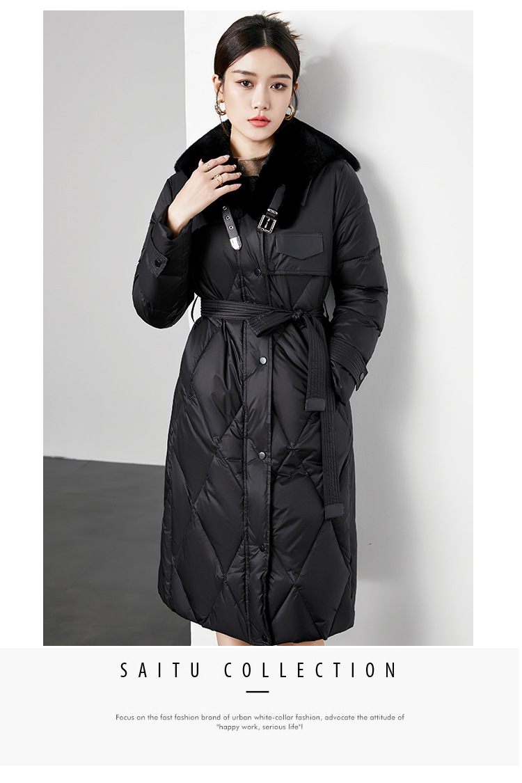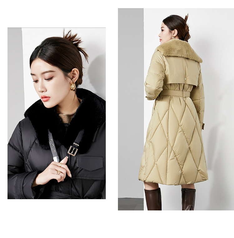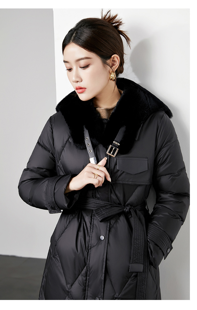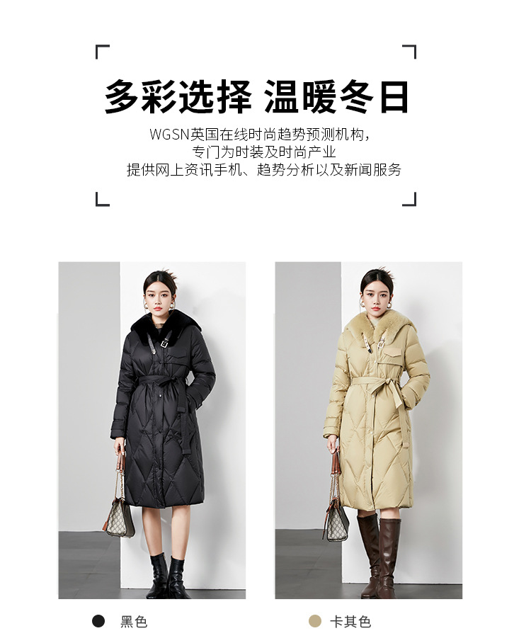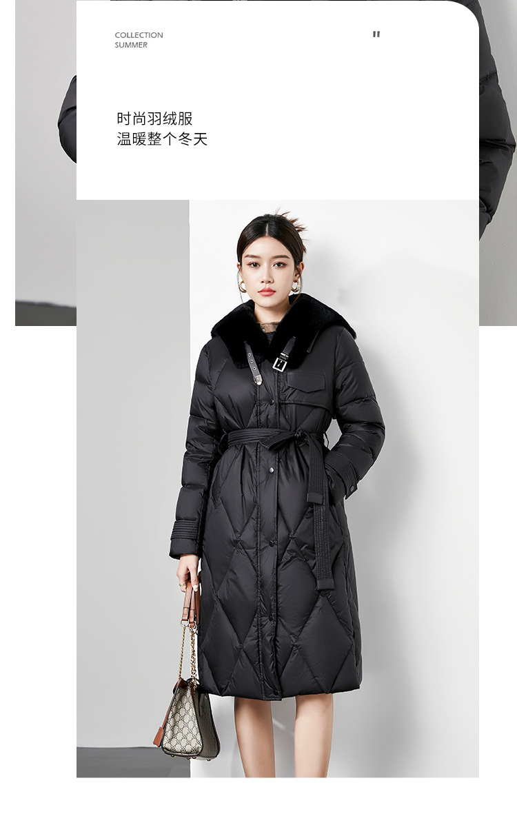 时尚中长款高级感毛领羽绒服,白鸭绒新款收腰女式羽绒外套230140