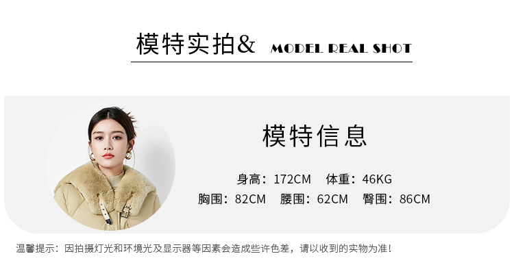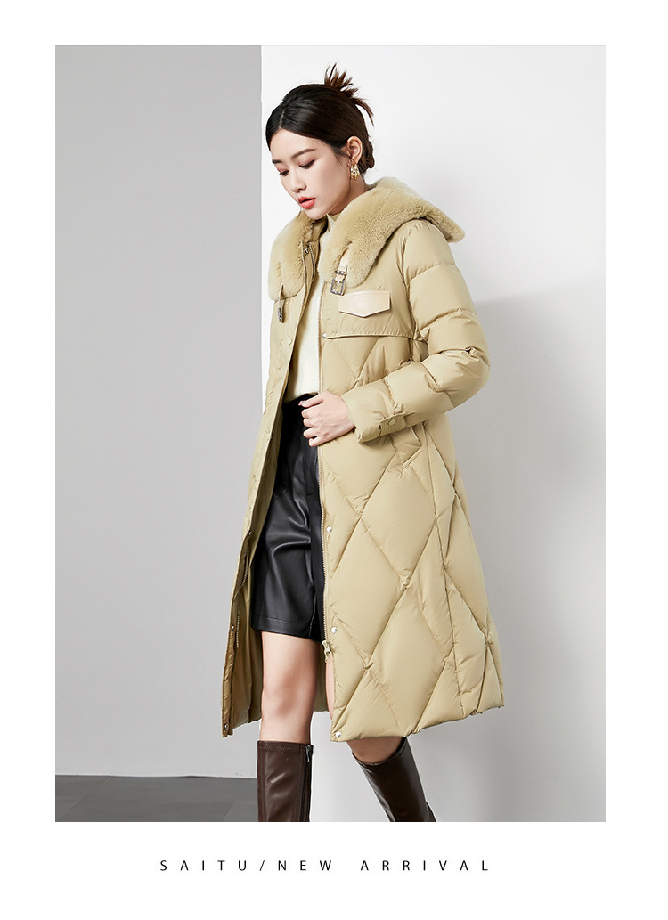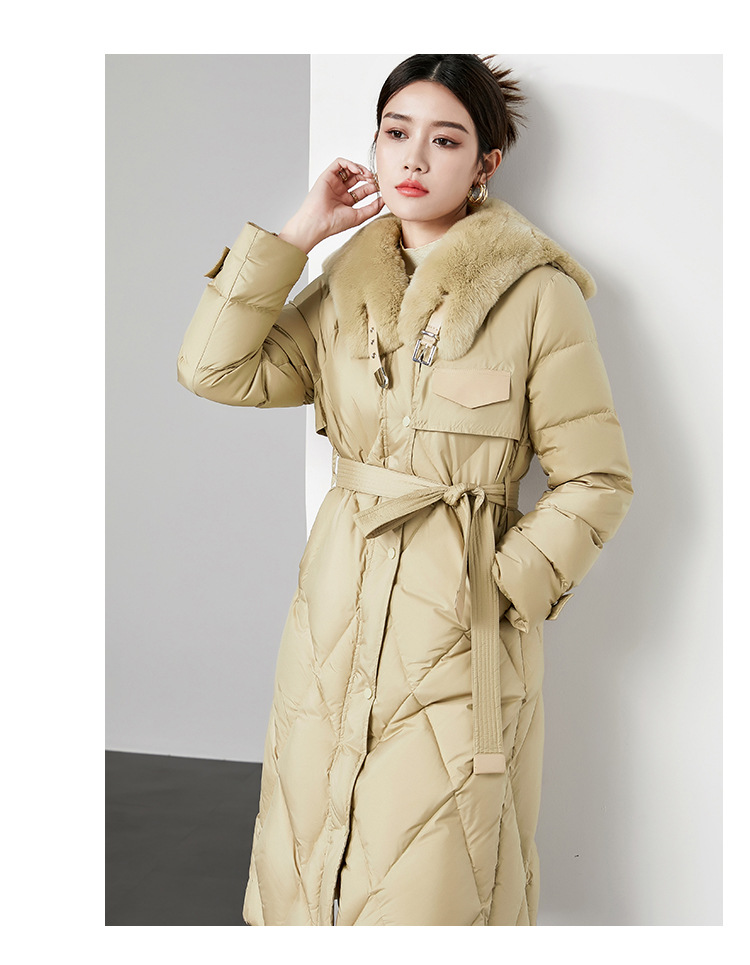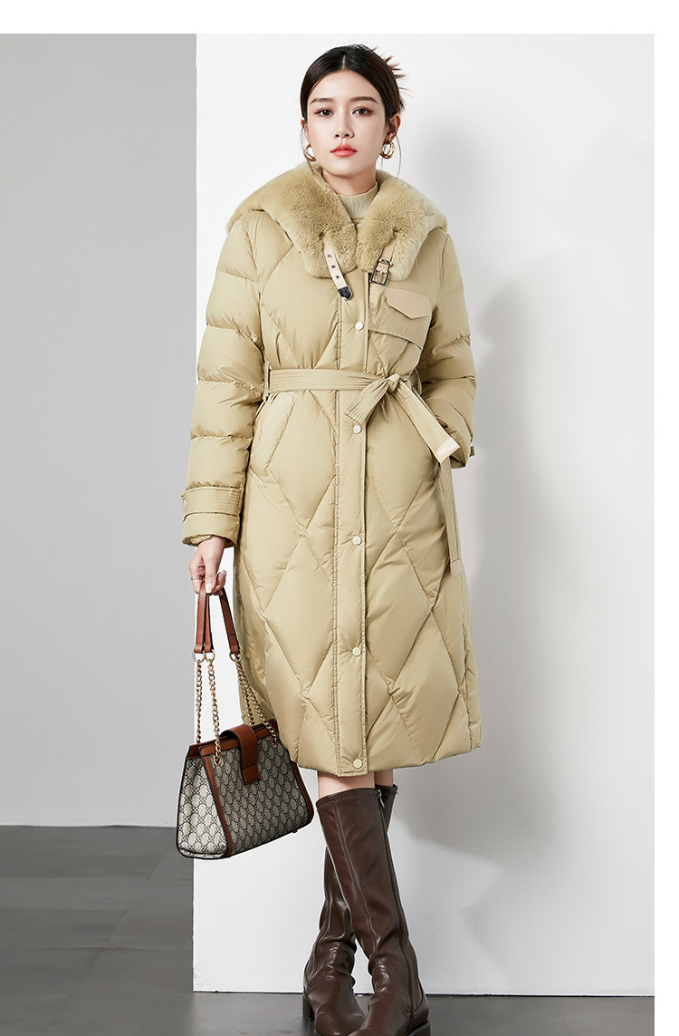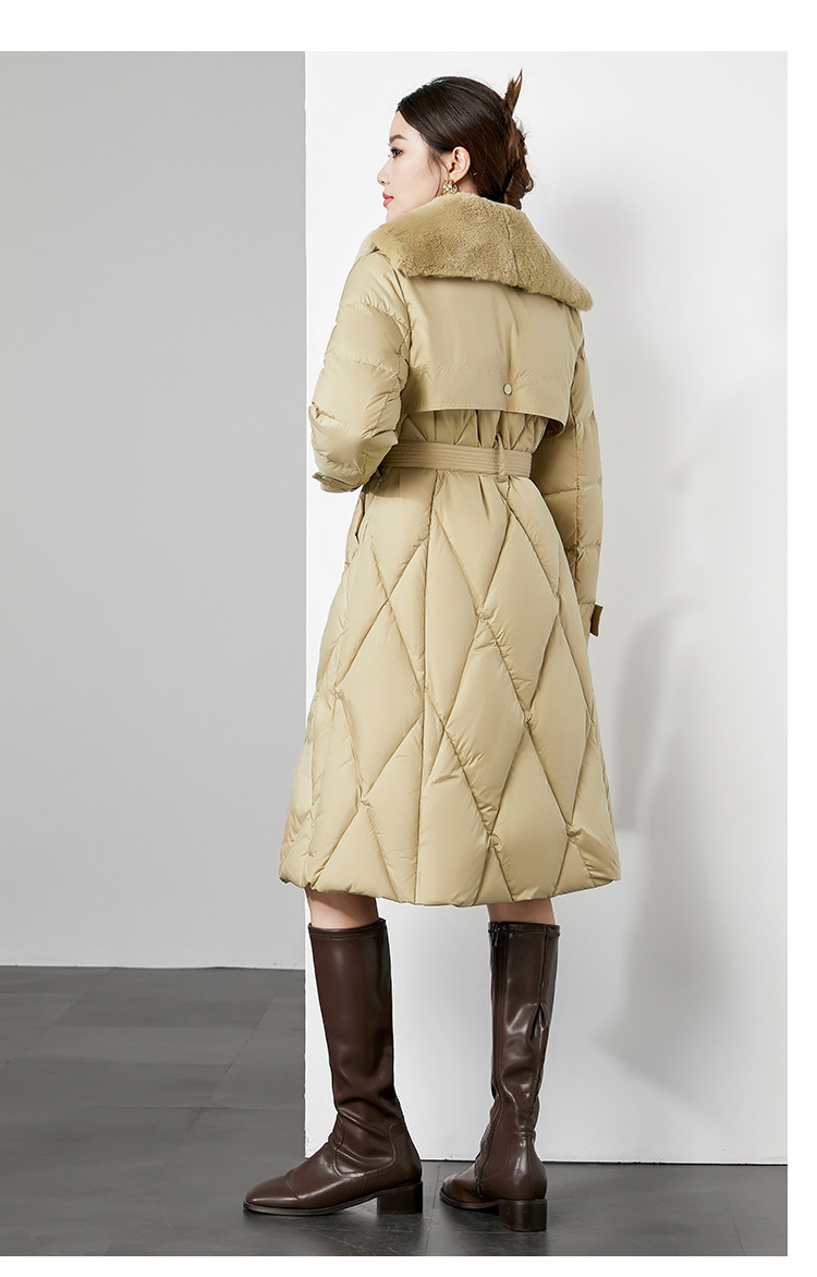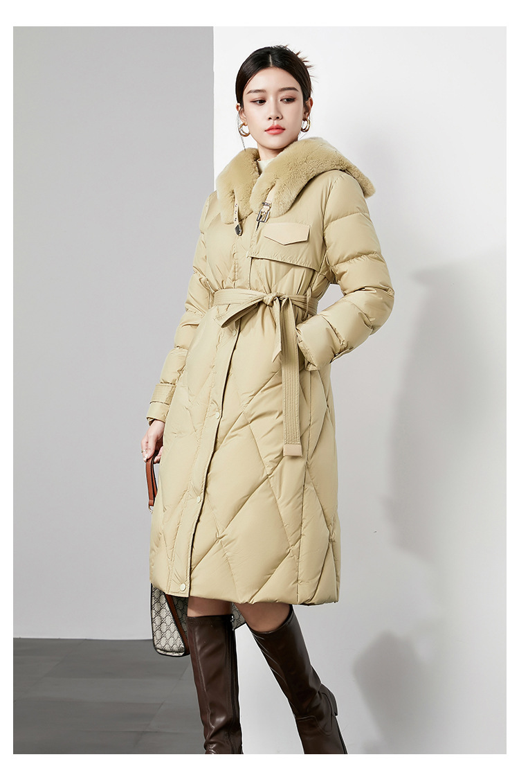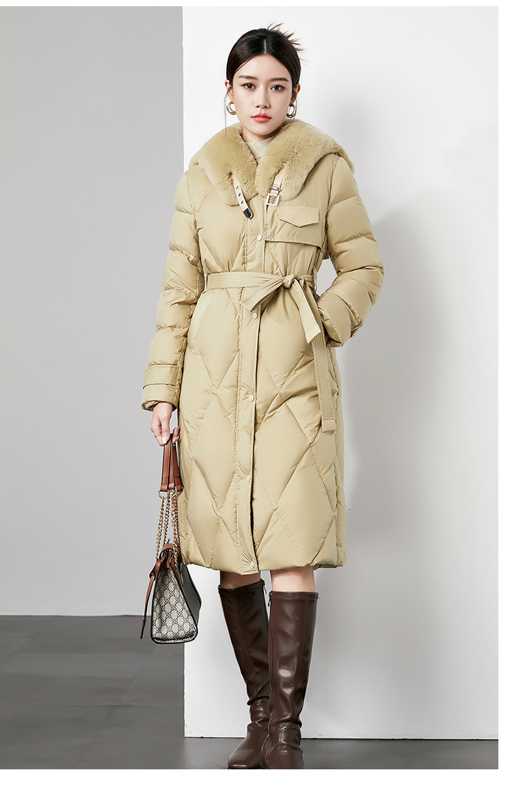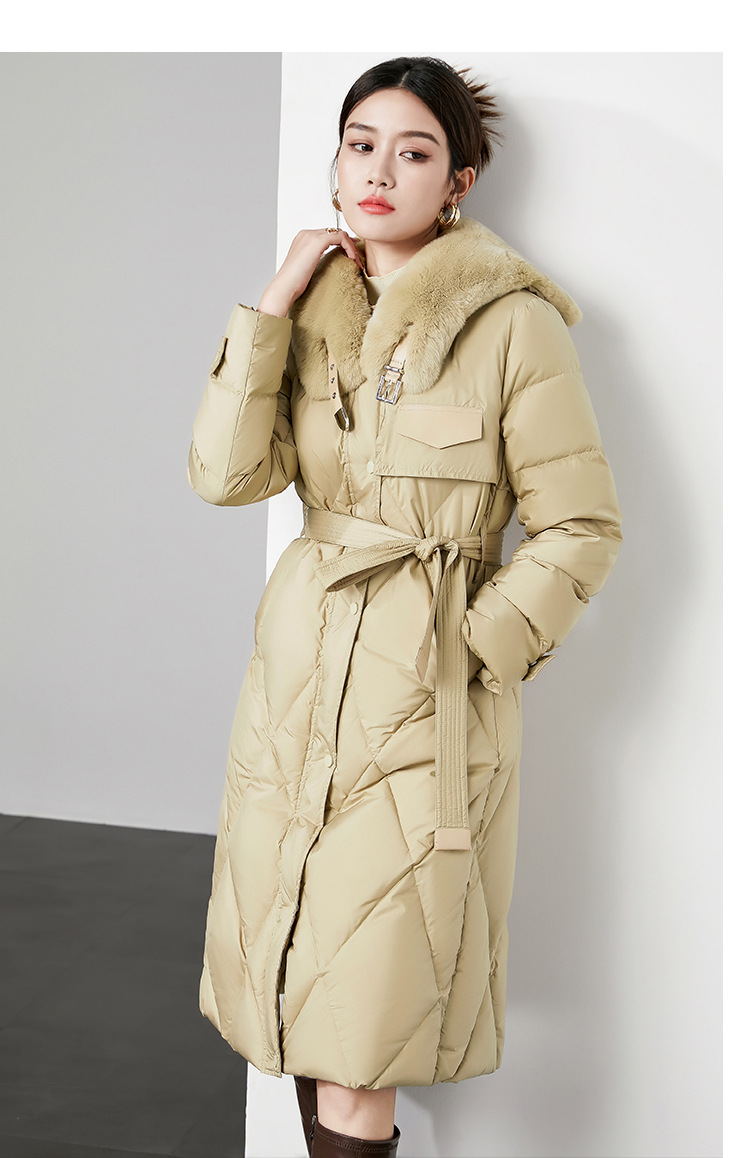 时尚中长款高级感毛领羽绒服,白鸭绒新款收腰女式羽绒外套230140