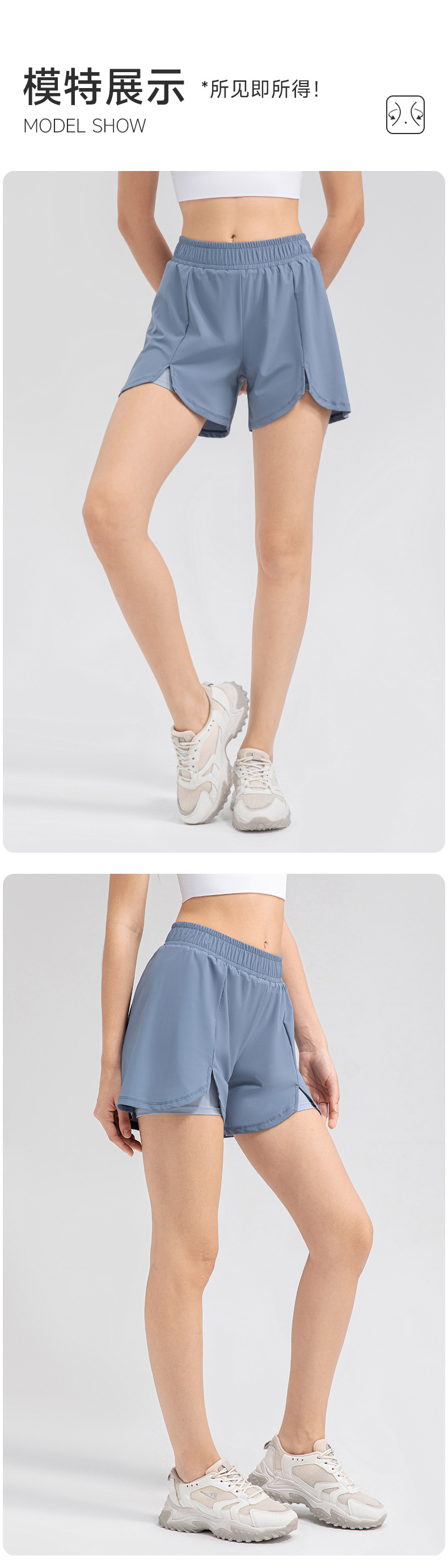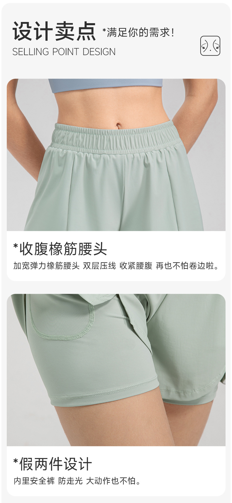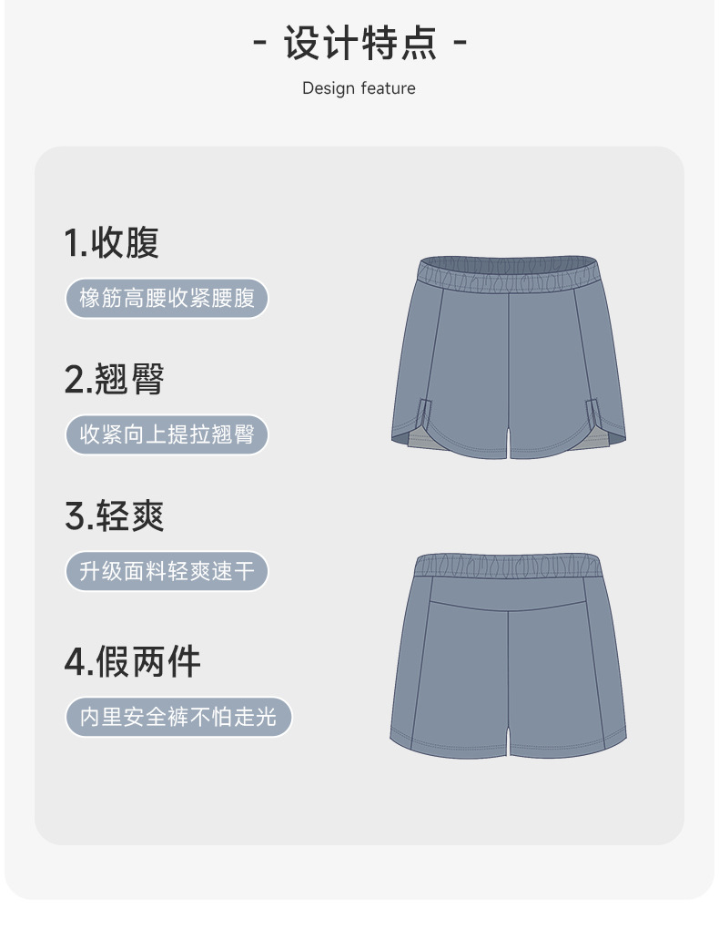 跃牌【欲动春风】系列 瑜伽短裤宽松透气假两件双层运动裤32451