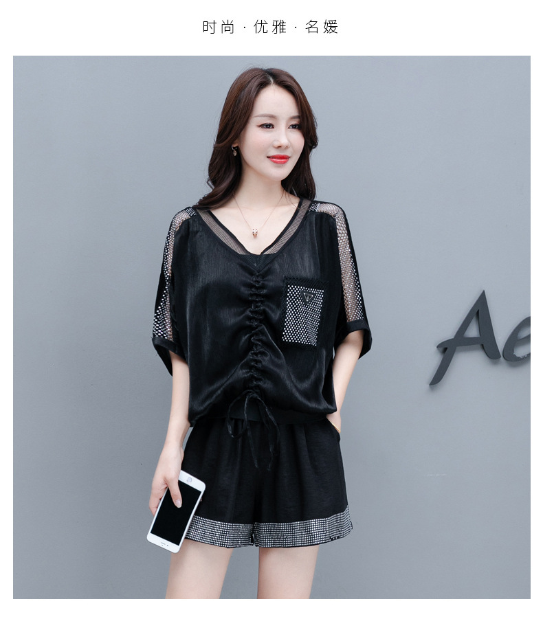 ZYQS-G0180时尚气质冰丝高腰垂感阔腿裤两件套