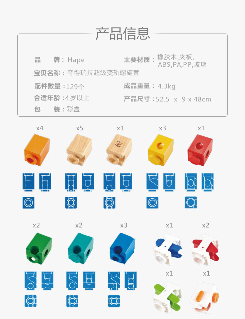 Hape滚珠玩具 steam夸得瑞拉滚珠架拼装积木6岁以上男女小孩儿童礼物 E6024夸得瑞拉变轨螺旋套