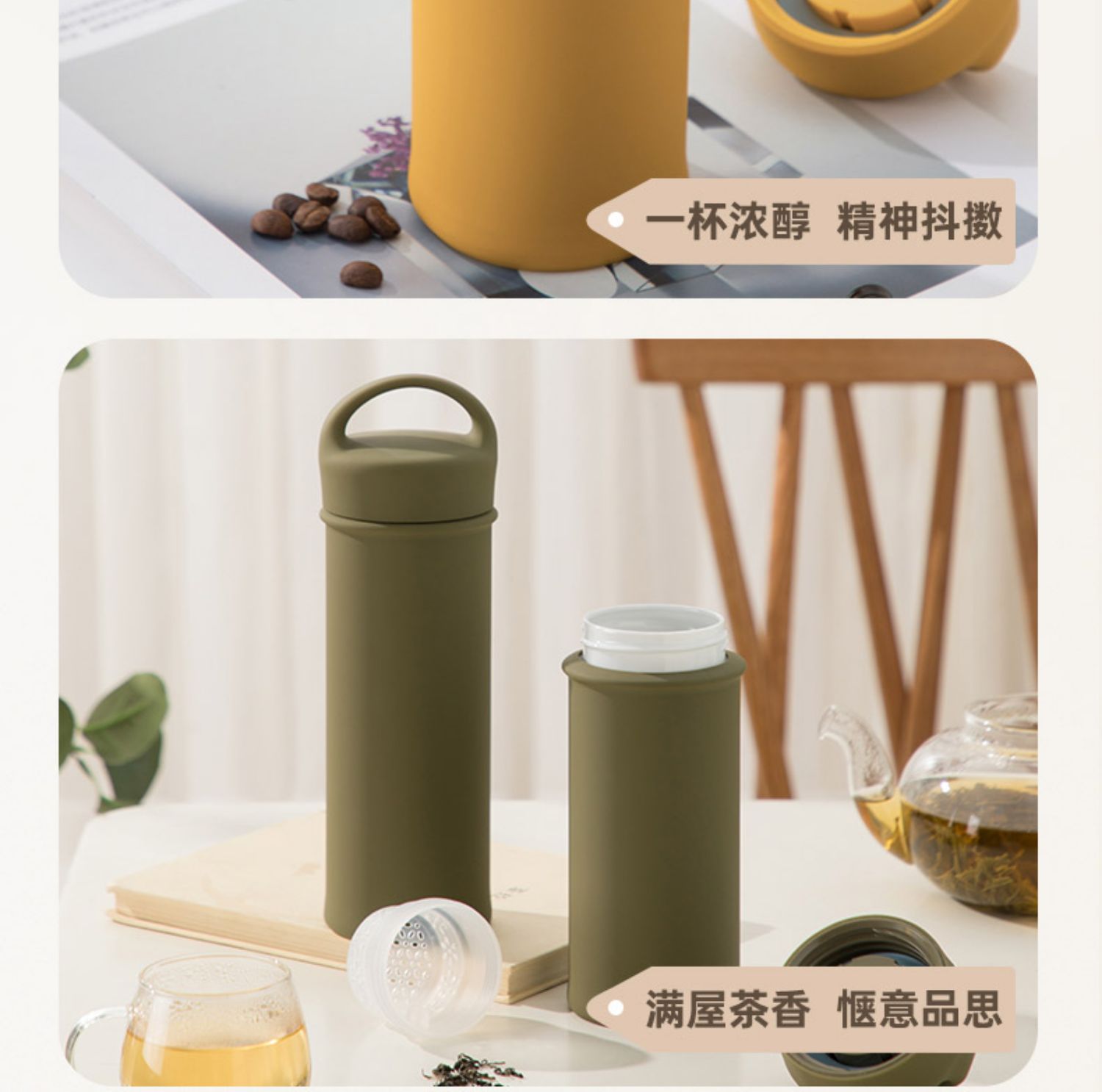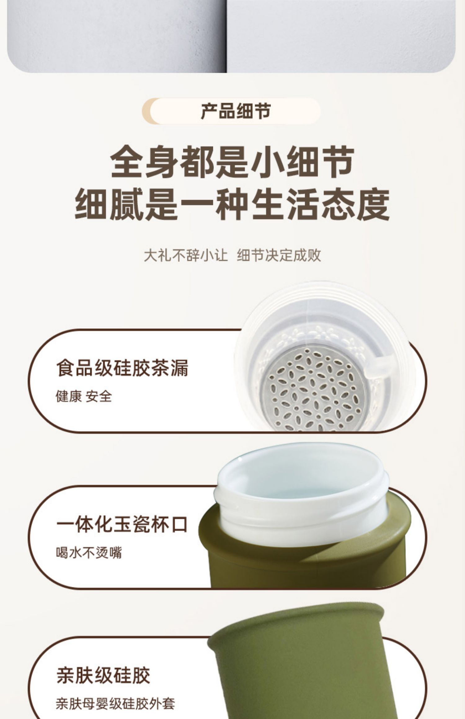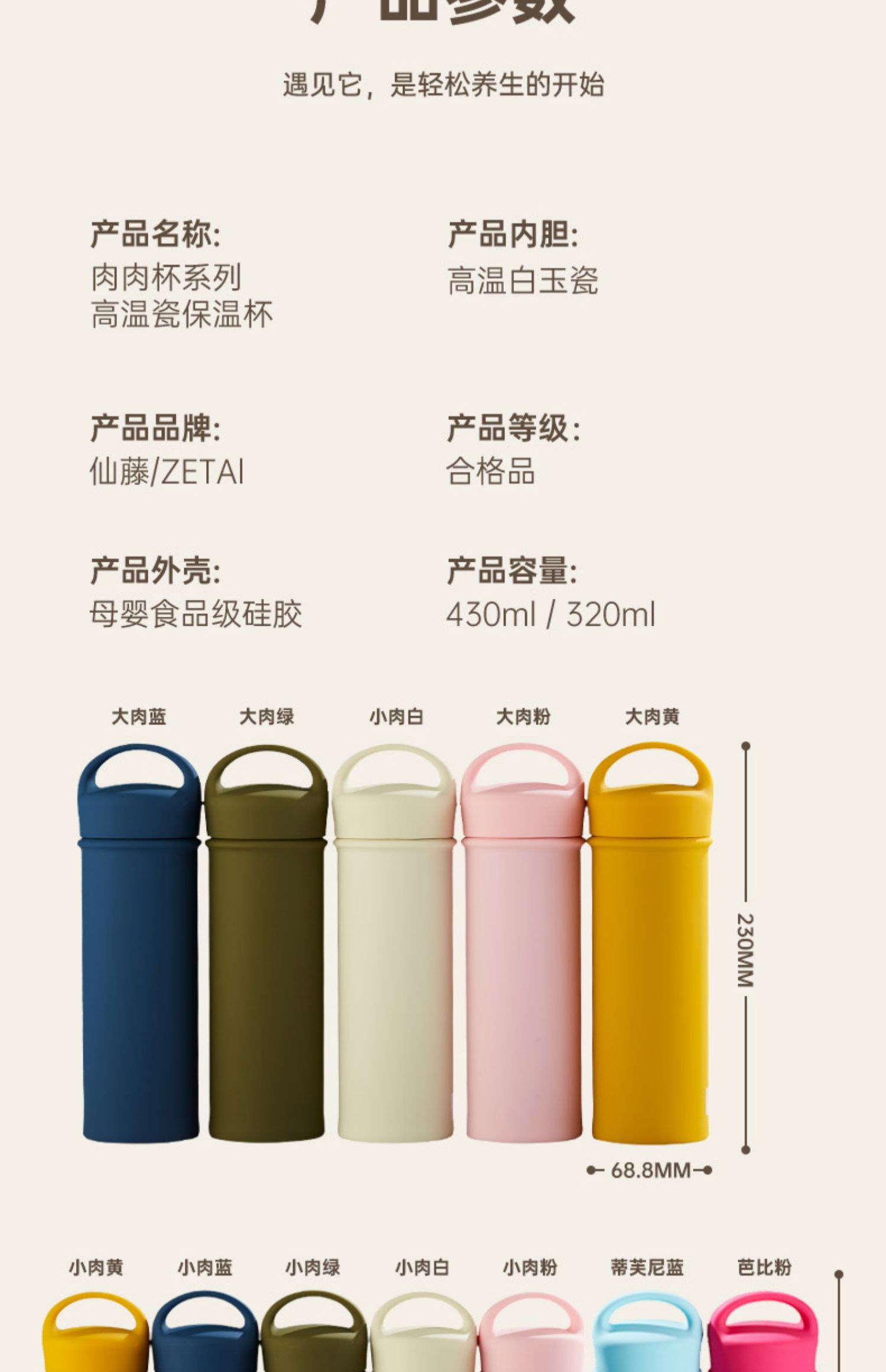 仙藤肉肉杯 亲肤级硅胶外套玉瓷内胆保温杯瑜伽杯养生杯