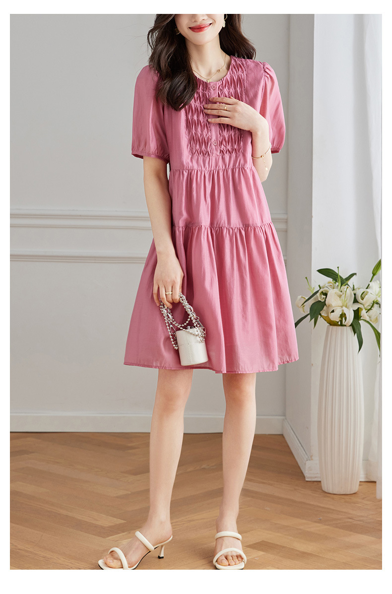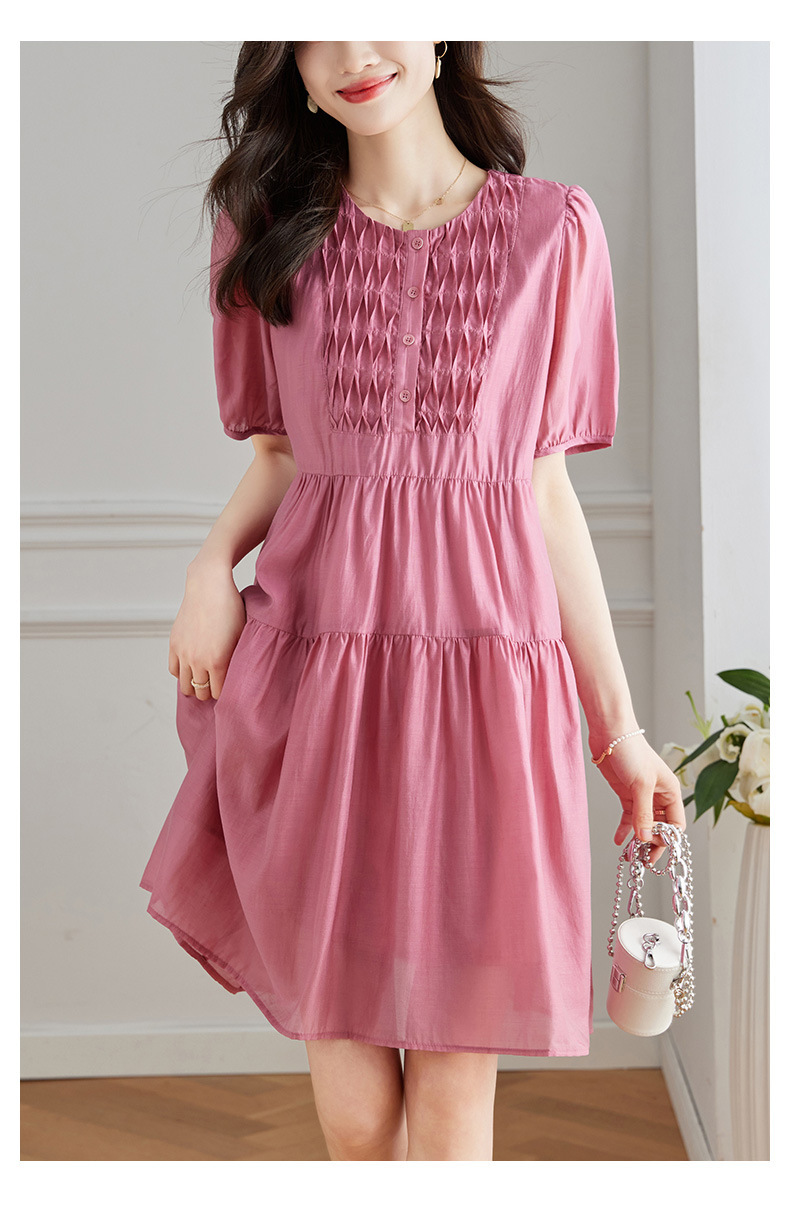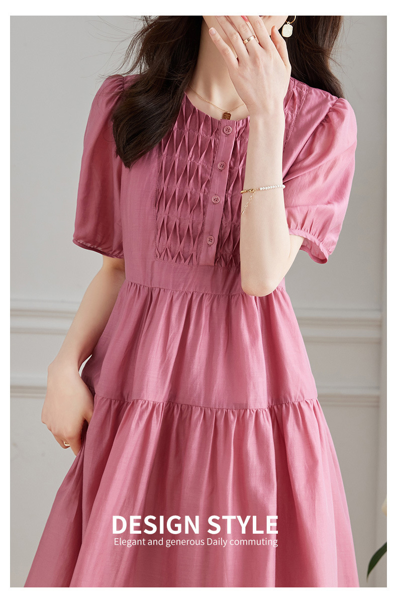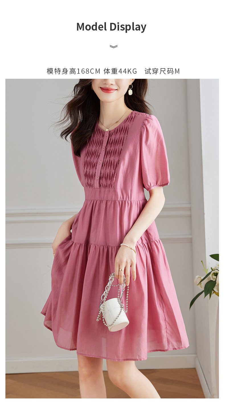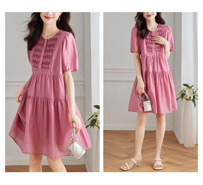 百媚生 天丝连衣裙女中长款裙子夏季新款收腰修身A字裙35002