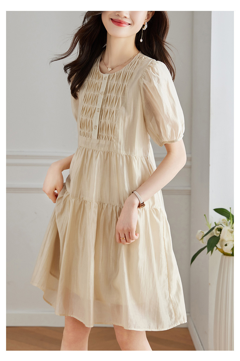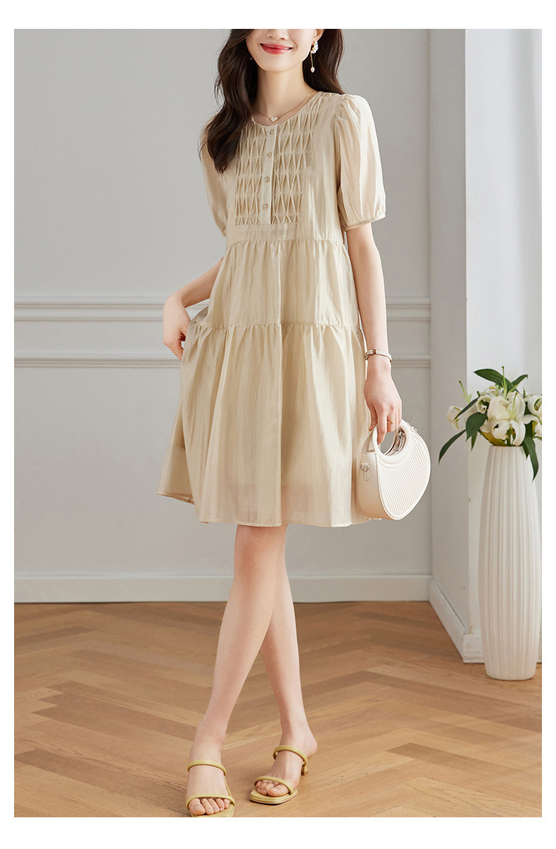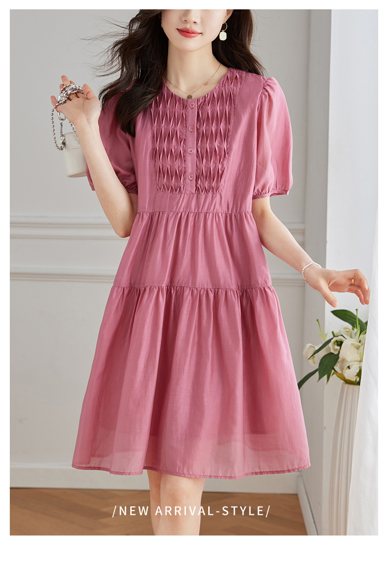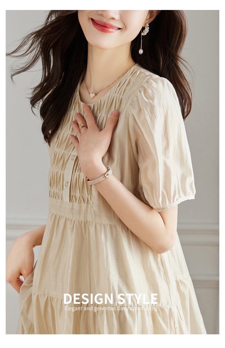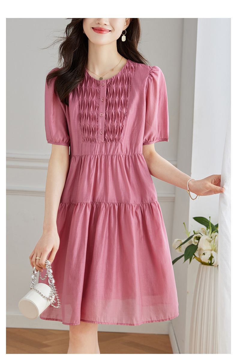 百媚生 天丝连衣裙女中长款裙子夏季新款收腰修身A字裙35002