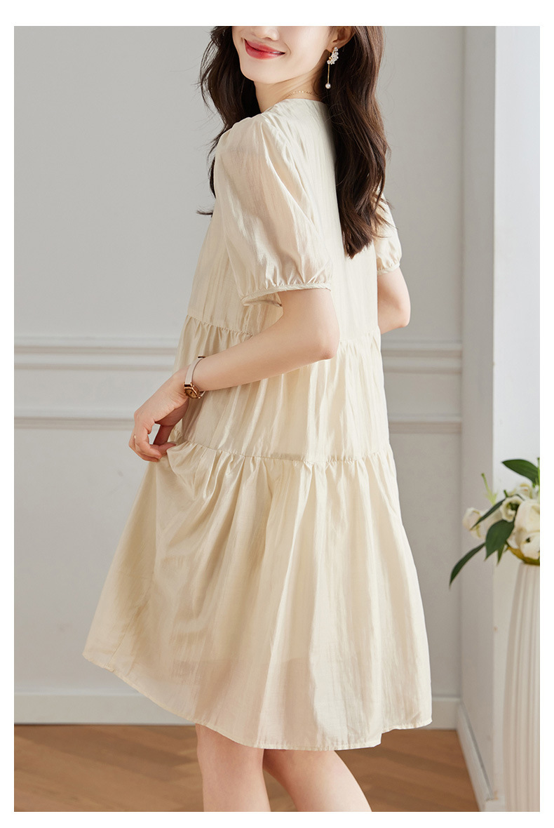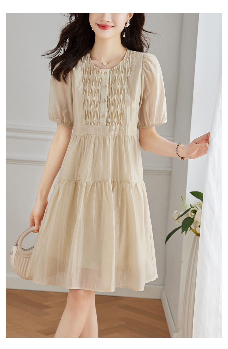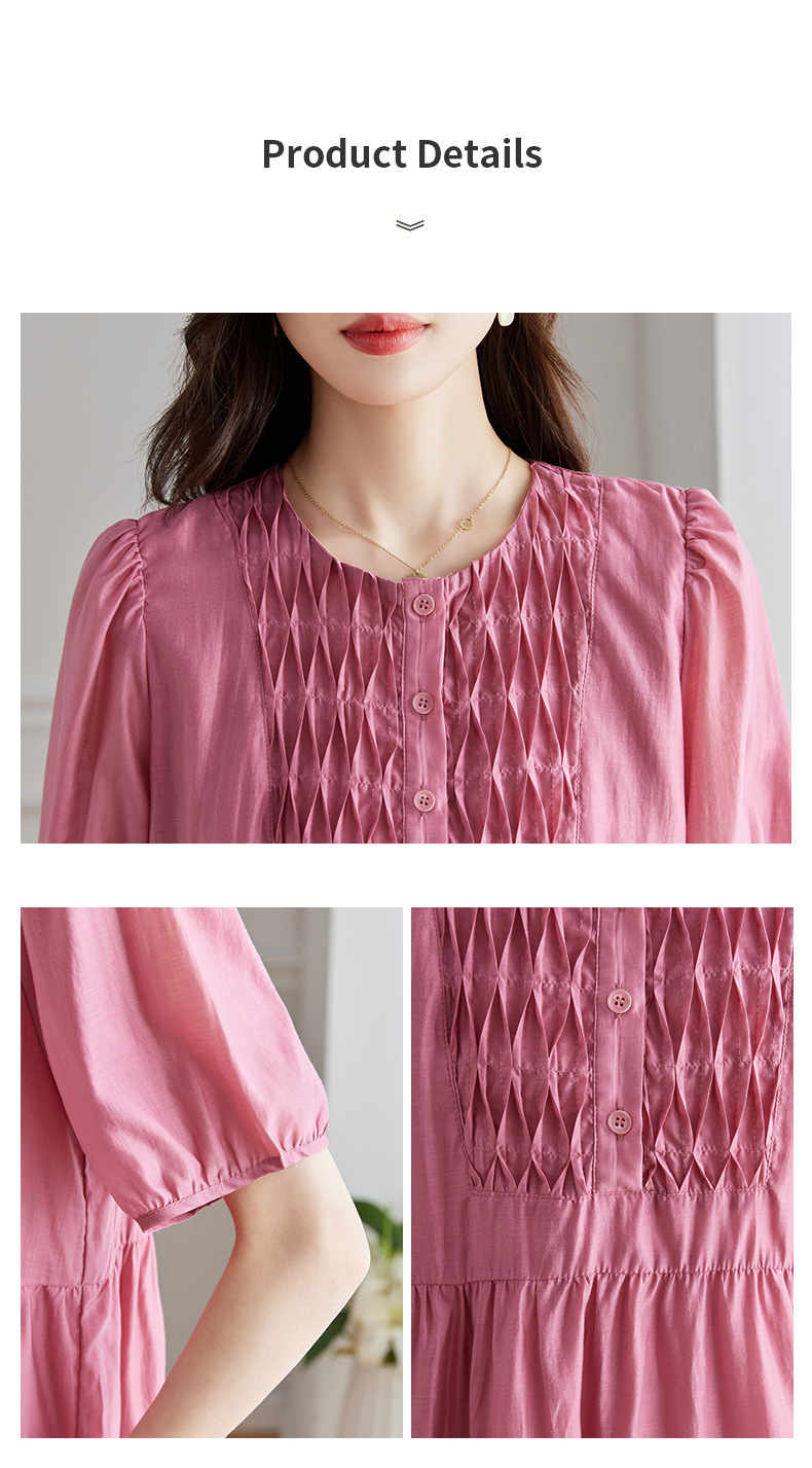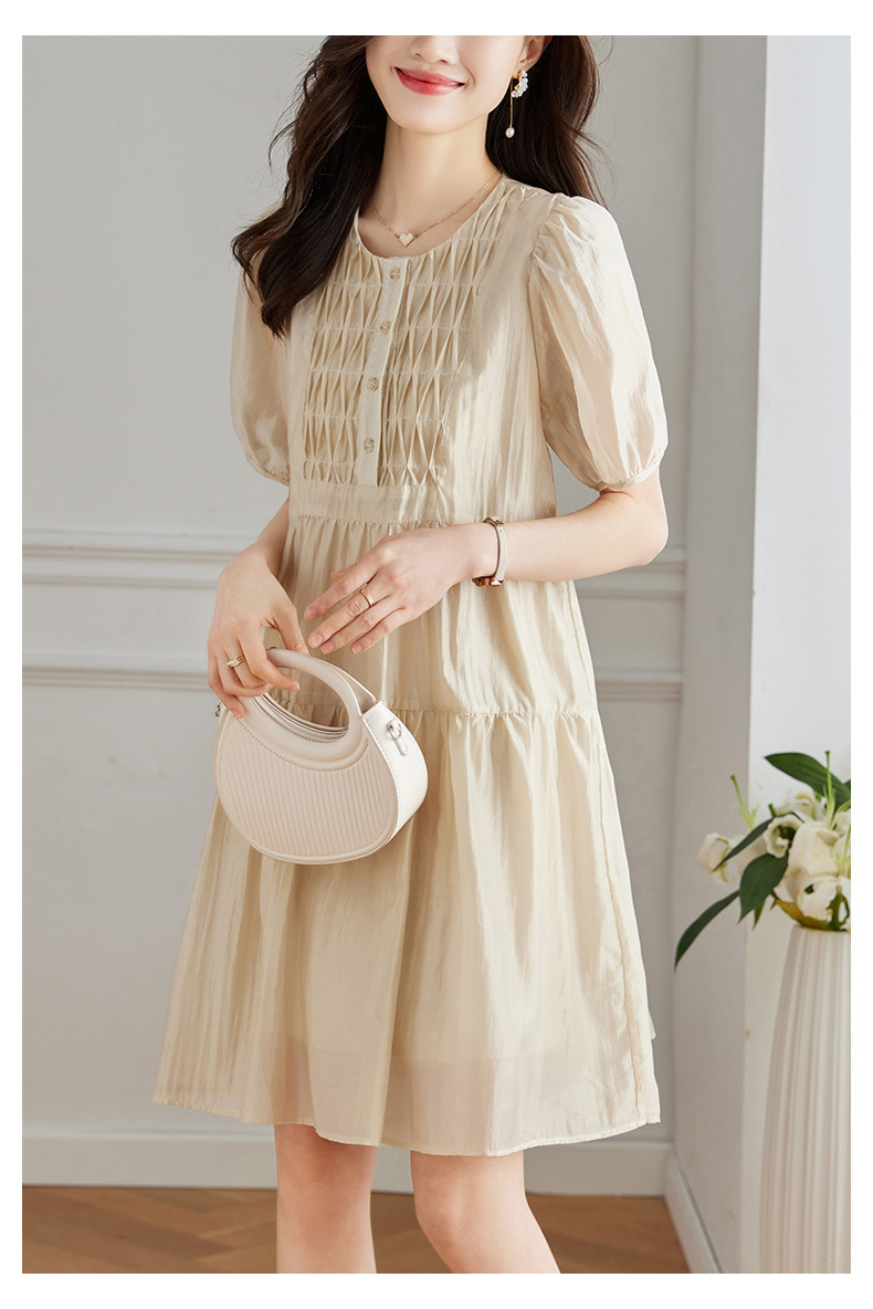 百媚生 天丝连衣裙女中长款裙子夏季新款收腰修身A字裙35002