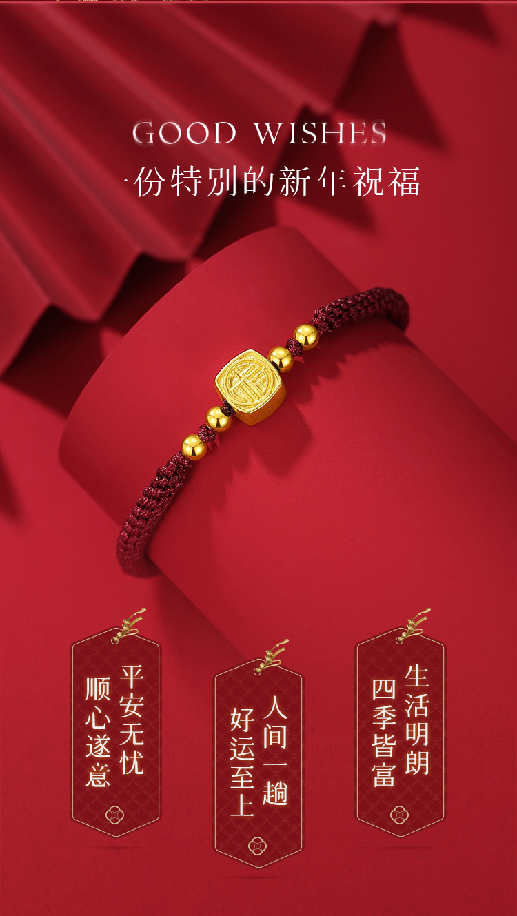 Winy925纯银福牌金珠手链送女友闺蜜节日生日礼物