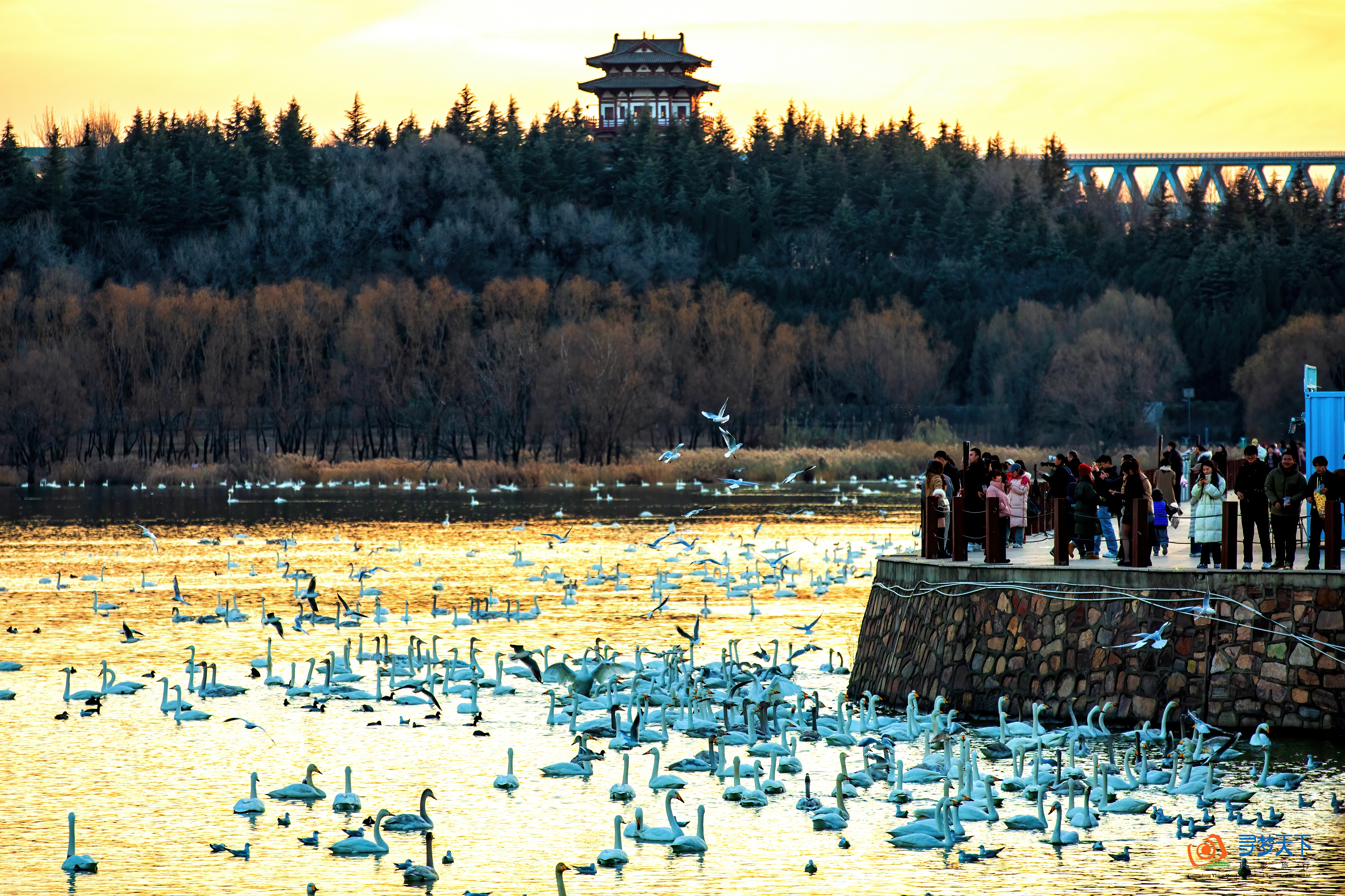 天鹅湖国家城市湿地公园,等待湿地日落。这里是三门峡观赏天鹅的核心区域,湖面开阔,天鹅数量众多,可在“三河广场”附近的观景台拍摄夕阳洒在湖面、天鹅掠过水面的唯美画面。