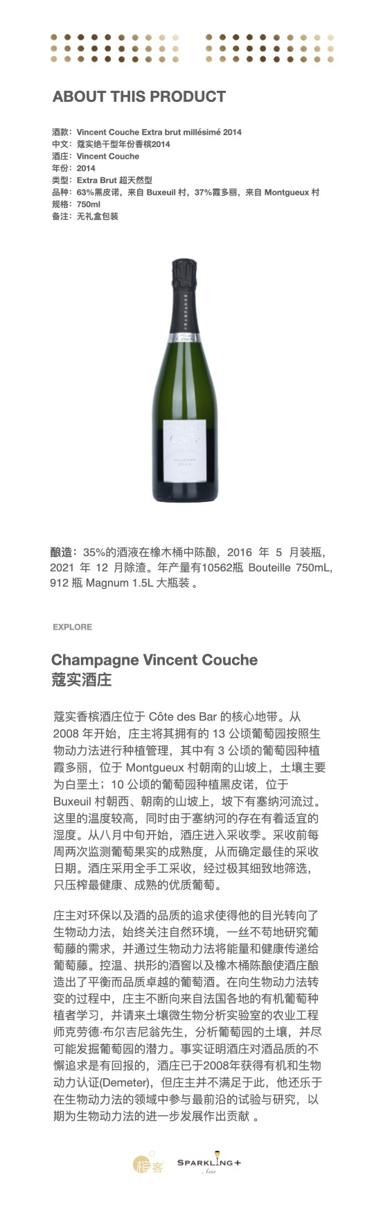 Vincent Couche Extra brut millésimé 2014 蔻实绝干型年份香槟2014