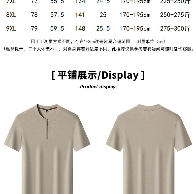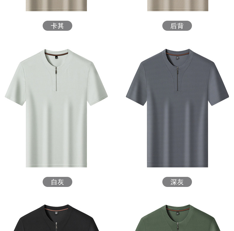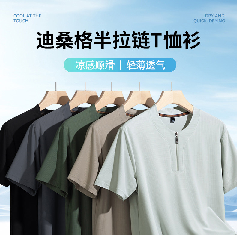 【DCS】大依优型大码男装夏季华夫格半拉链短袖休闲运动商务百搭上衣T恤