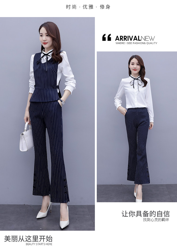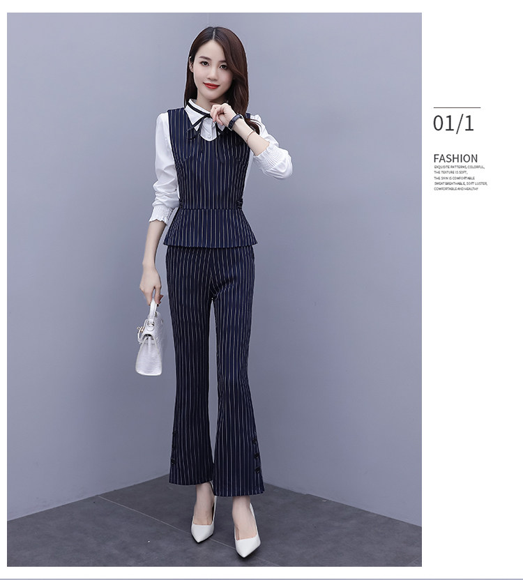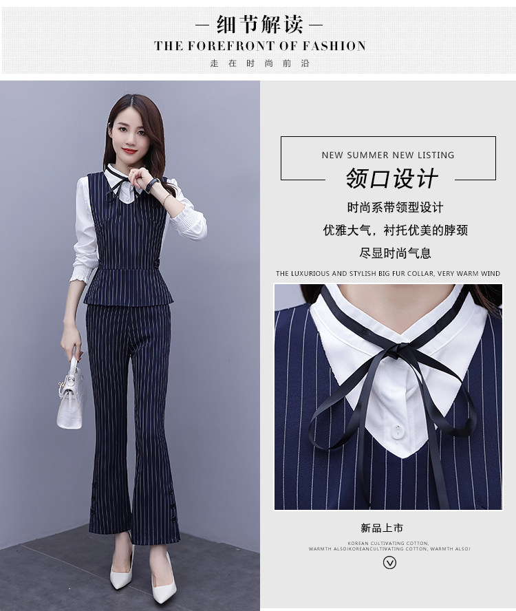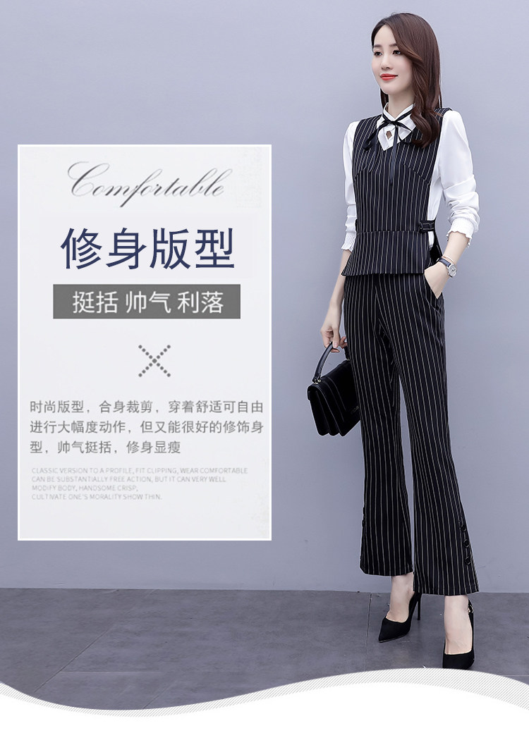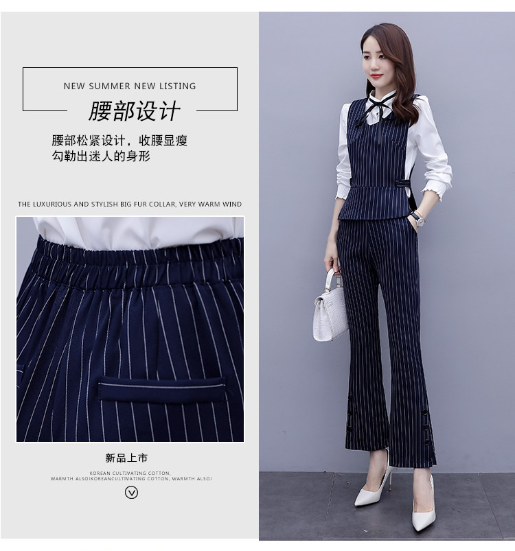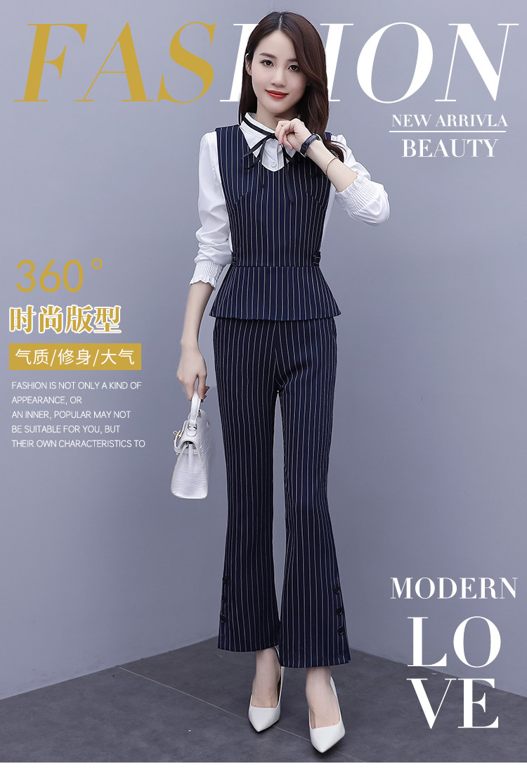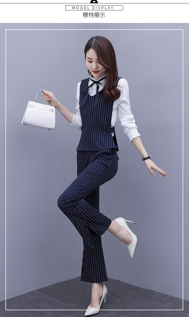 MQQ-3646洋气职业装初秋新款气质衬衣显瘦条纹马甲三件套