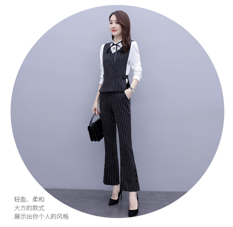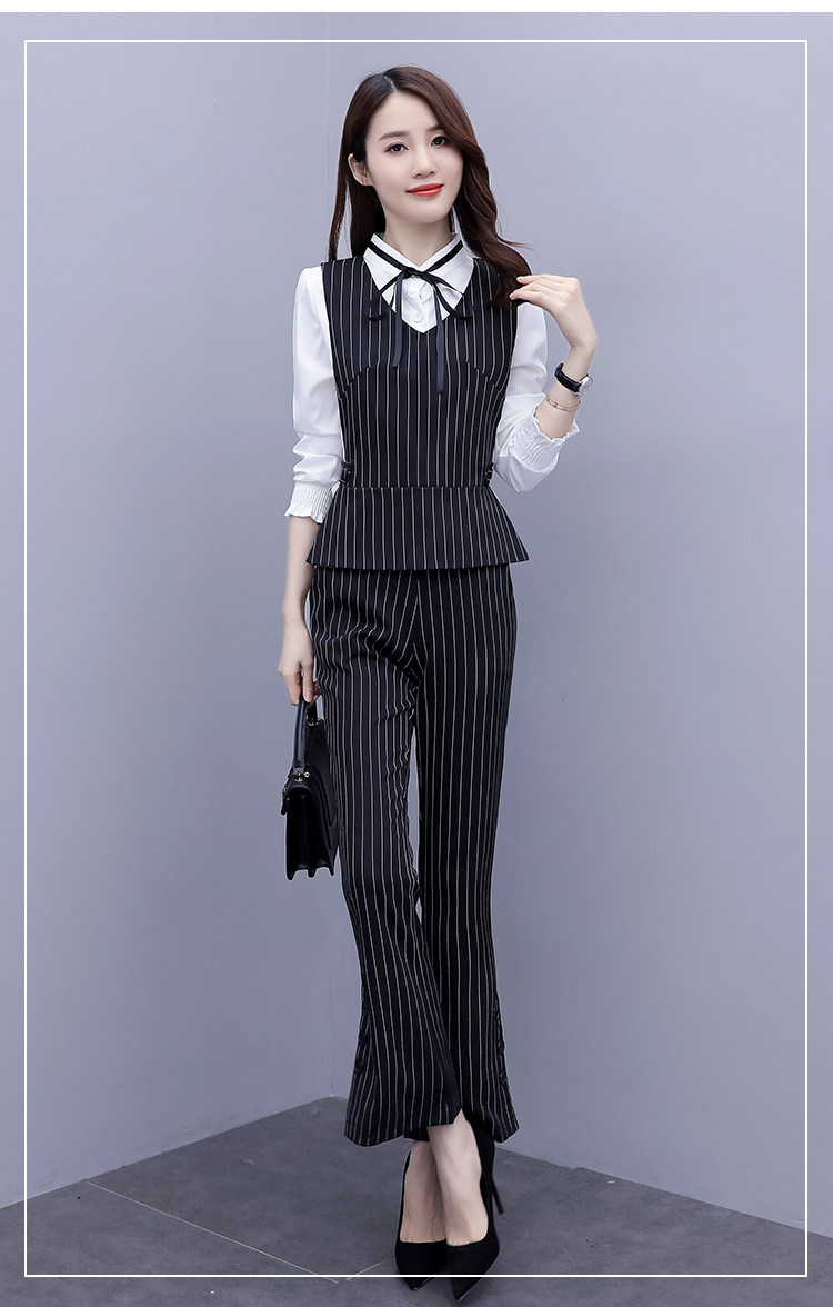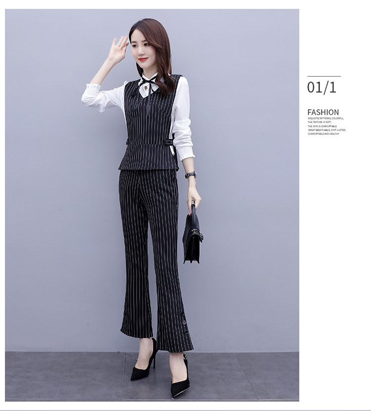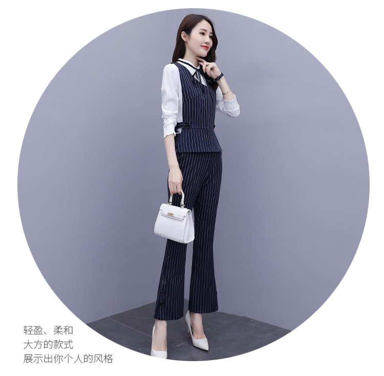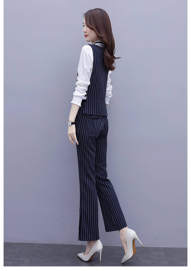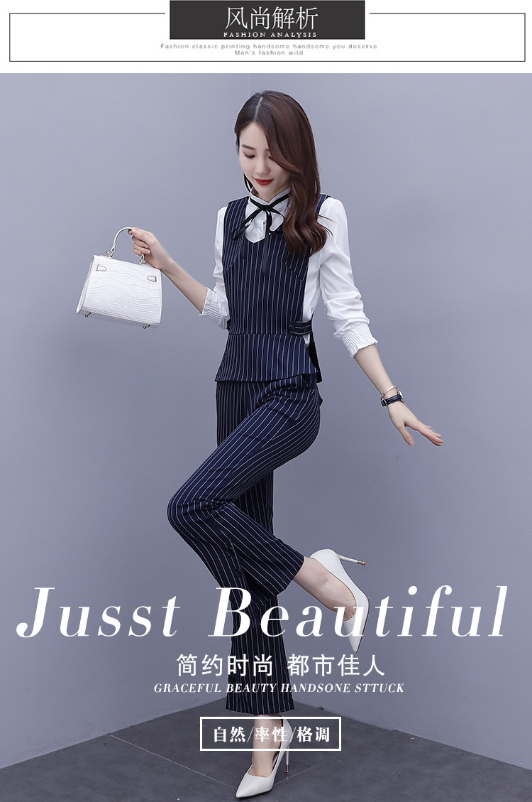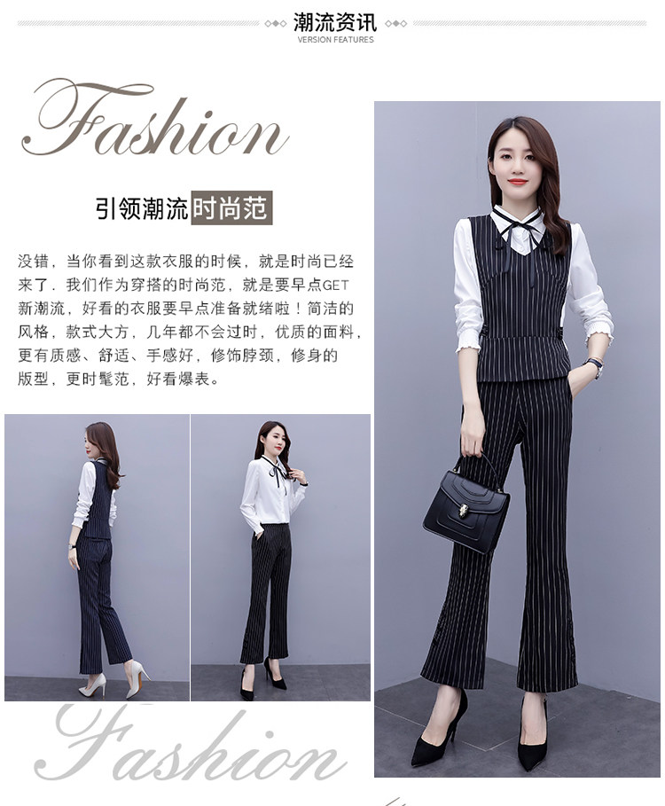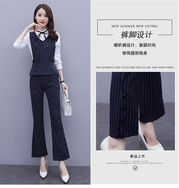 MQQ-3646洋气职业装初秋新款气质衬衣显瘦条纹马甲三件套
