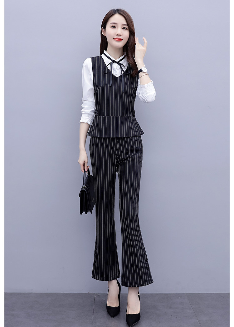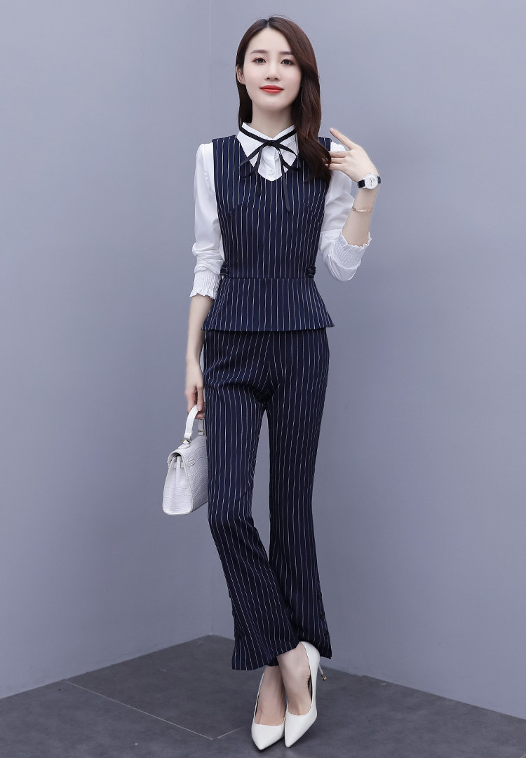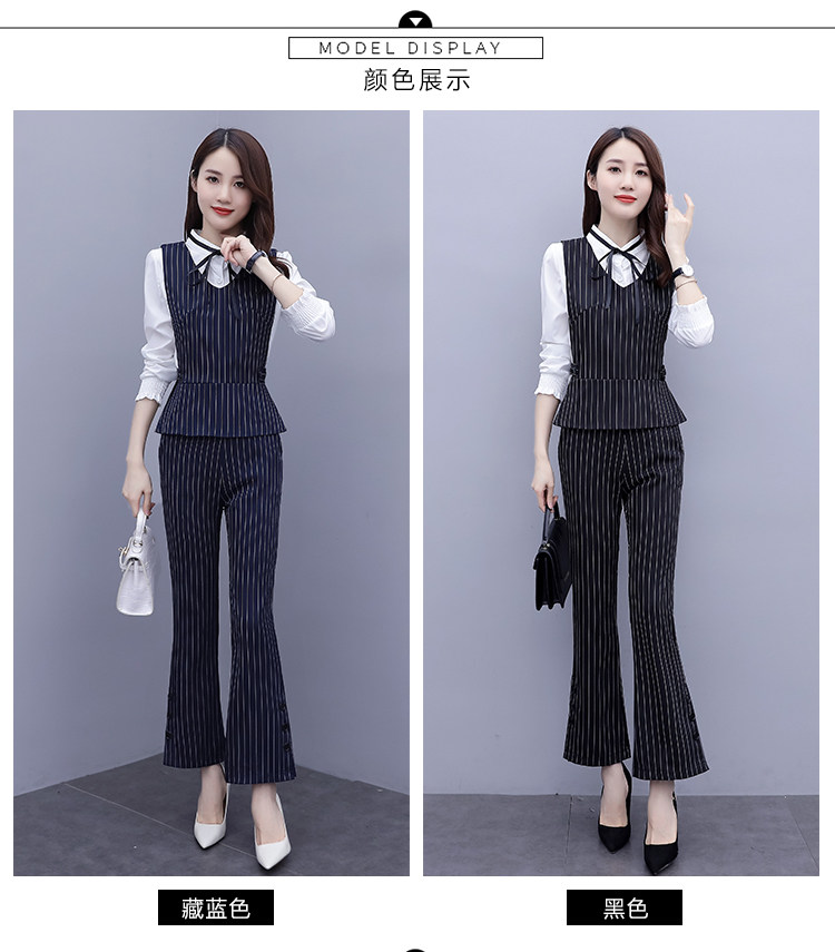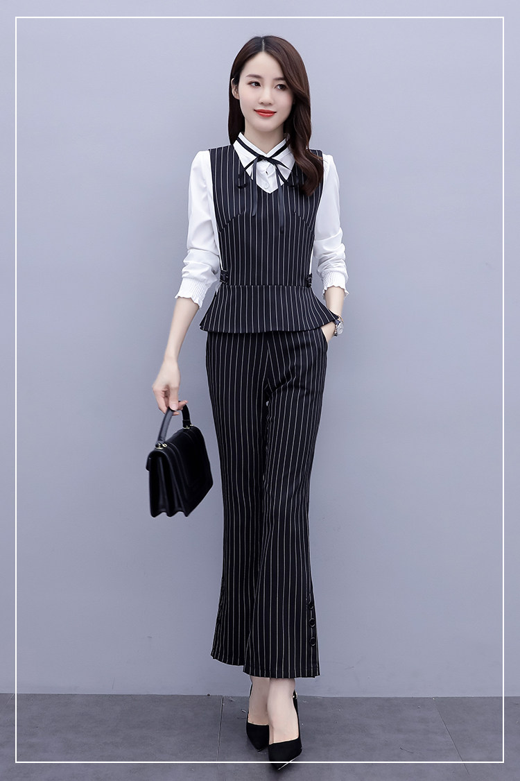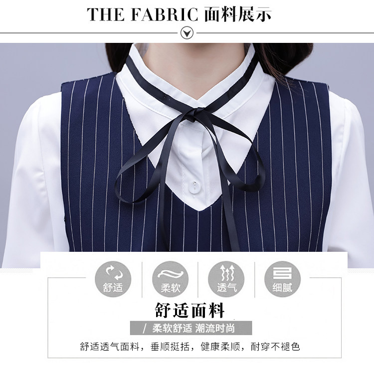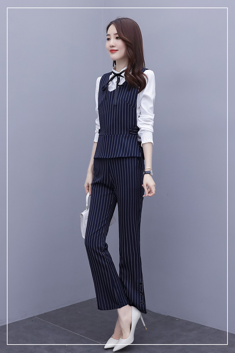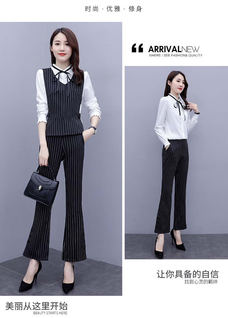 MQQ-3646洋气职业装初秋新款气质衬衣显瘦条纹马甲三件套