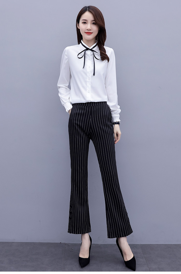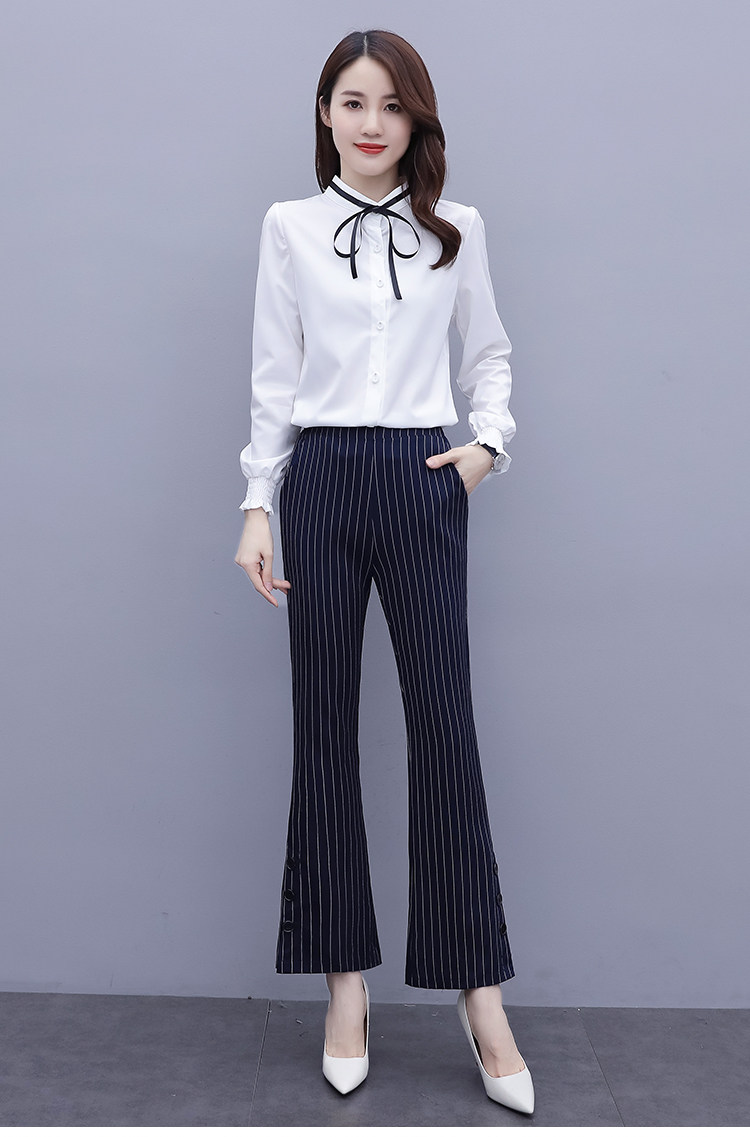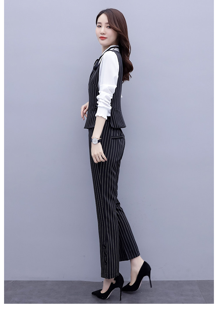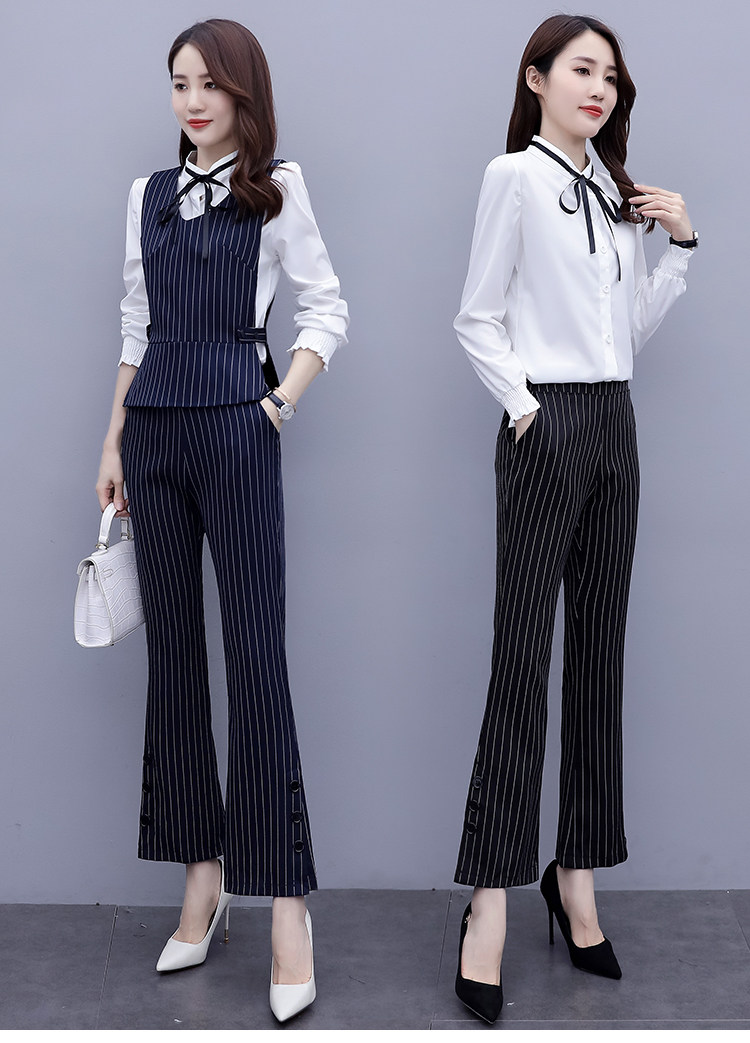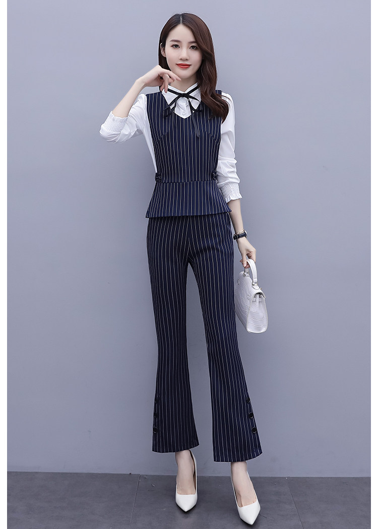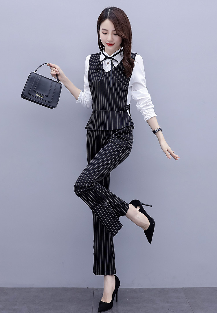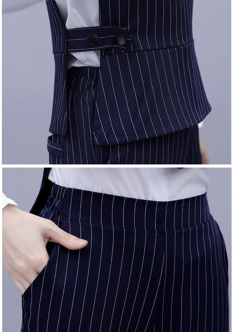 MQQ-3646洋气职业装初秋新款气质衬衣显瘦条纹马甲三件套