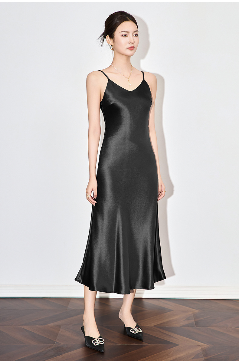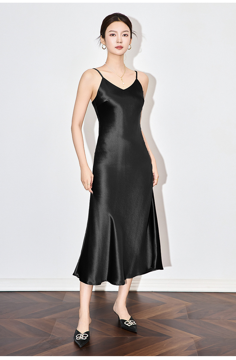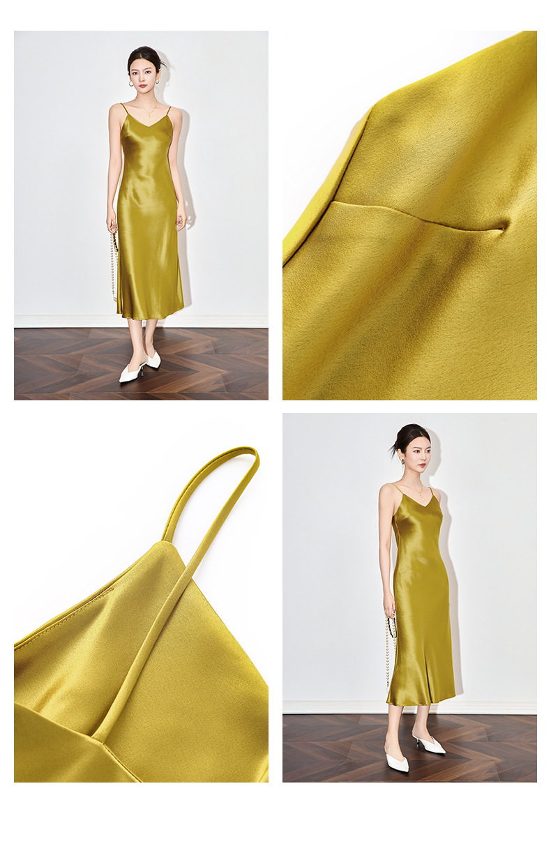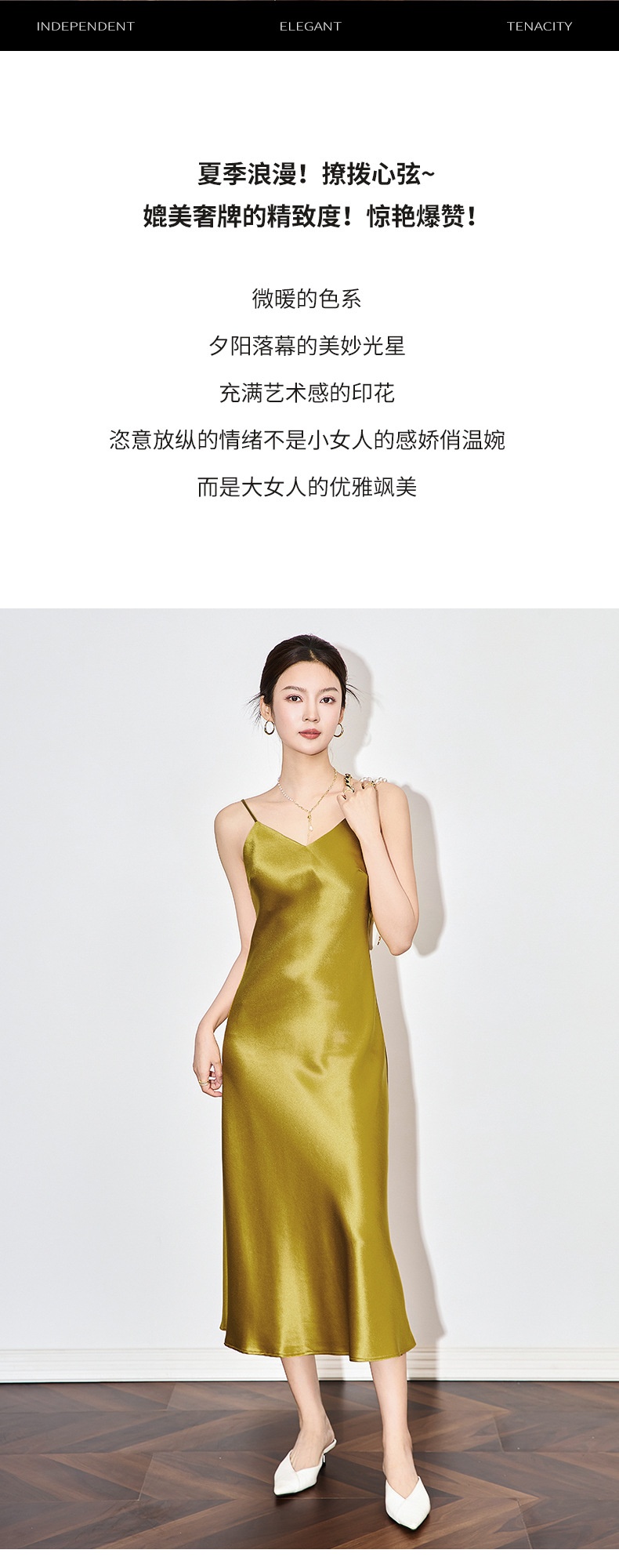 「高货wl」全新升级【铂金会员293/天猫389/差价96】(84340)洛诗琳法式优雅氛围感醋酸缎面V领优雅轻奢收腰吊带连衣裙