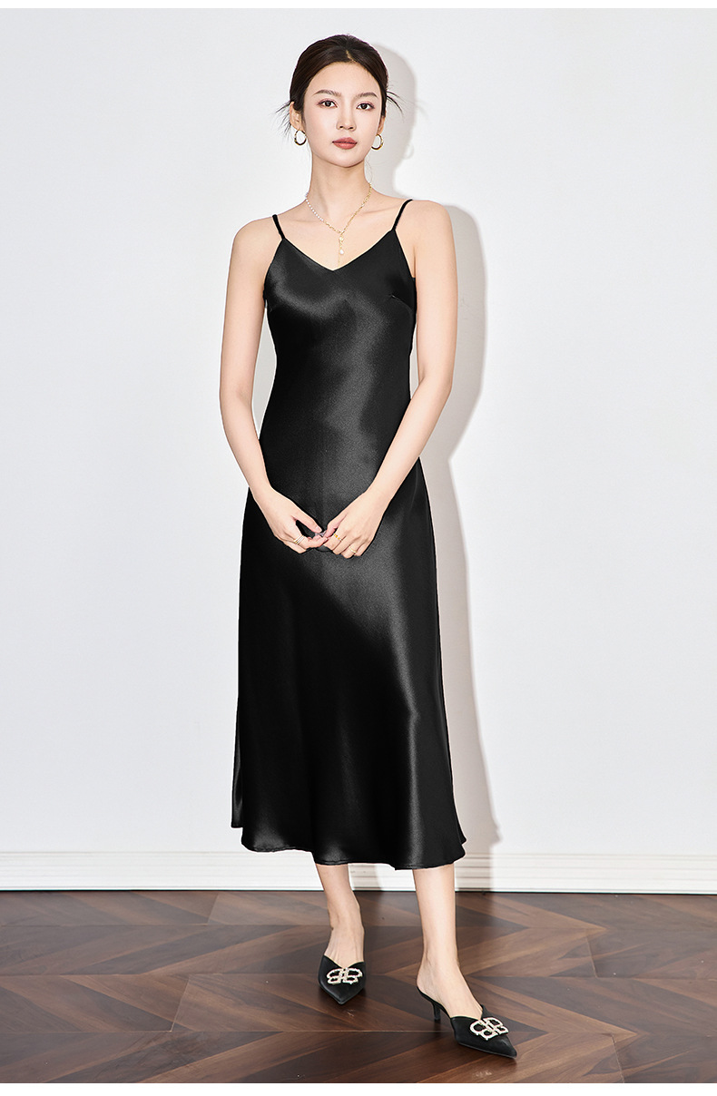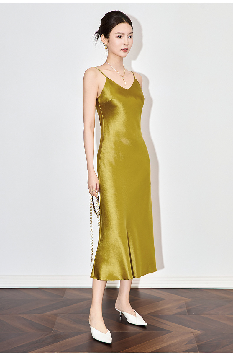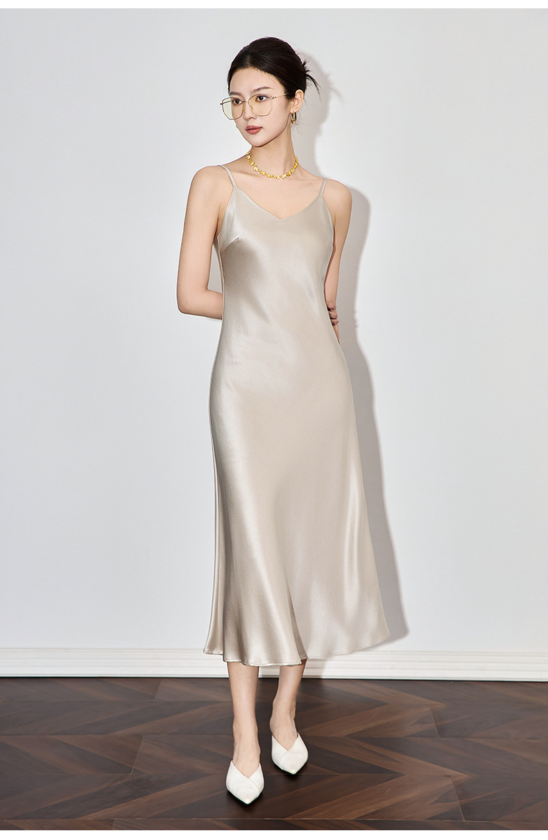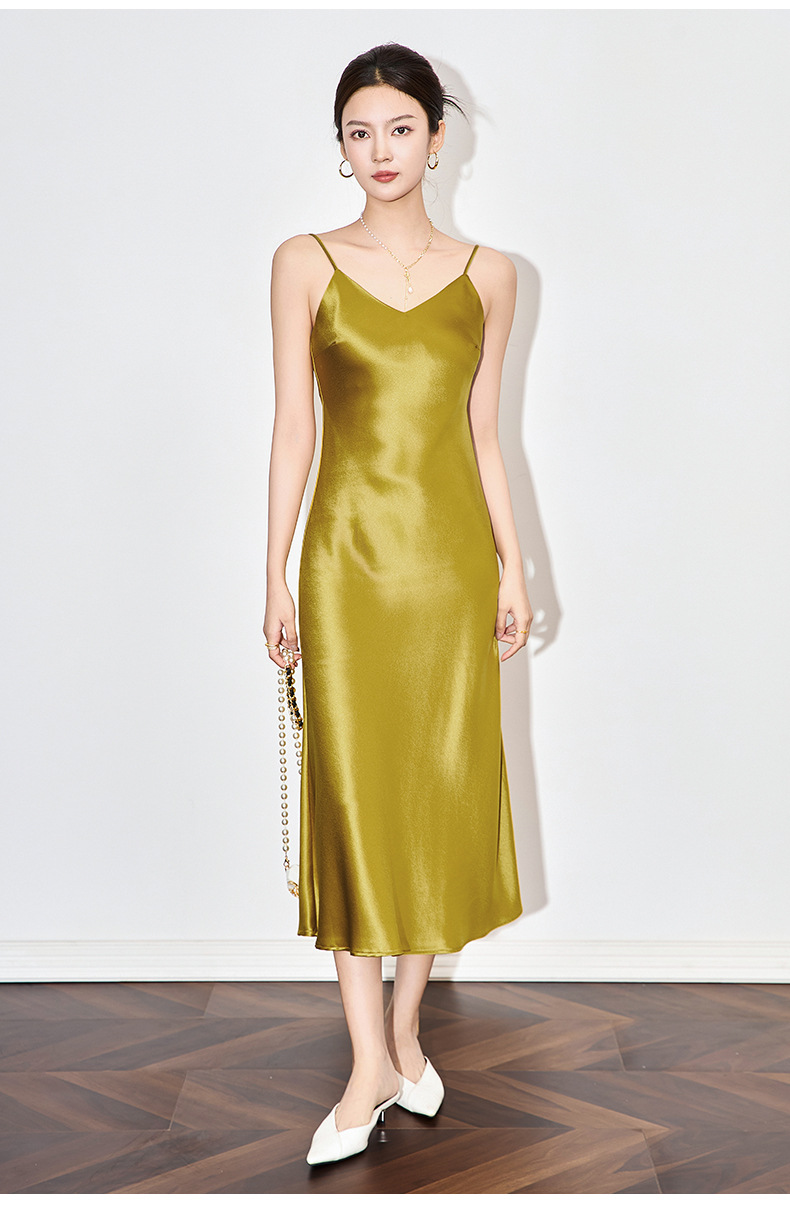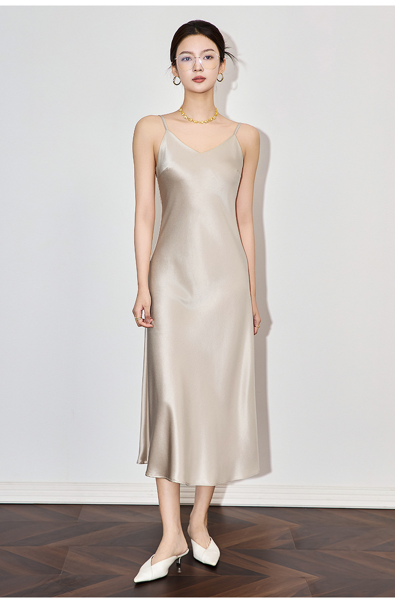 「高货wl」全新升级【铂金会员293/天猫389/差价96】(84340)洛诗琳法式优雅氛围感醋酸缎面V领优雅轻奢收腰吊带连衣裙