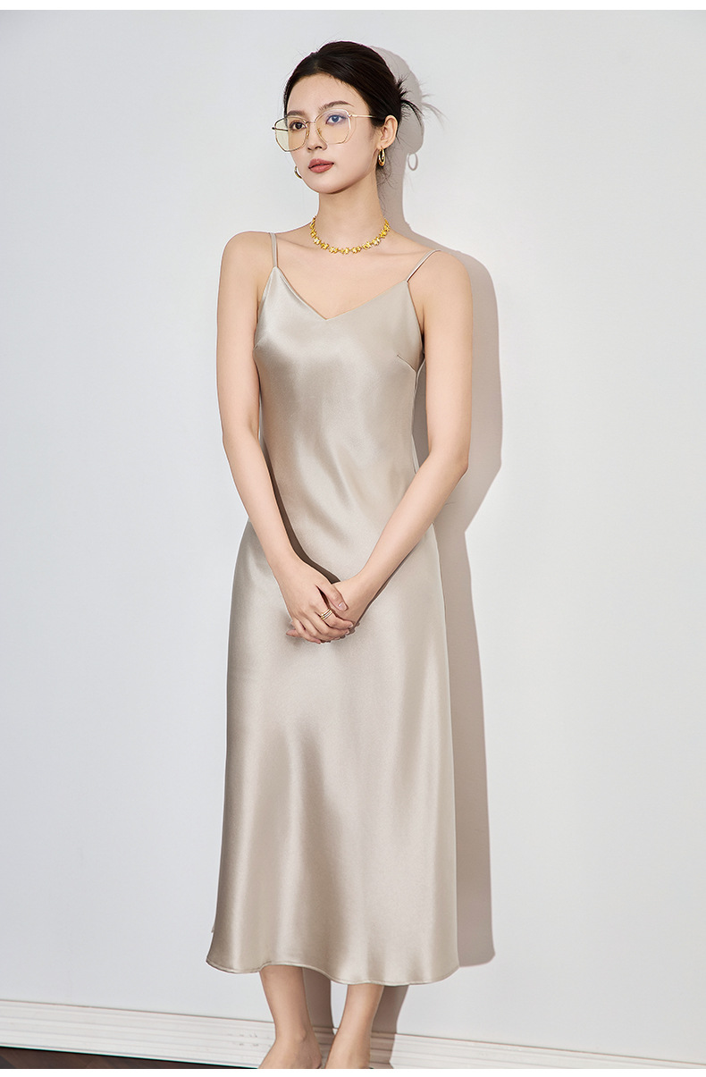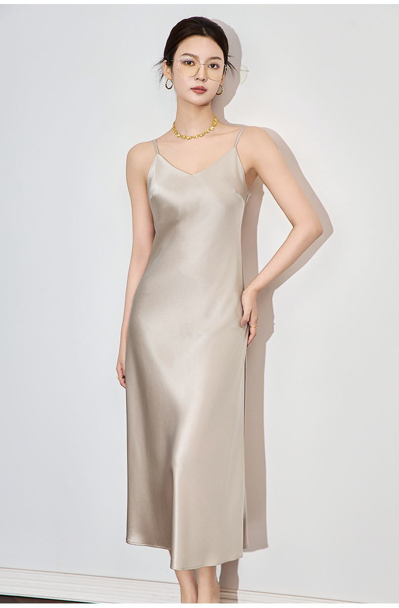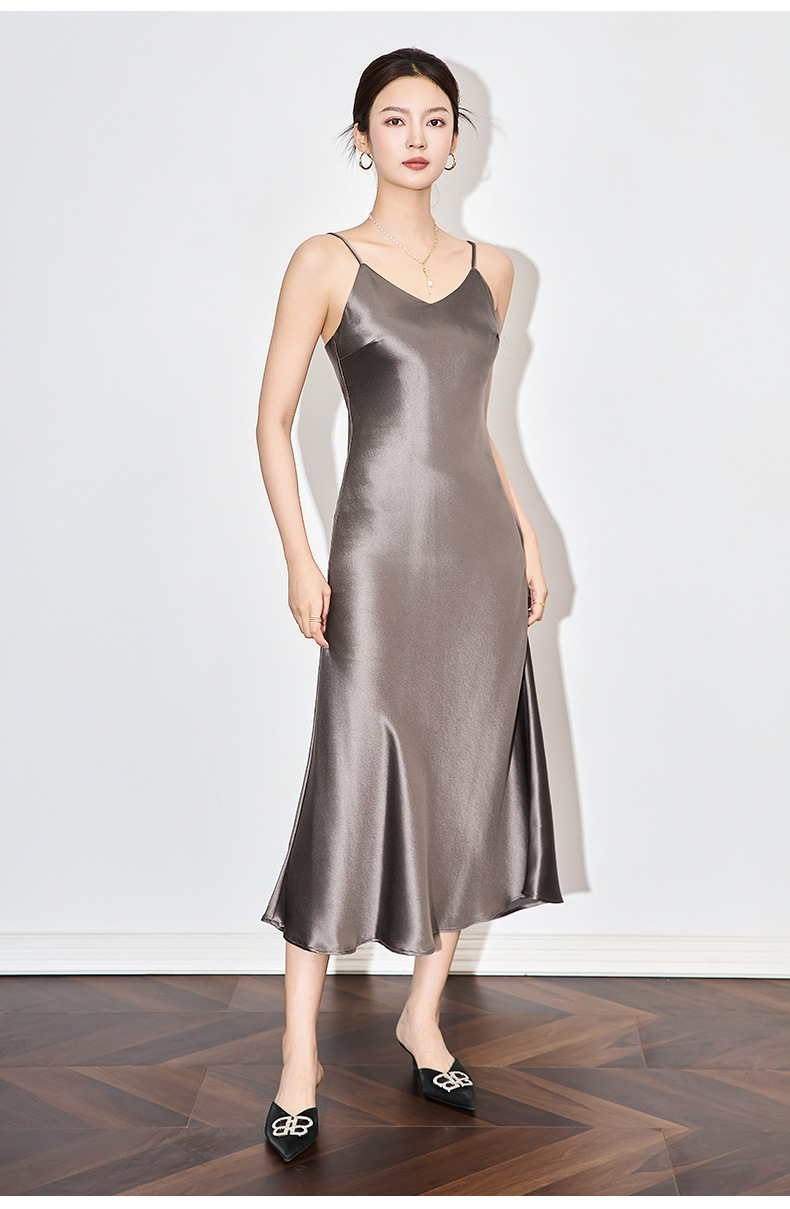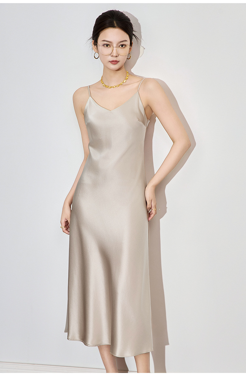 「高货wl」全新升级【铂金会员293/天猫389/差价96】(84340)洛诗琳法式优雅氛围感醋酸缎面V领优雅轻奢收腰吊带连衣裙