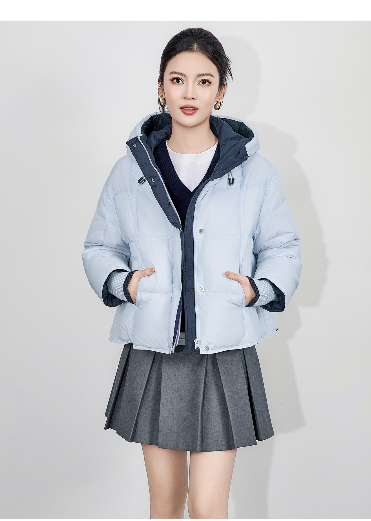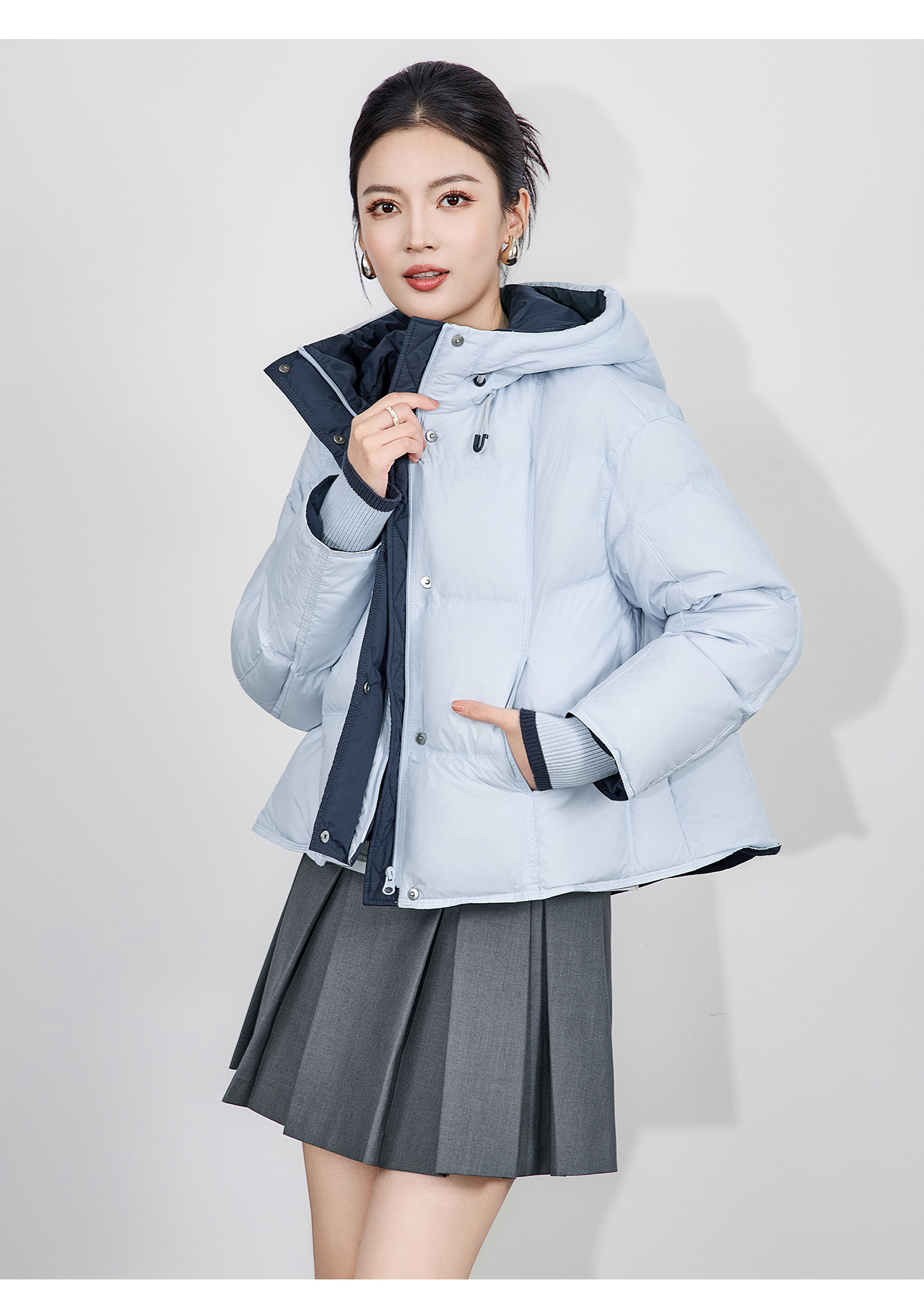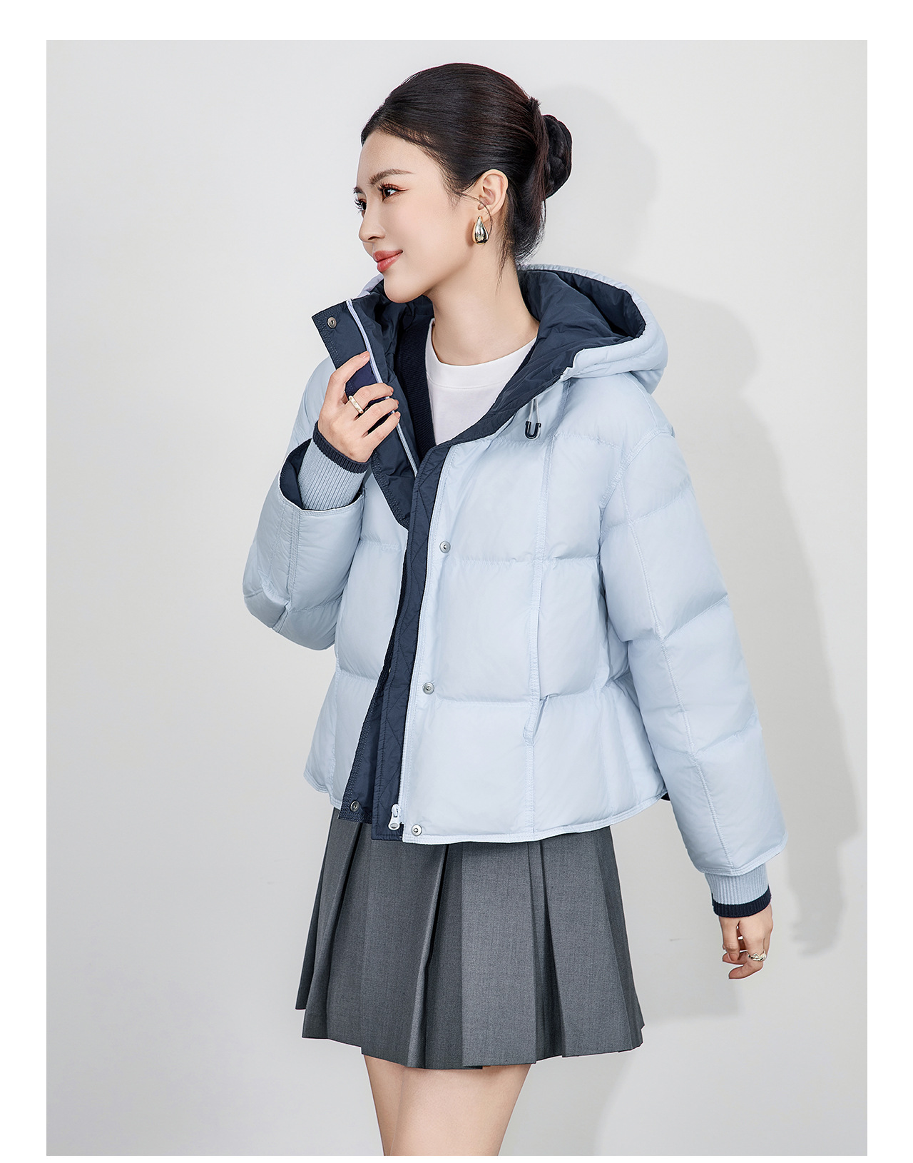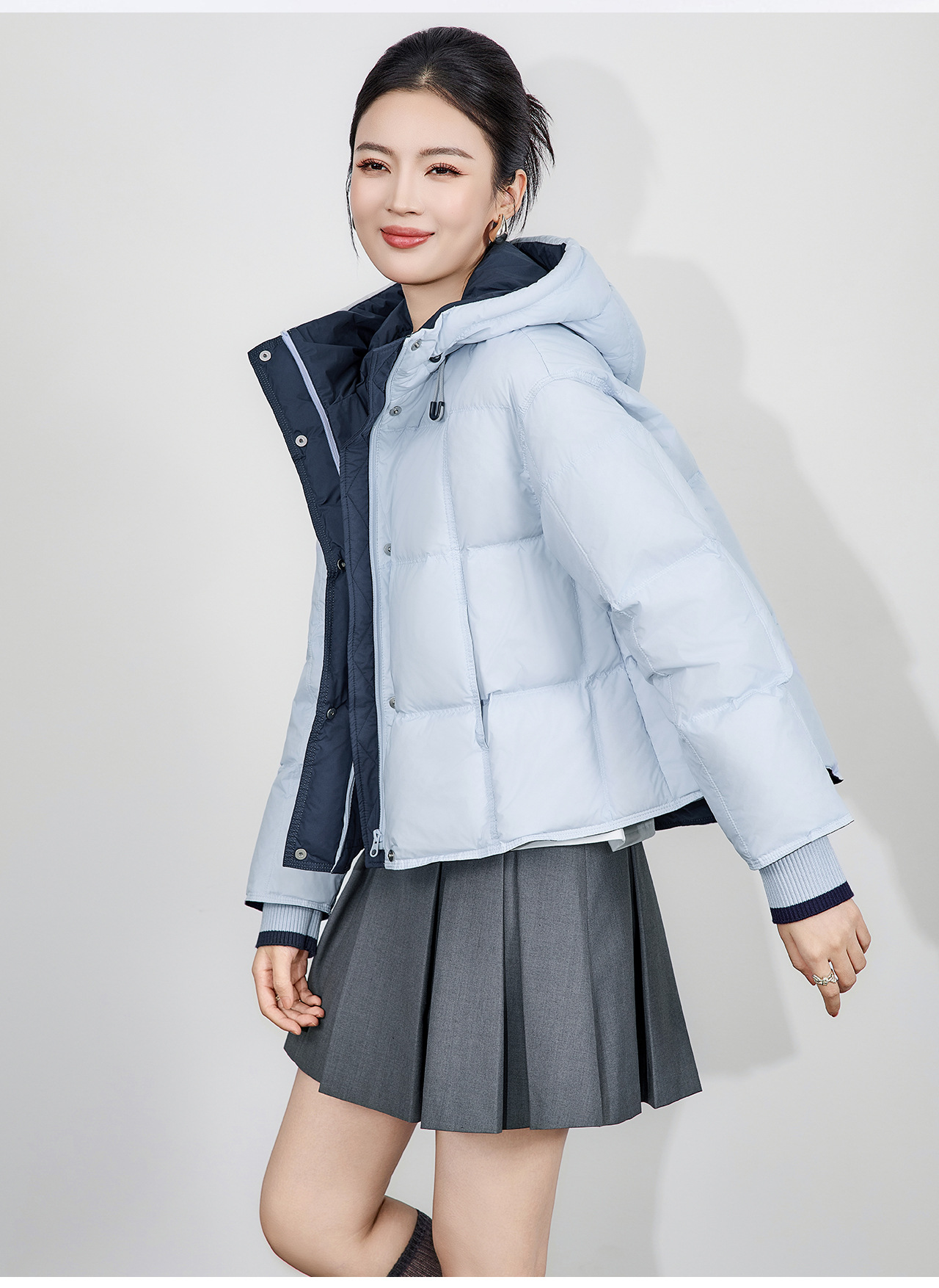 「高货wl」全新升级【铂金会员514/天猫689/差价175】(95853)洛诗琳轻盈连帽羽绒服2025冬季新款拼色减龄短款保暖外套