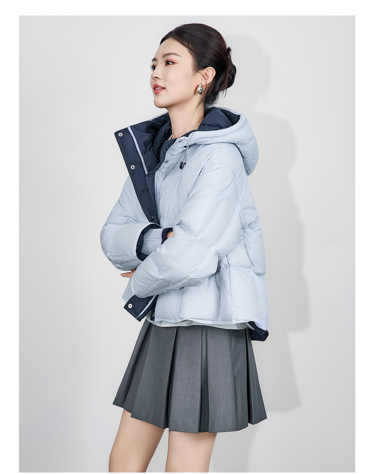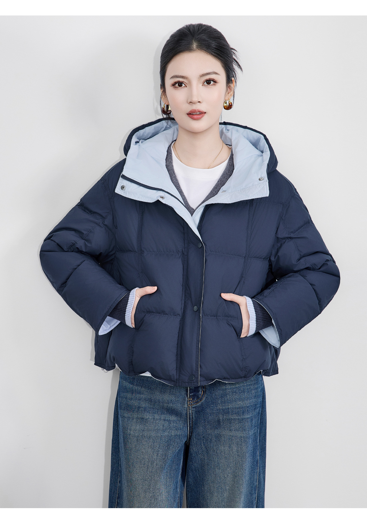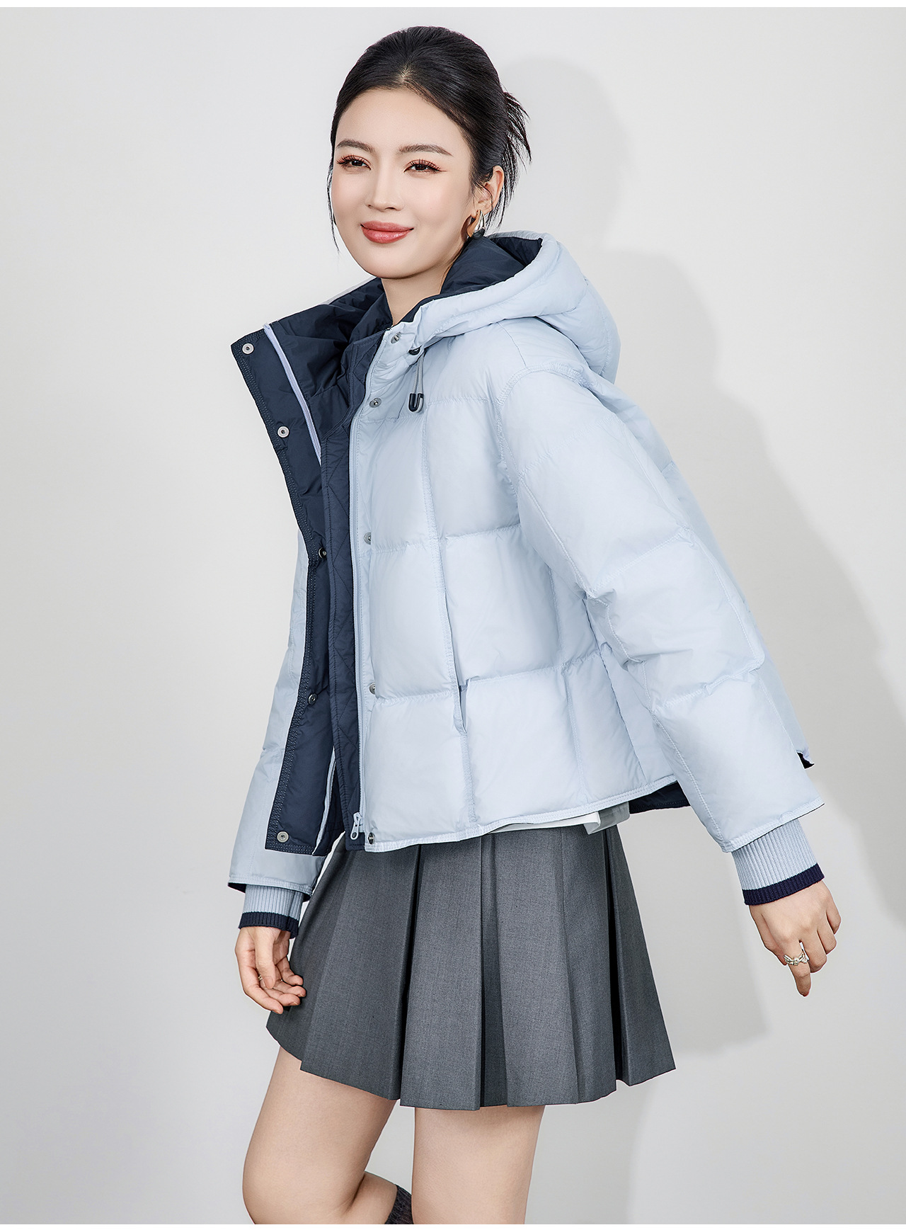 「高货wl」全新升级【铂金会员514/天猫689/差价175】(95853)洛诗琳轻盈连帽羽绒服2025冬季新款拼色减龄短款保暖外套