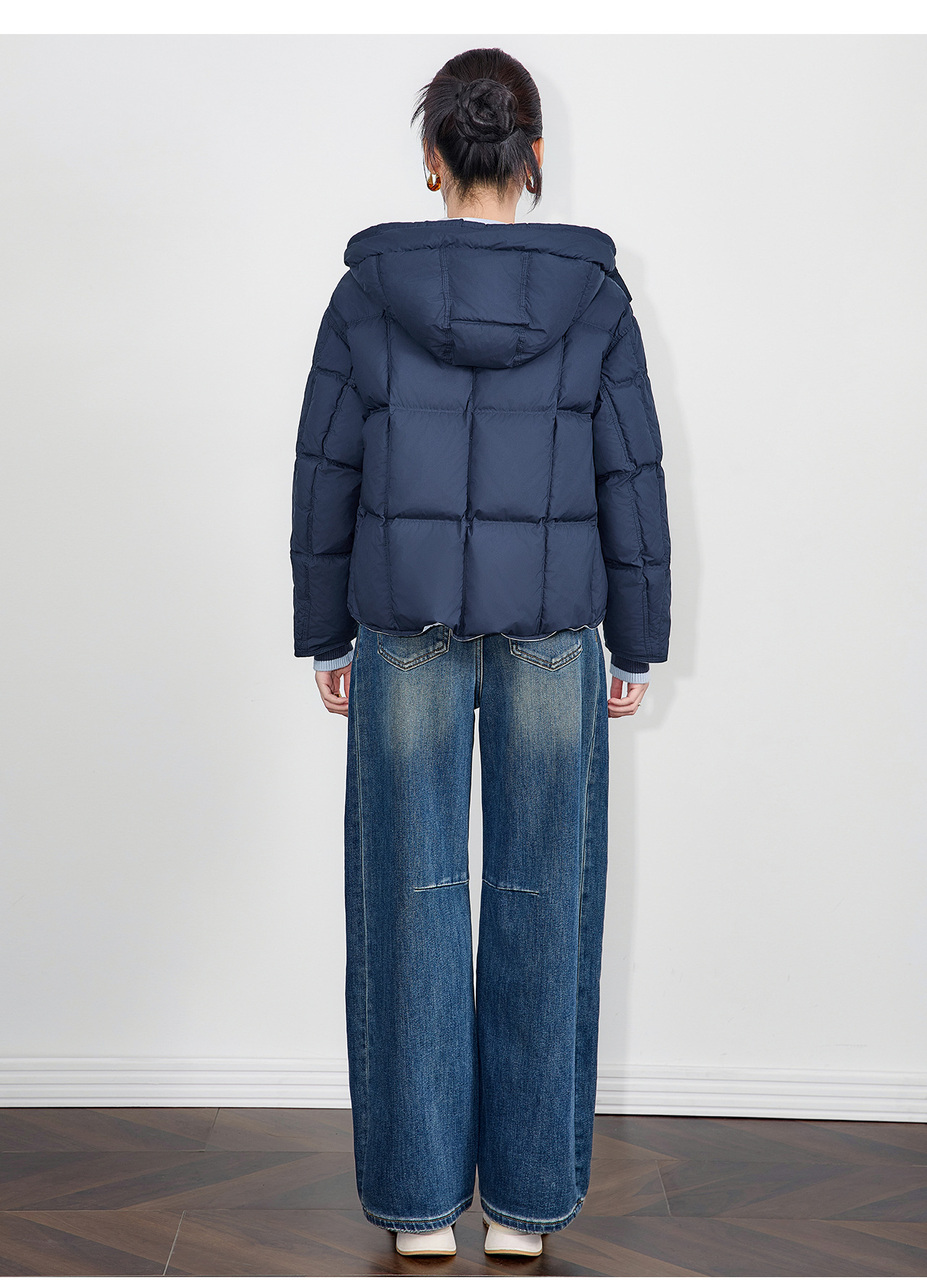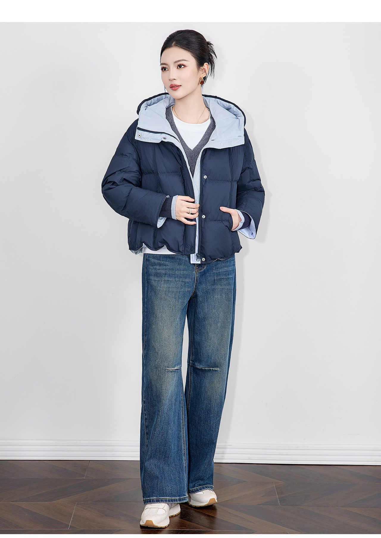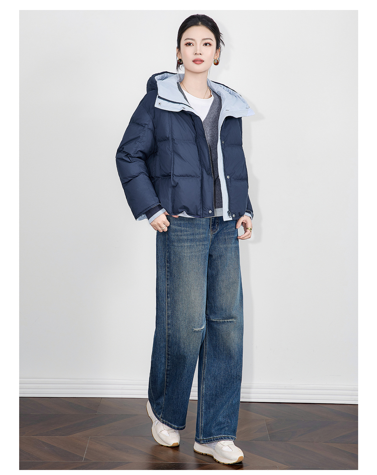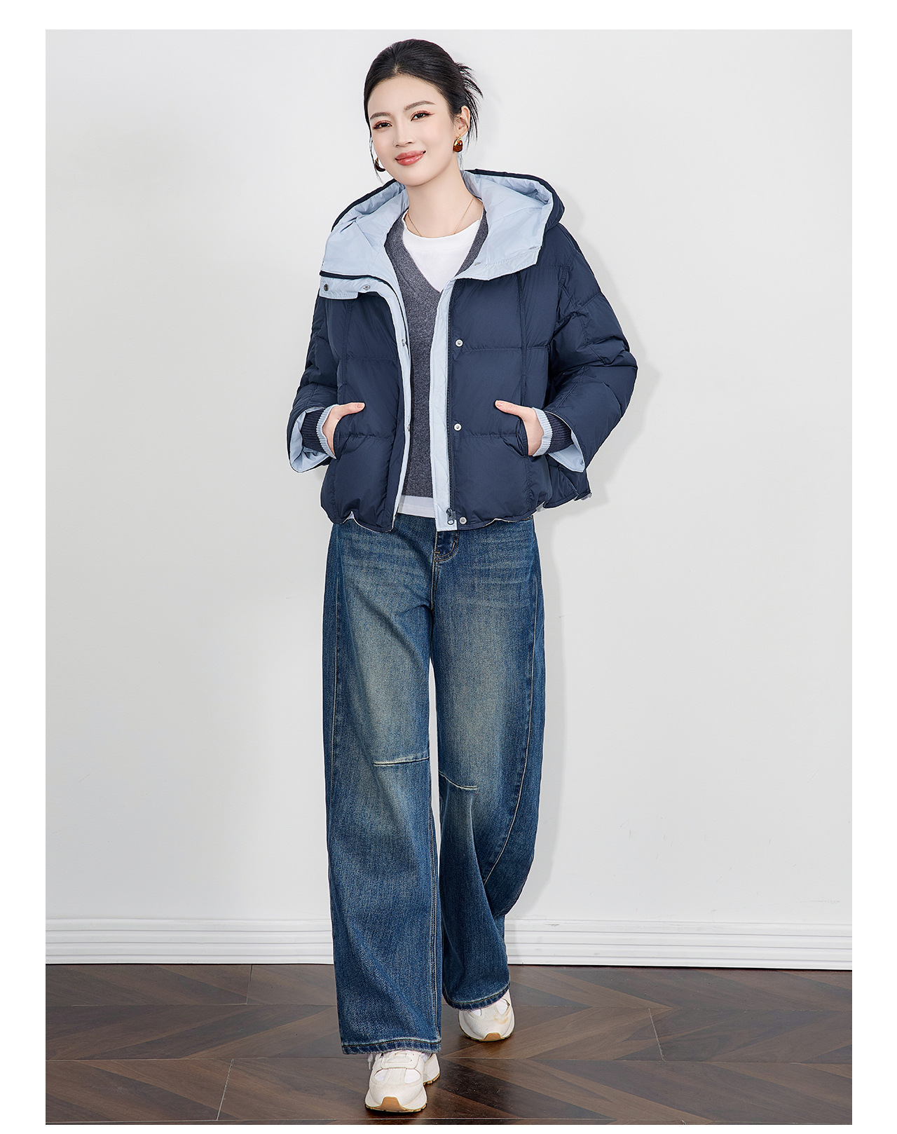「高货wl」全新升级【铂金会员514/天猫689/差价175】(95853)洛诗琳轻盈连帽羽绒服2025冬季新款拼色减龄短款保暖外套
