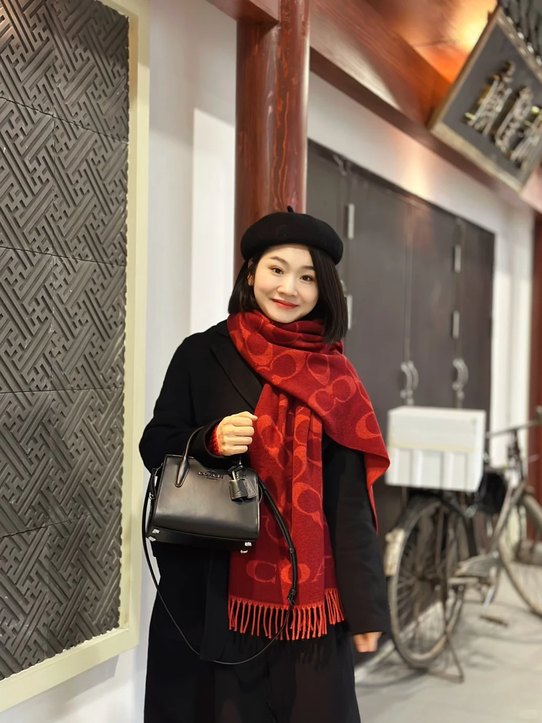 【韩国直邮】COACH/蔻驰羊毛羊绒围巾 三色(红色/驼色/黑色 CB684)