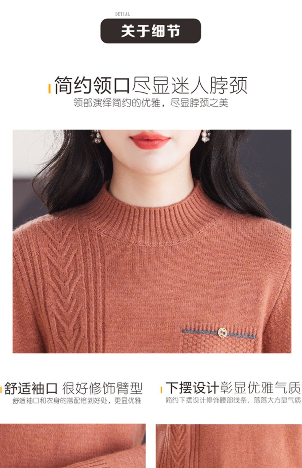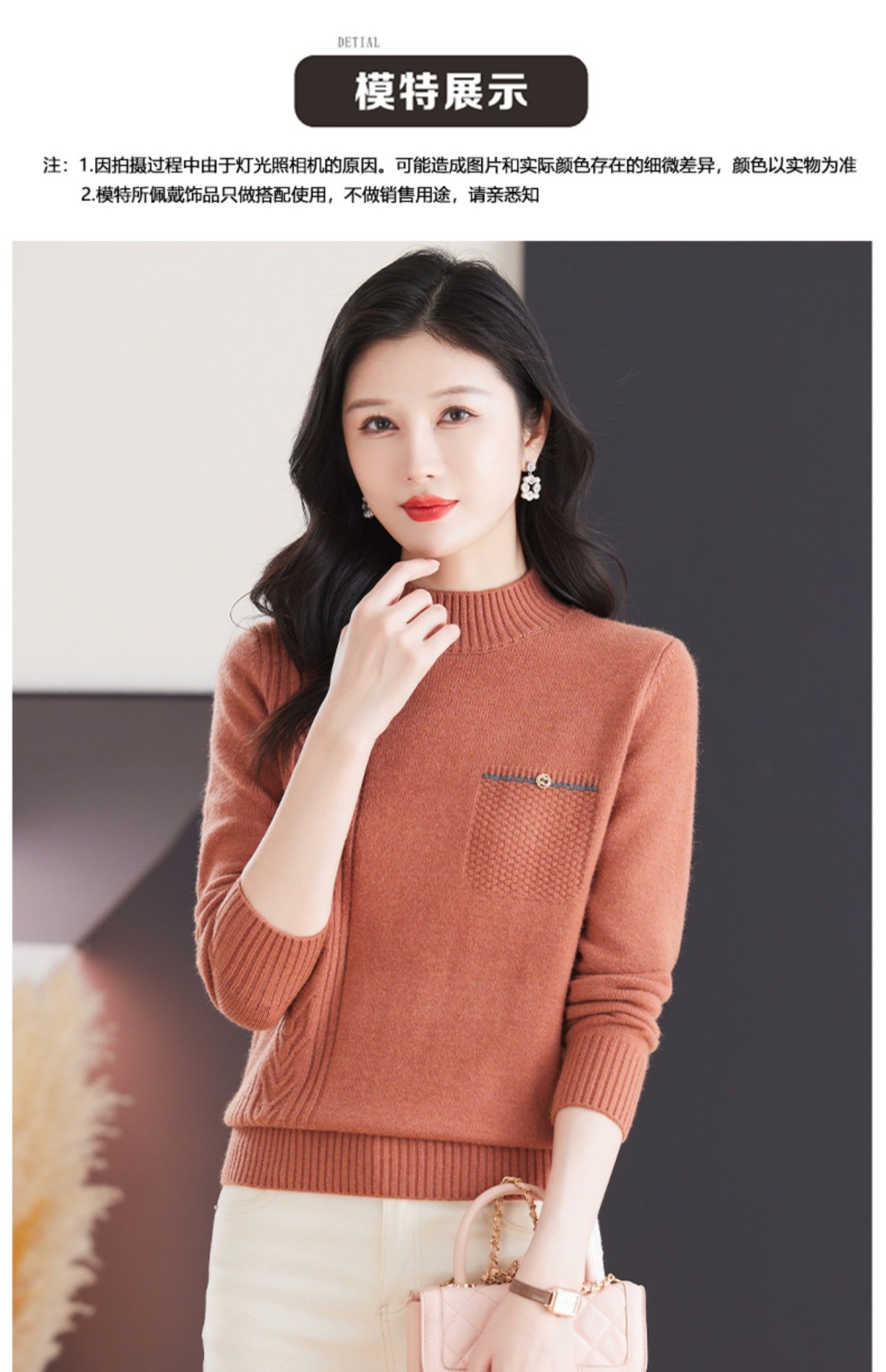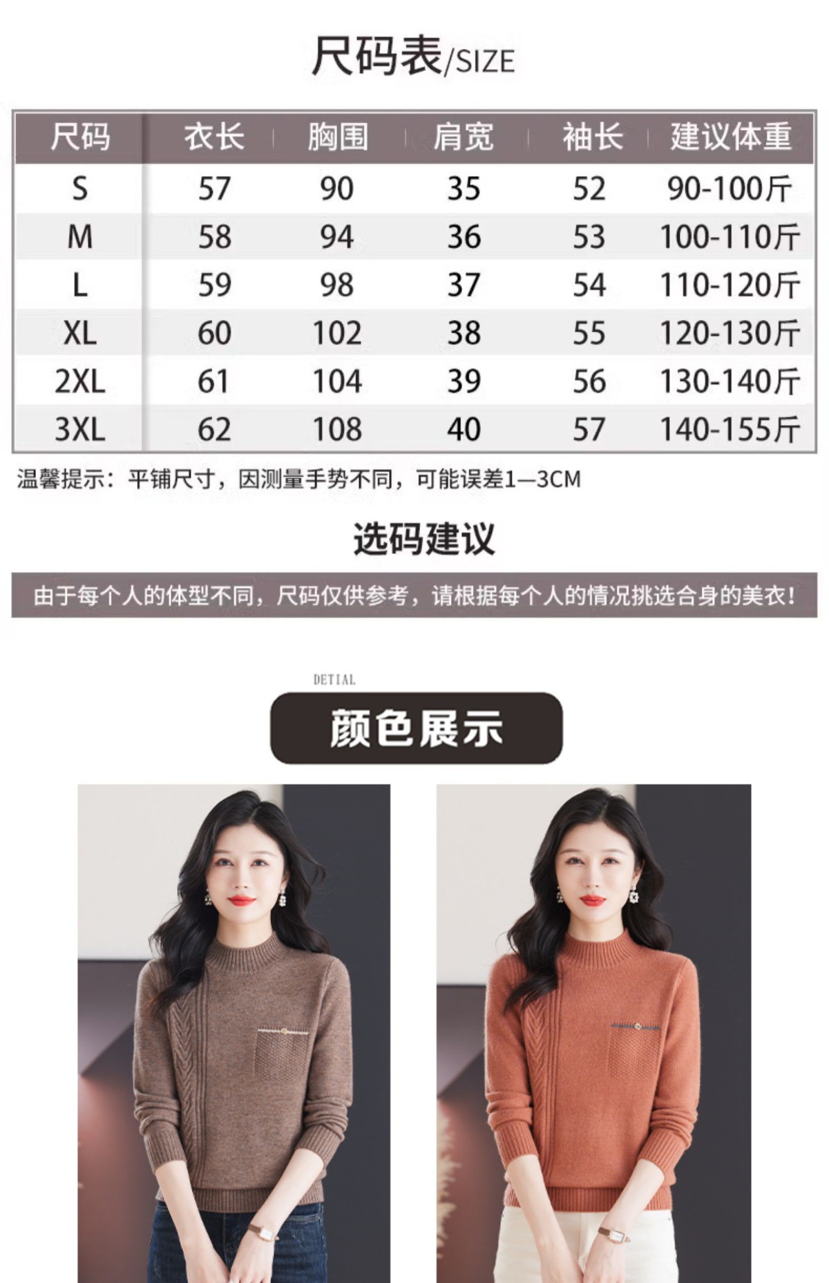 CC-103-79009半高领打底衫女秋冬羊毛上衣女2024新款秋冬厚款妈妈长袖内搭毛衣