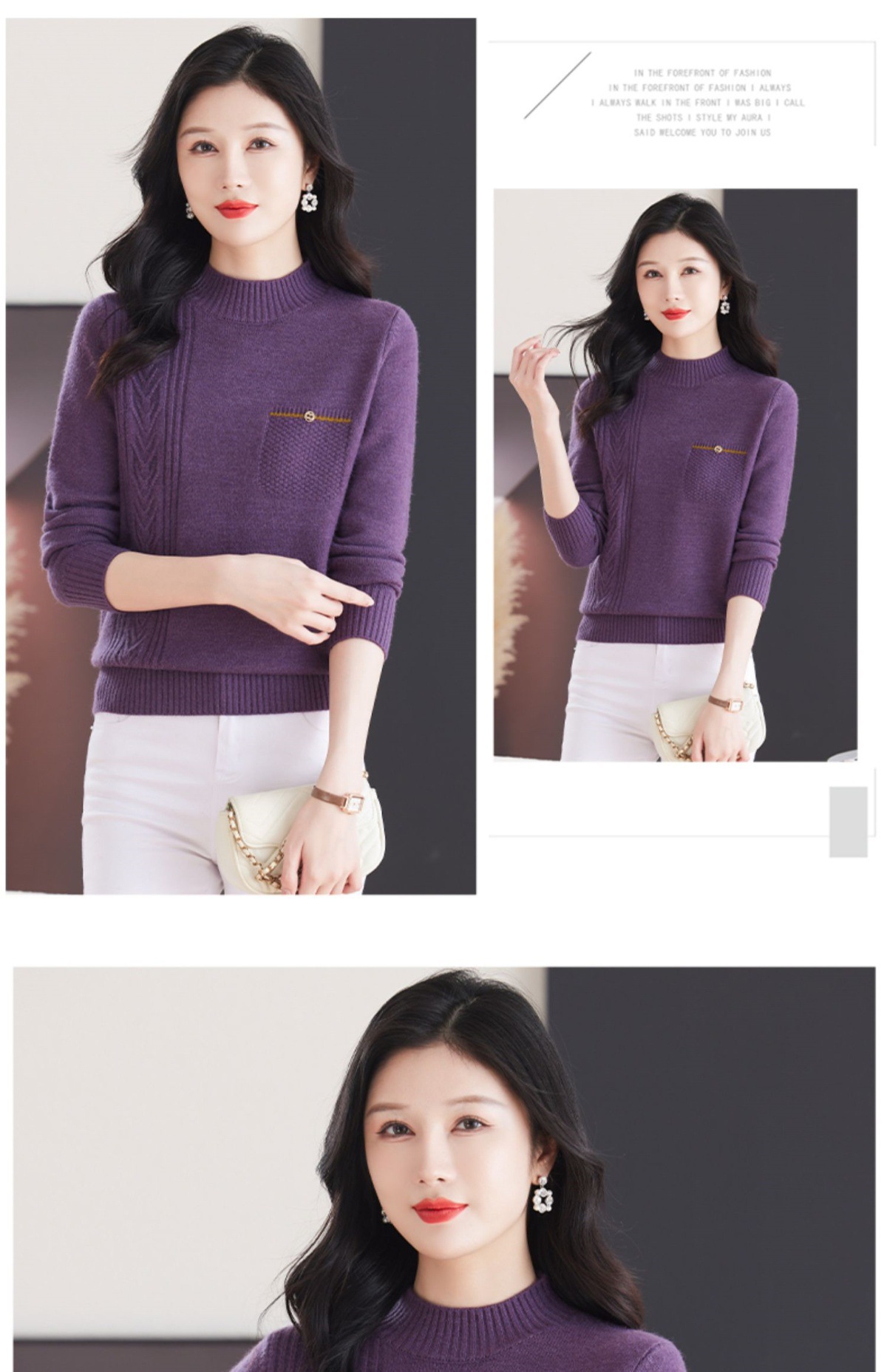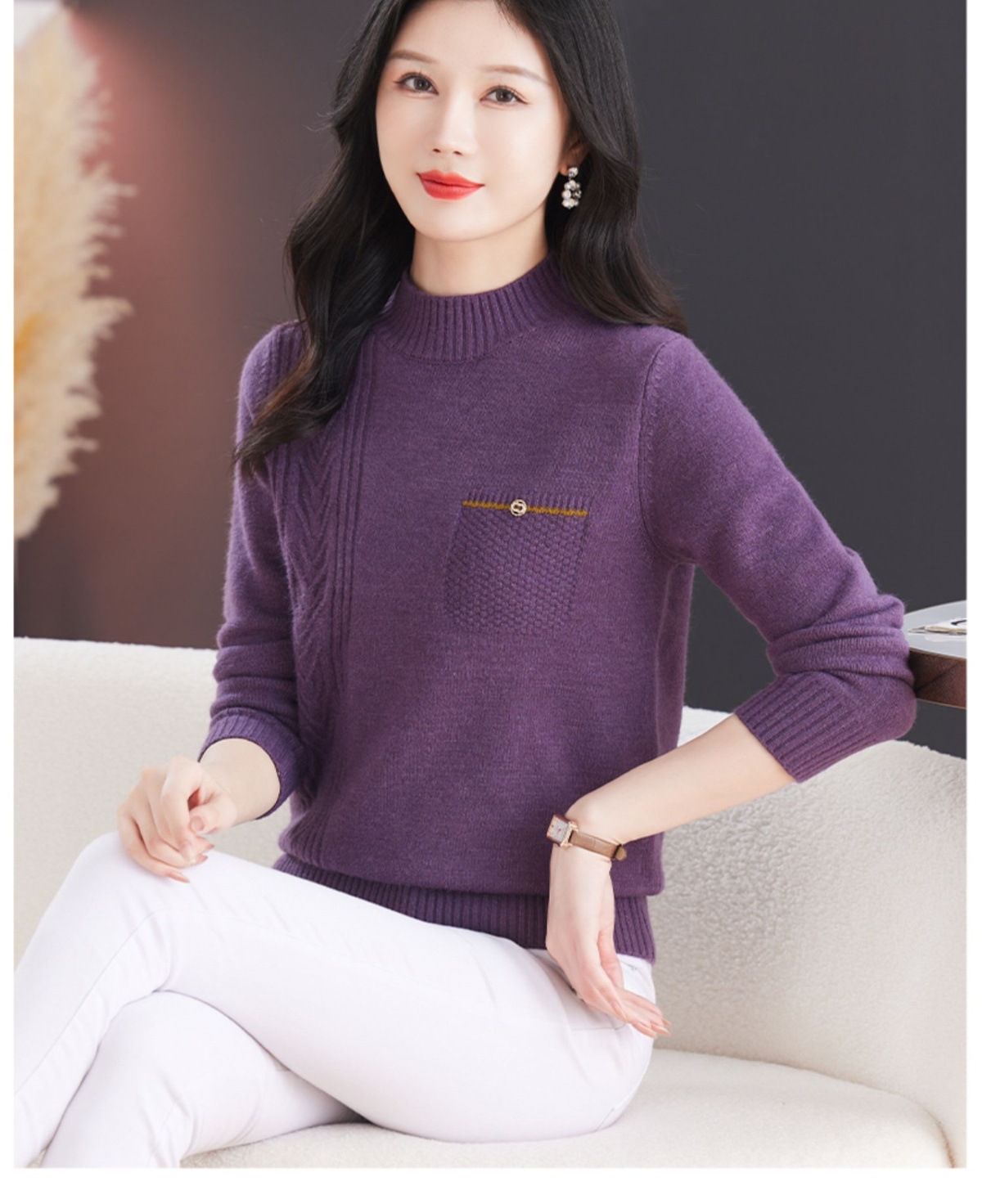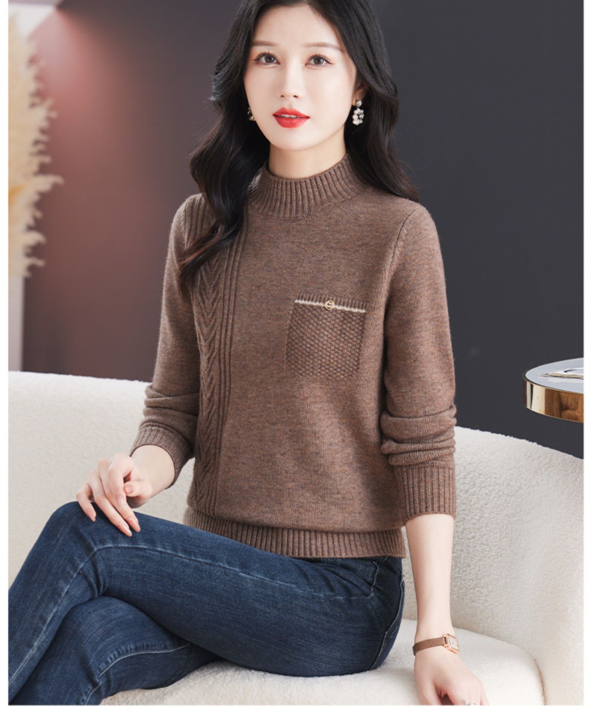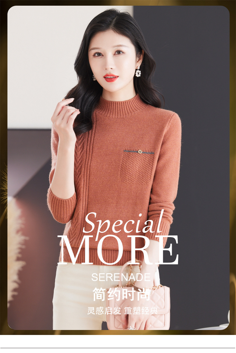 CC-103-79009半高领打底衫女秋冬羊毛上衣女2024新款秋冬厚款妈妈长袖内搭毛衣