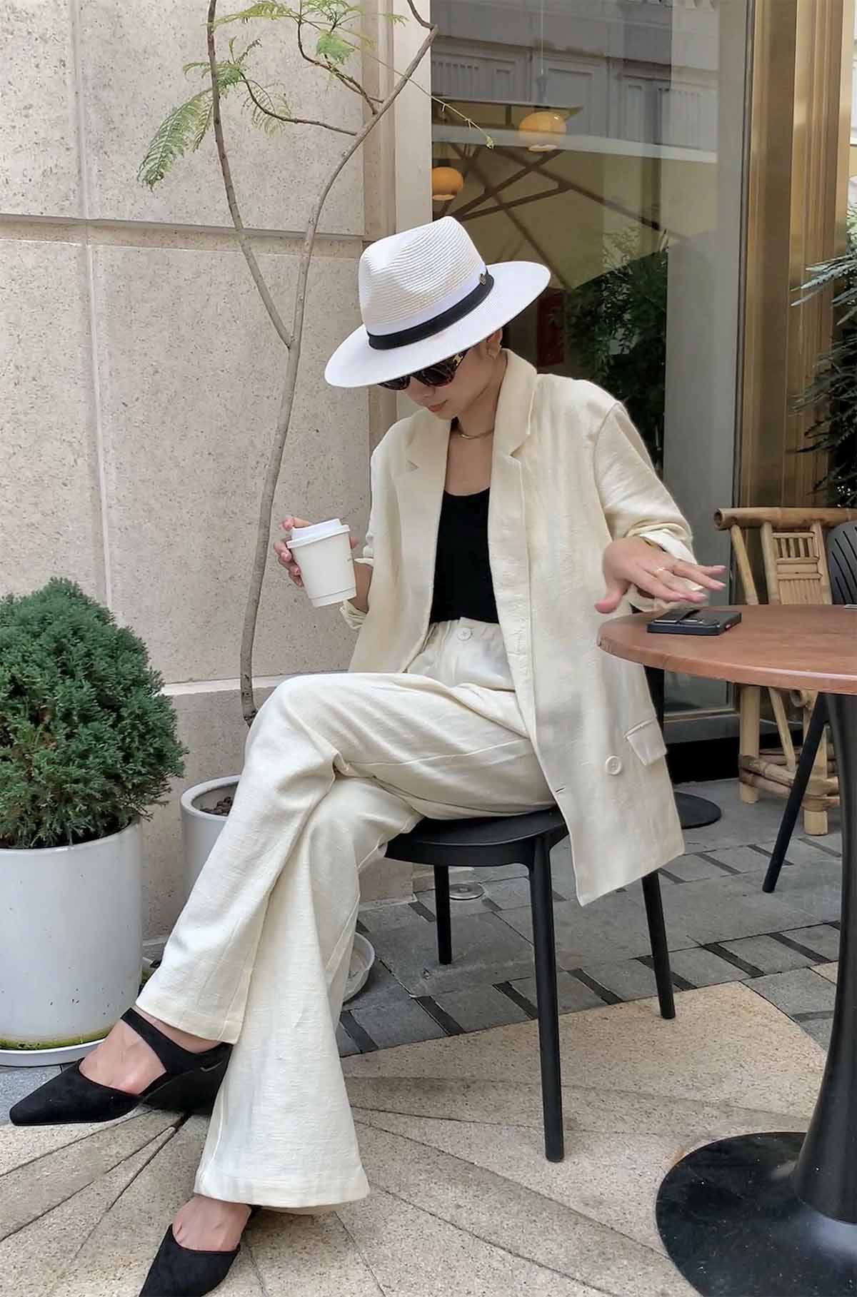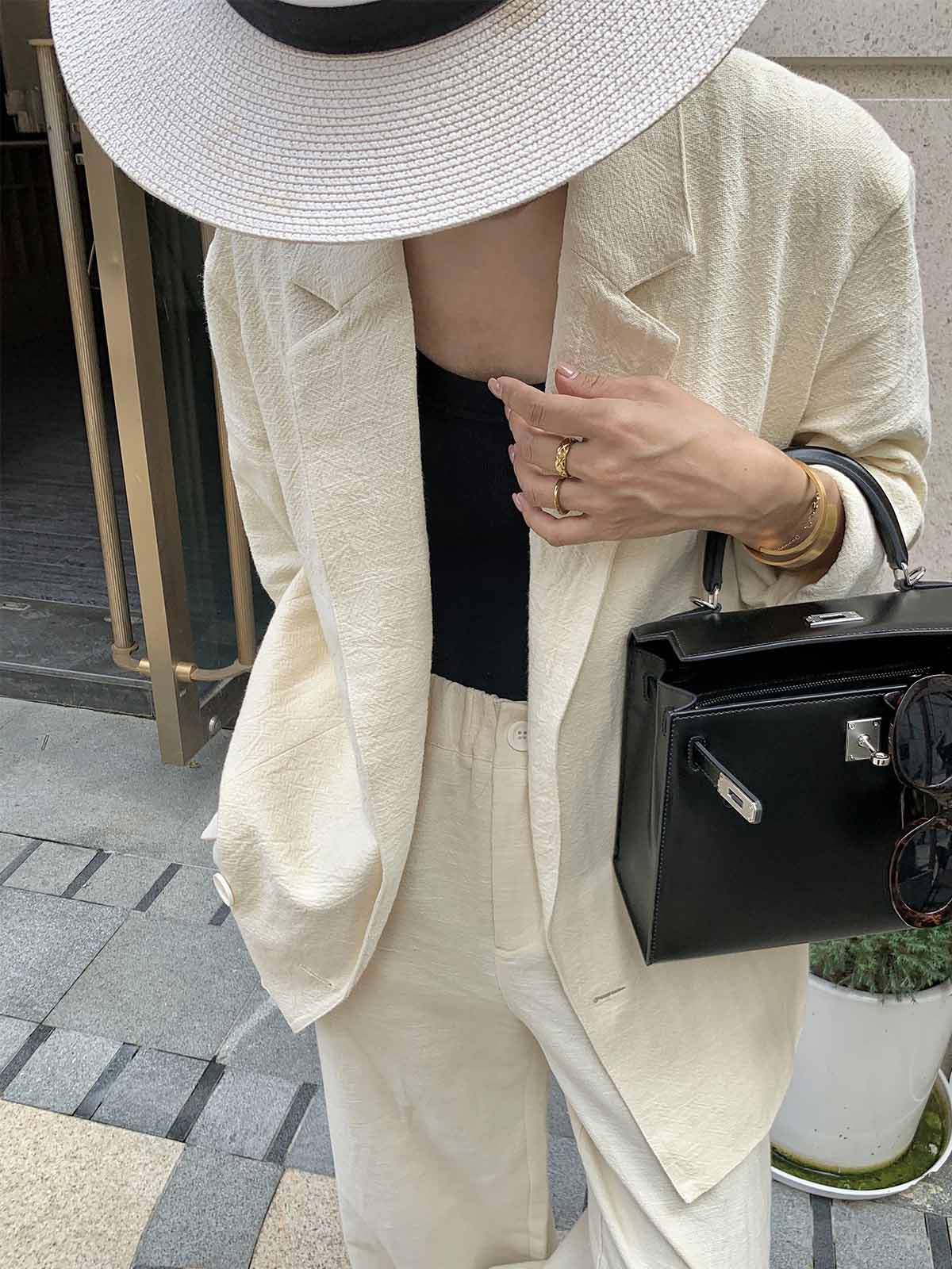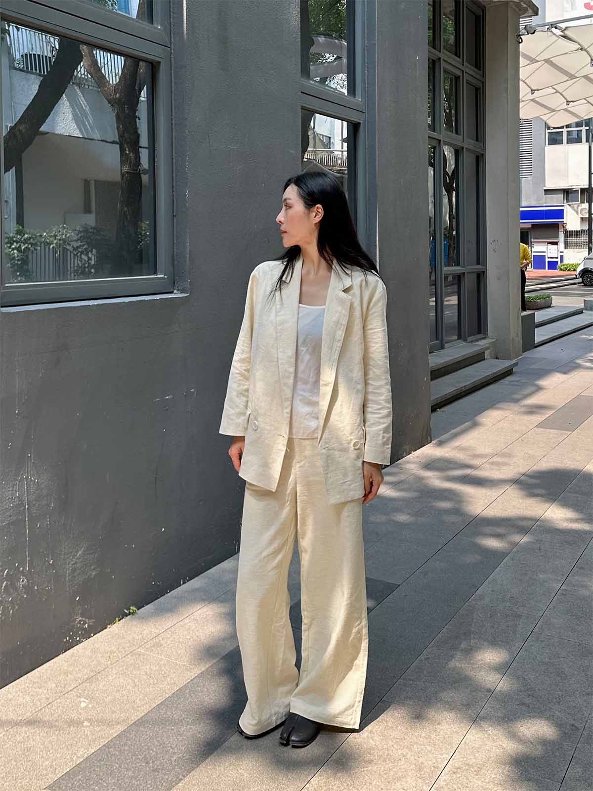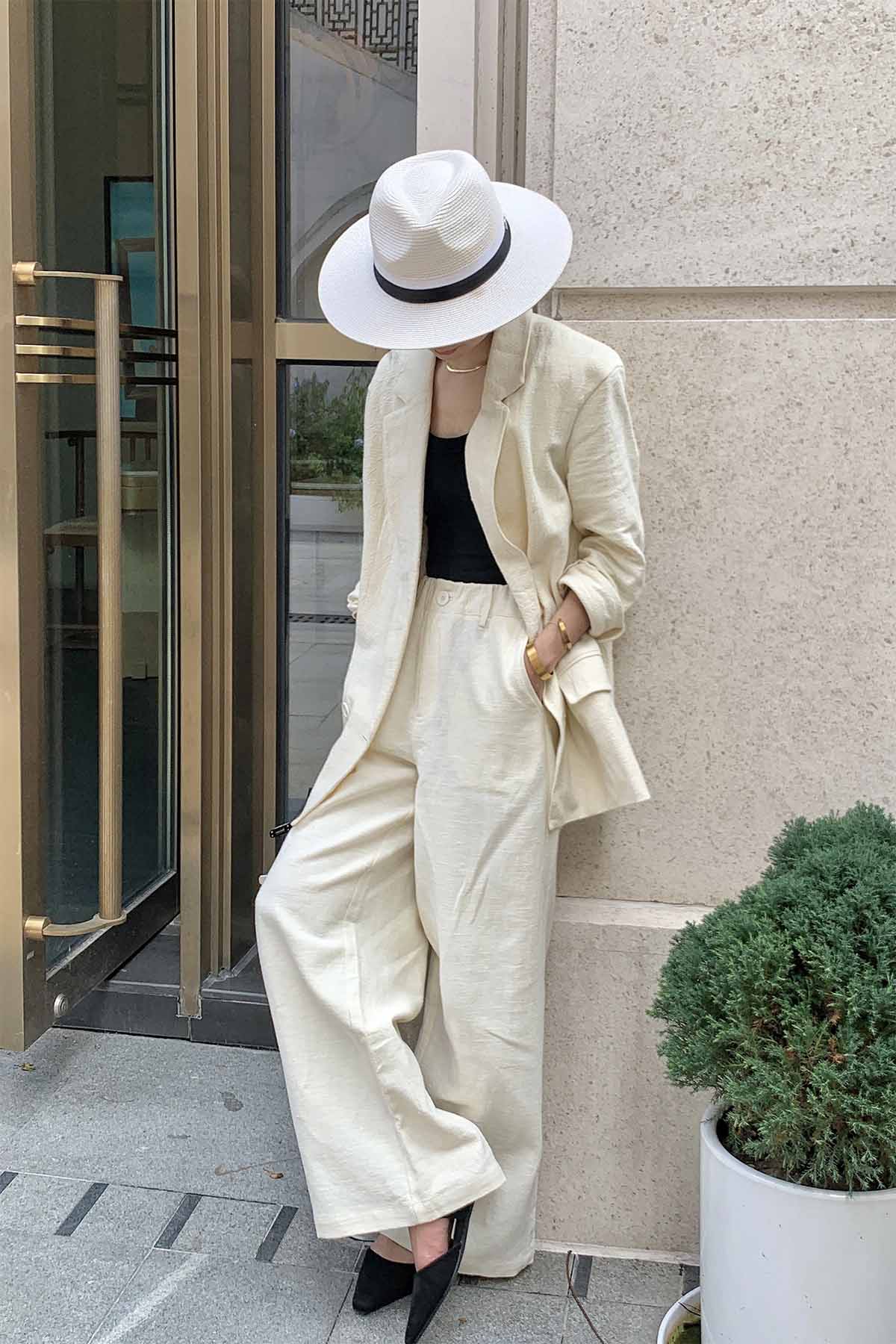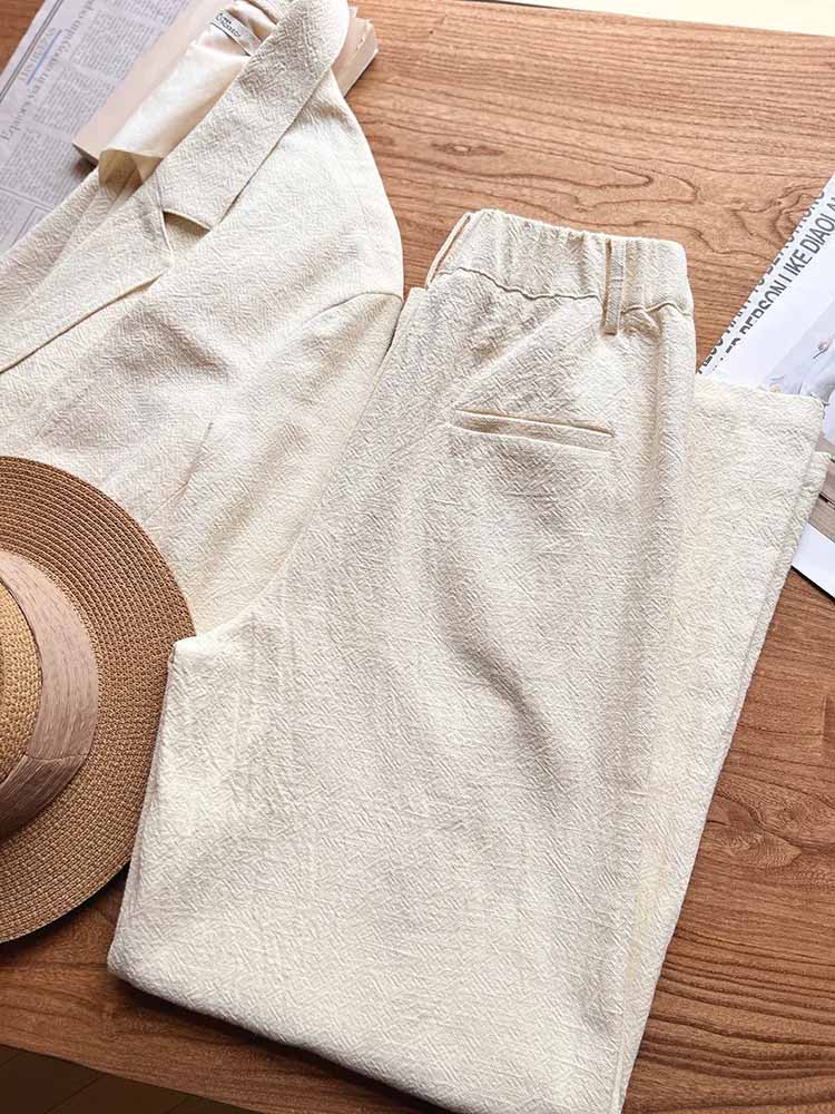 顺丰包邮洛诗琳99427极简棉质翻驳领西装外套直筒裤两件套083