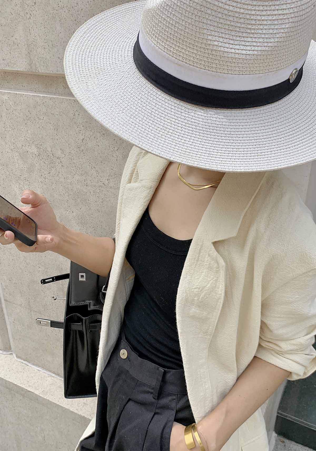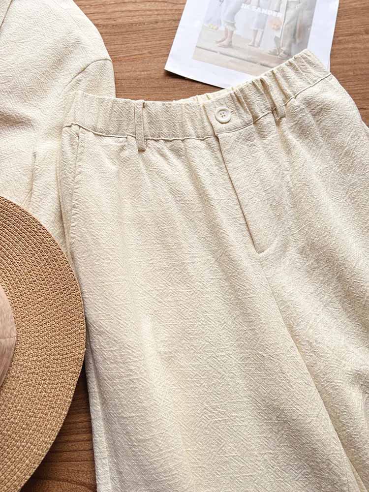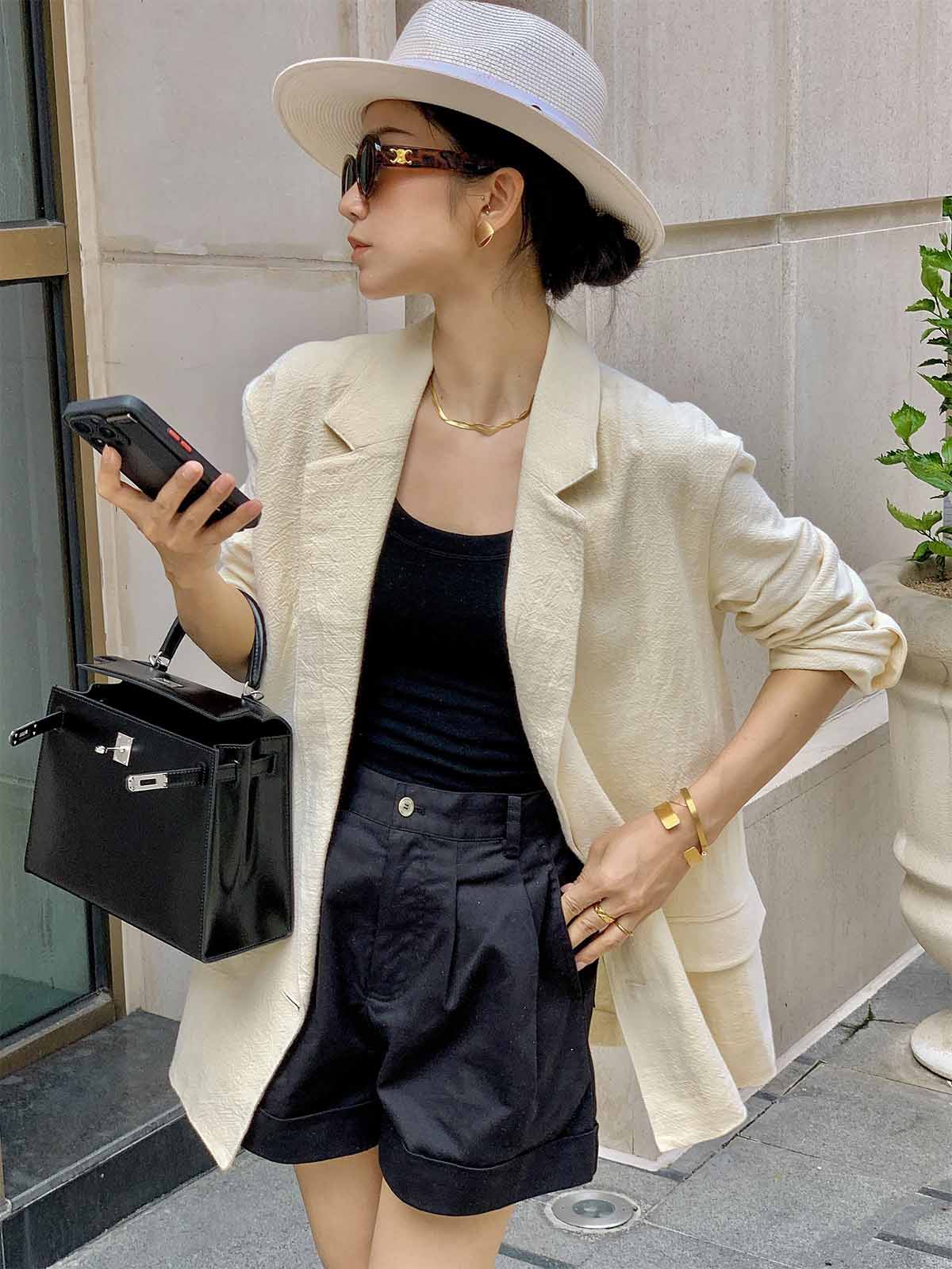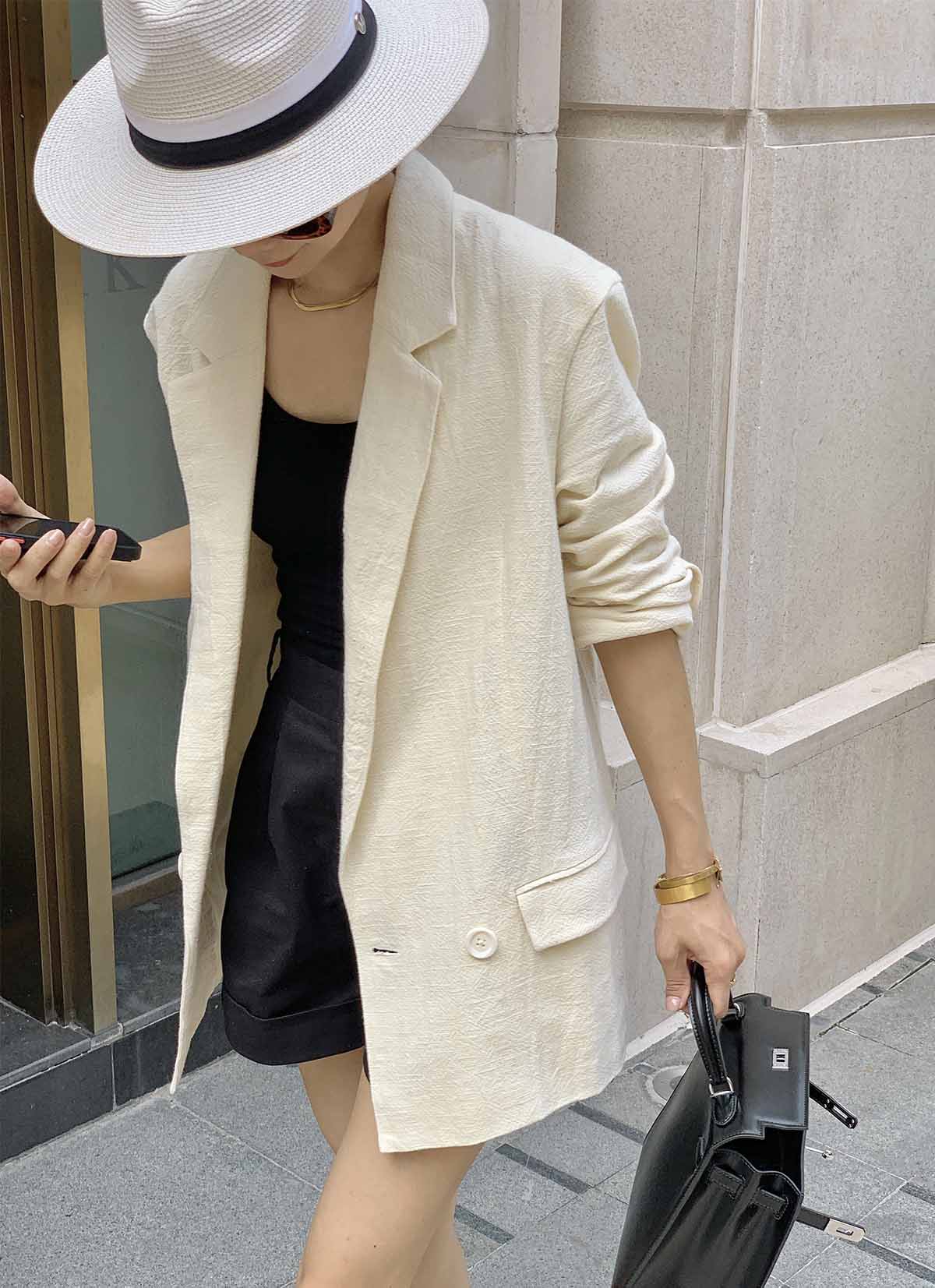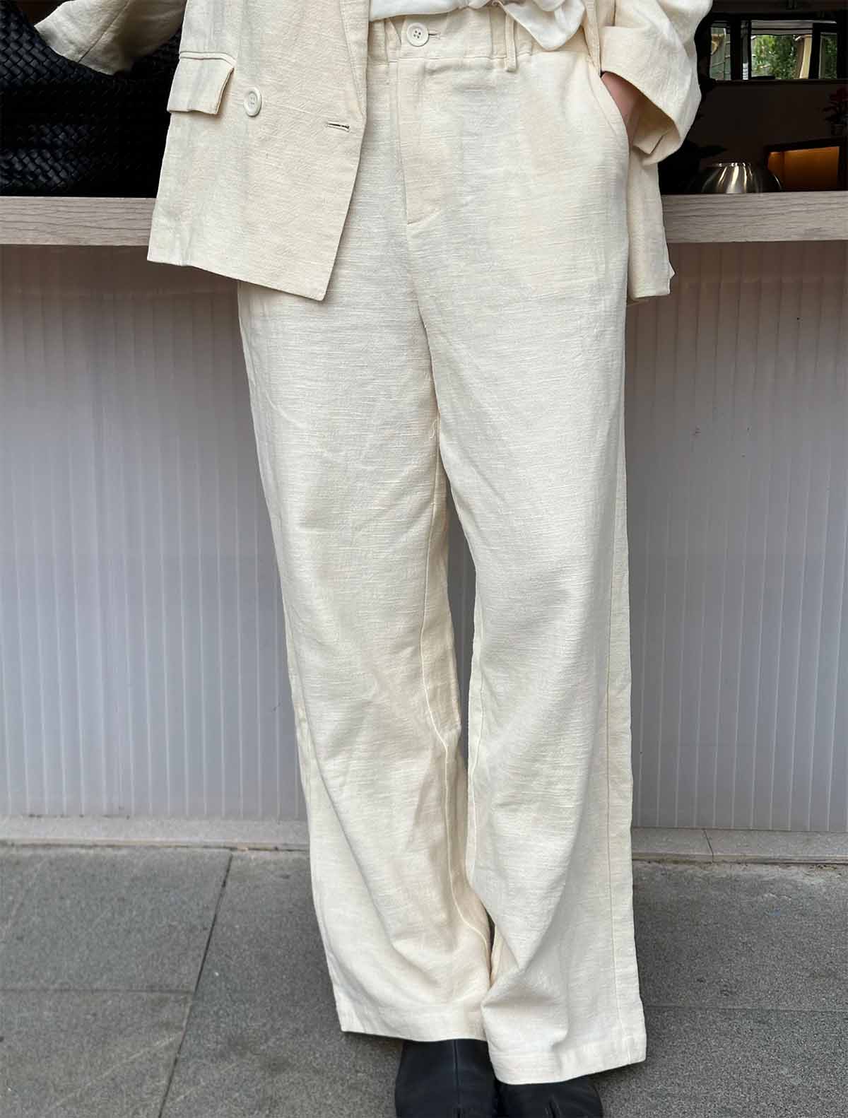 顺丰包邮洛诗琳99427极简棉质翻驳领西装外套直筒裤两件套083