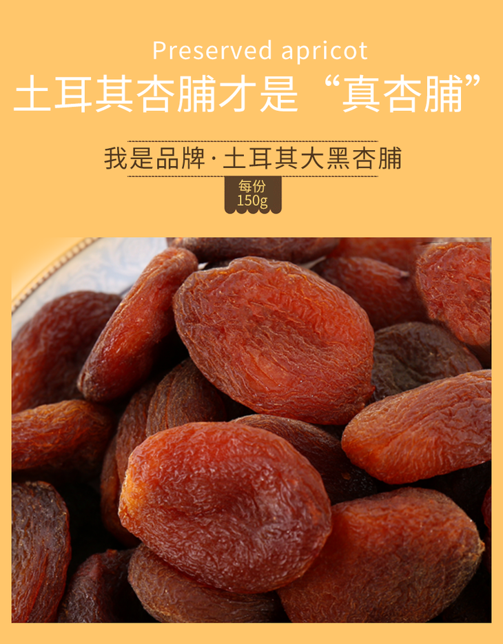 熊星仁 土耳其原色杏脯150g*1袋 零添加天然无核杏脯果脯杏肉