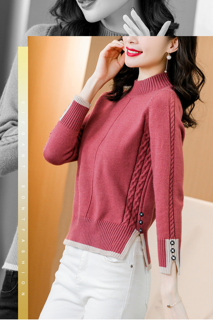 FL2352 秋冬新款半高领加厚女时尚修身衫针织套头毛衣