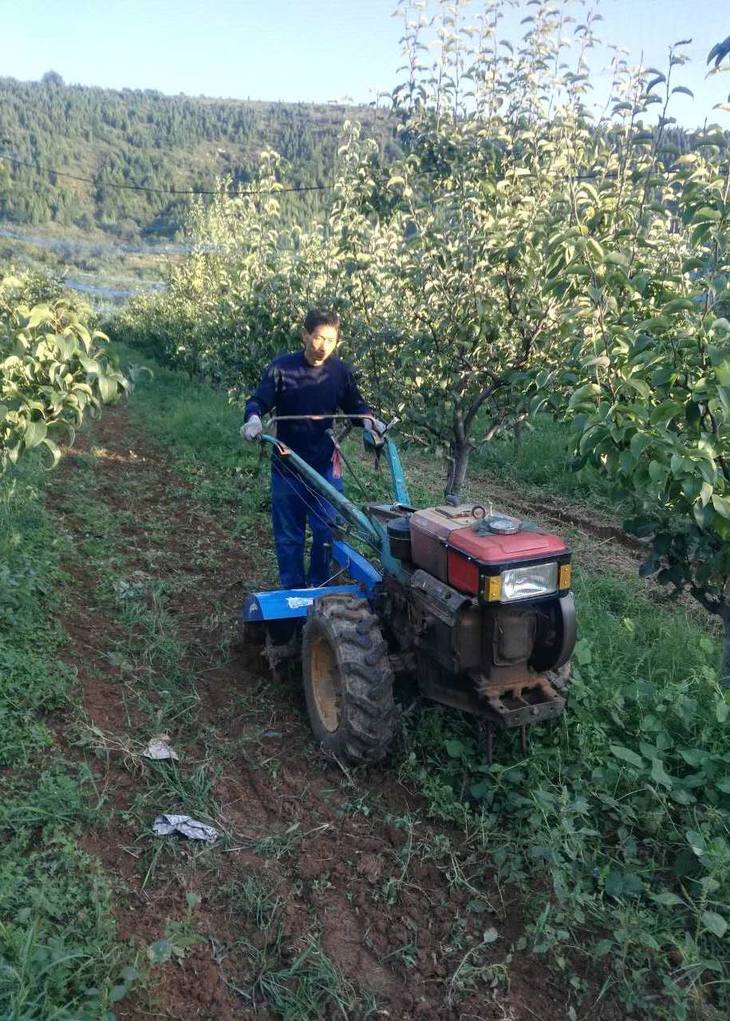 果园会在每年的雨季机器打草,但是会留10cm的草茬,给土壤包水保肥,保持土壤活性,秋季采完果子后会把杂草翻耕到地里充当绿肥。