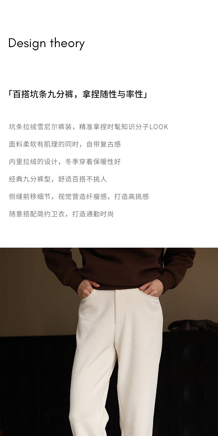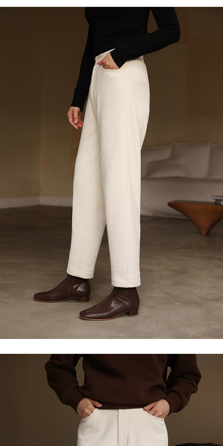 HeyDress加绒雪尼尔休闲裤女冬季高腰宽松显瘦阔腿裤保暖九分裤子
