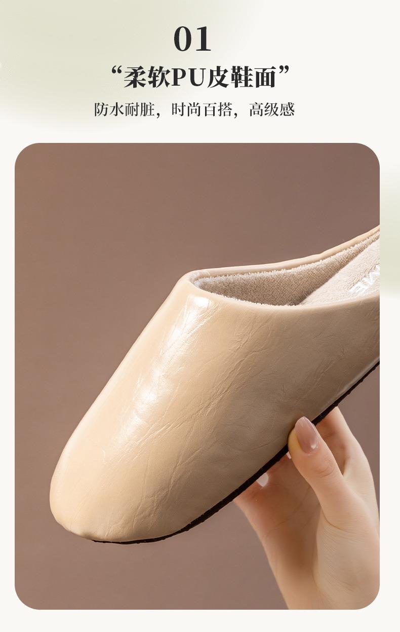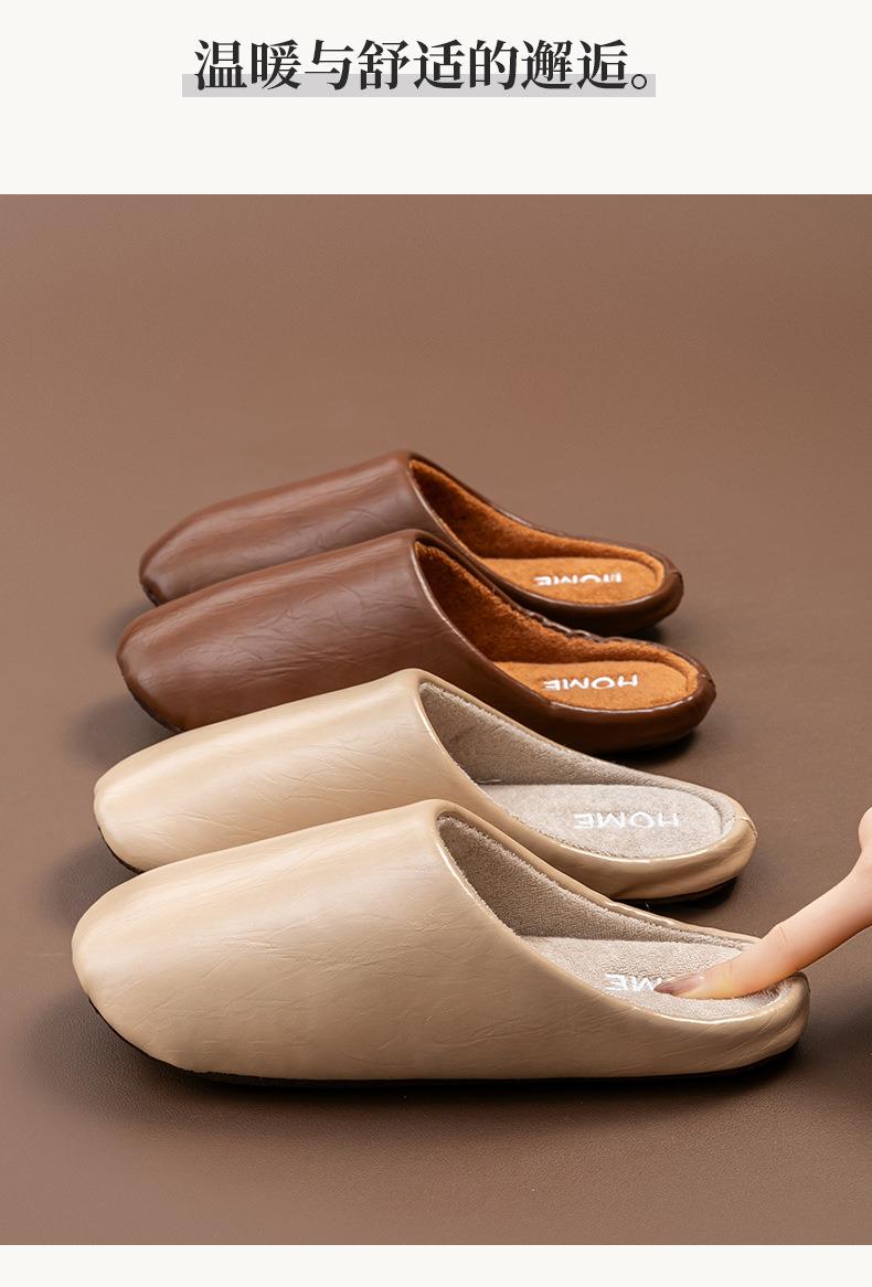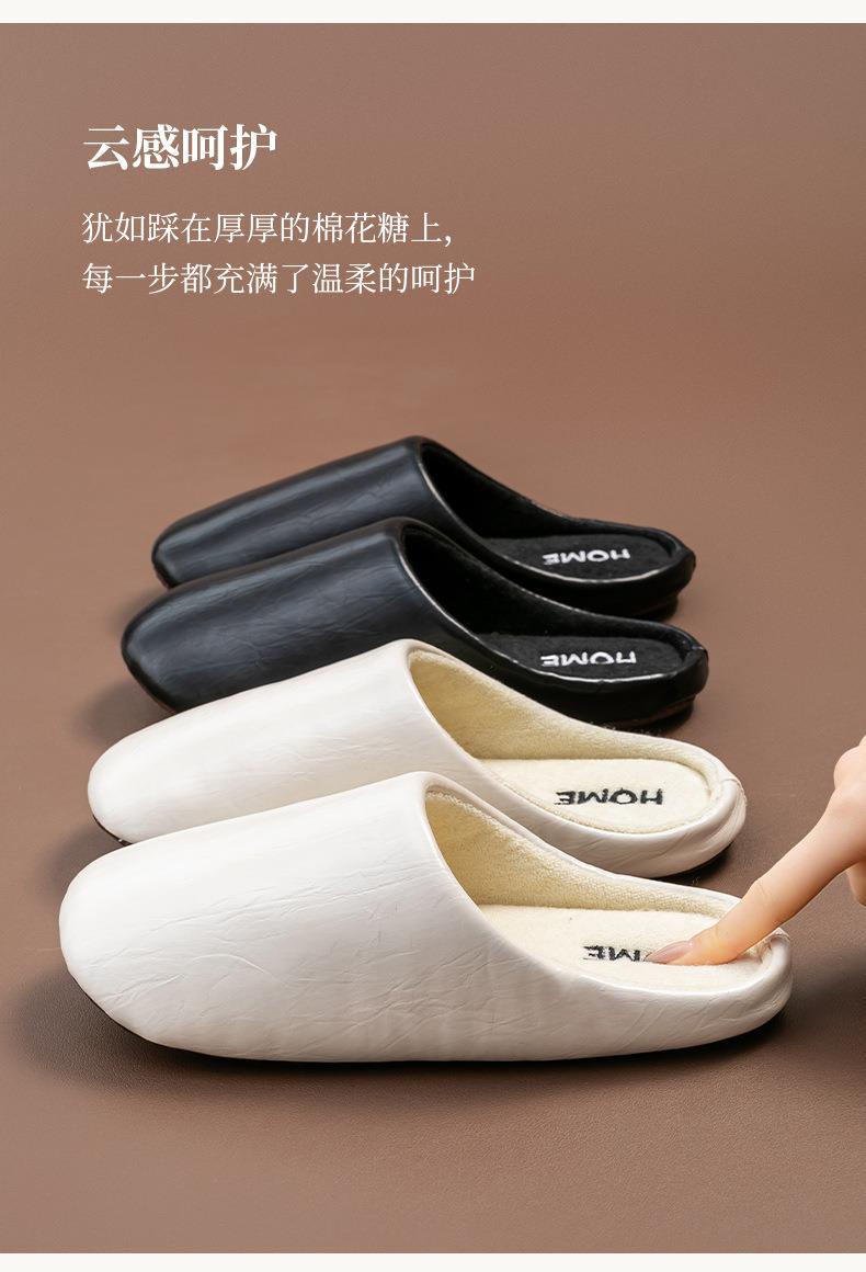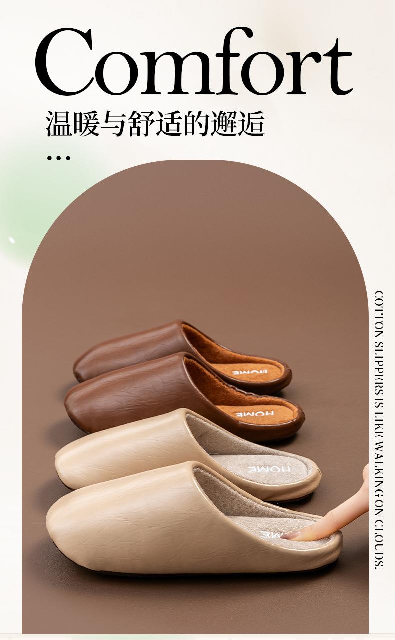 【家居防水静音皮面棉拖鞋】软底静音女秋冬季居家用室内保暖防滑毛绒家居棉拖鞋男