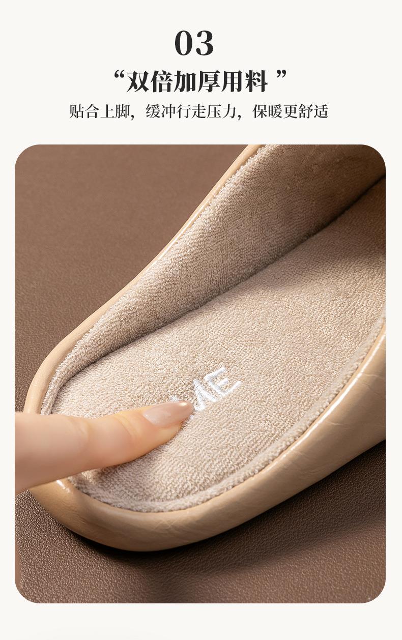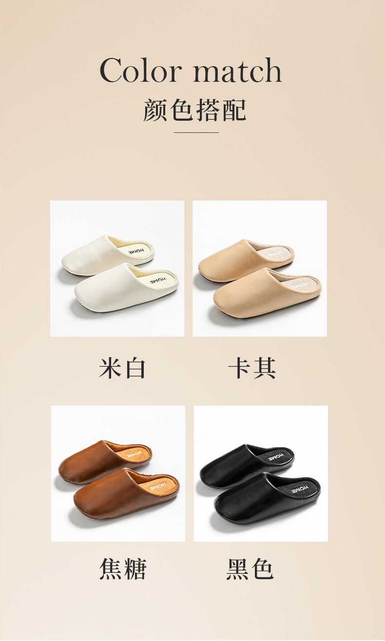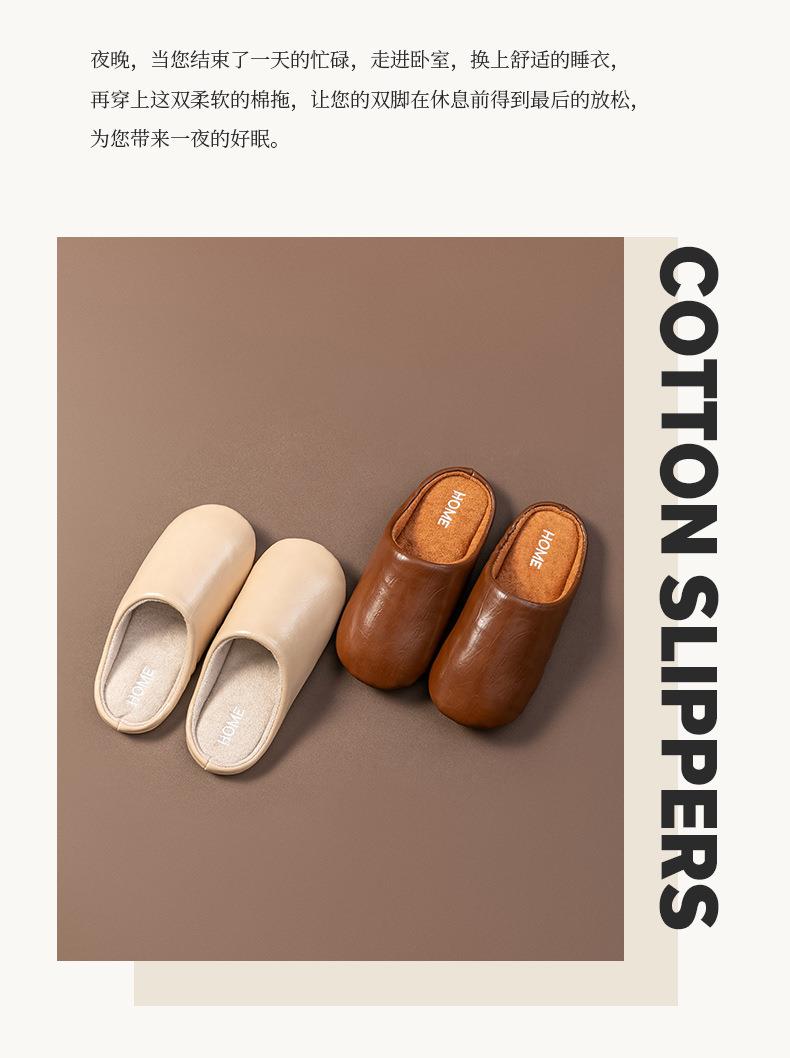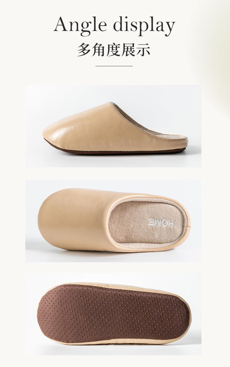 【家居防水静音皮面棉拖鞋】软底静音女秋冬季居家用室内保暖防滑毛绒家居棉拖鞋男