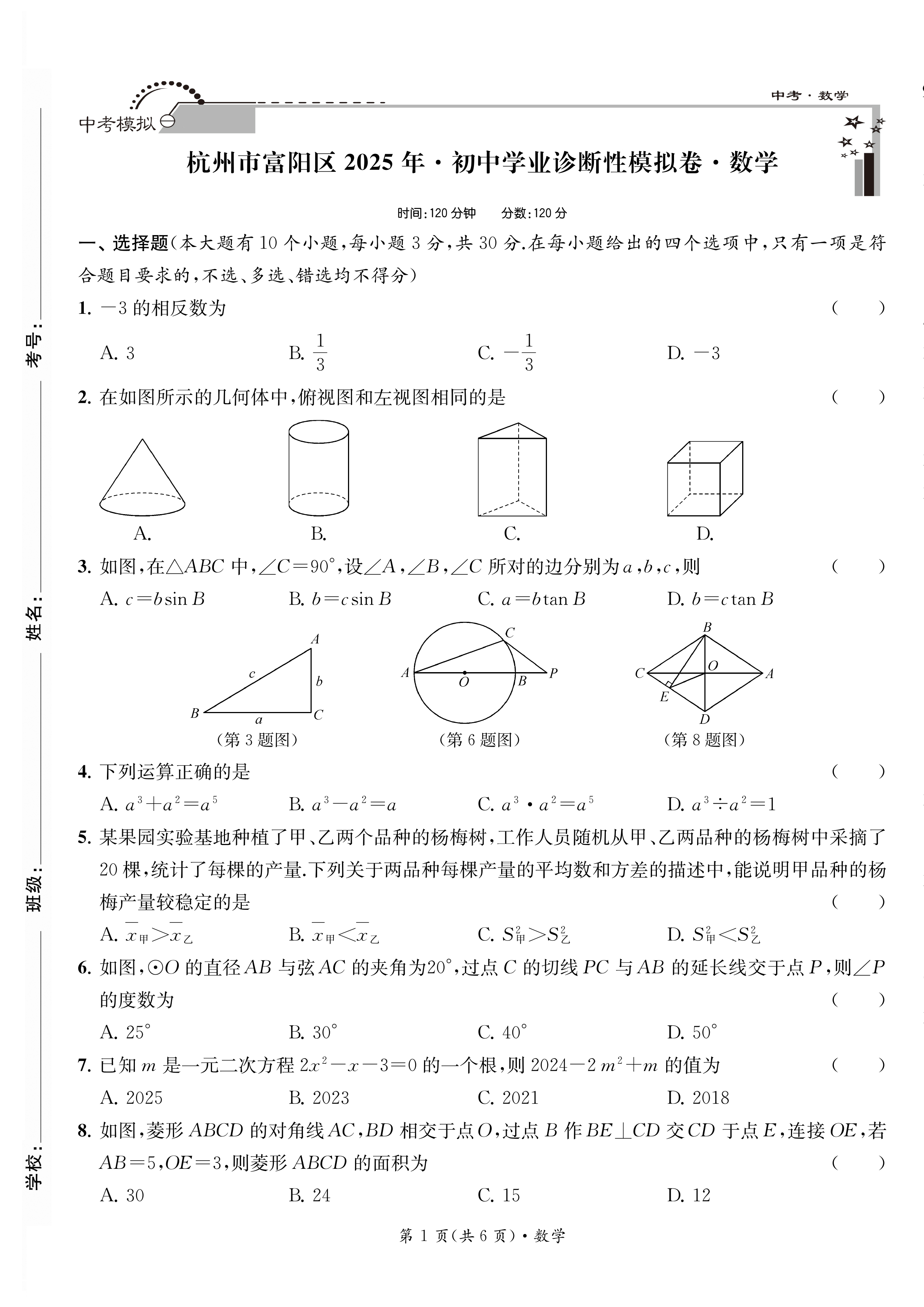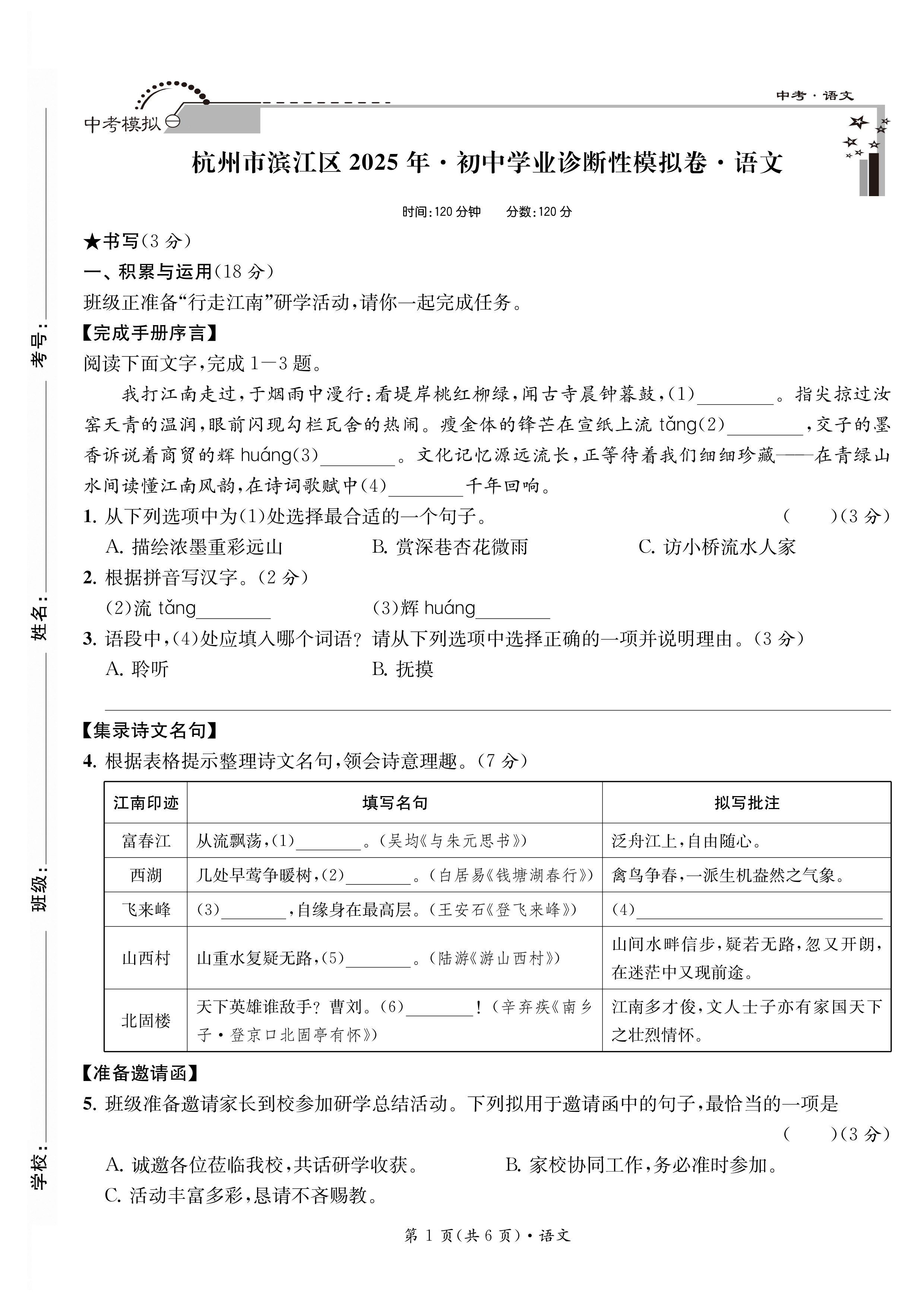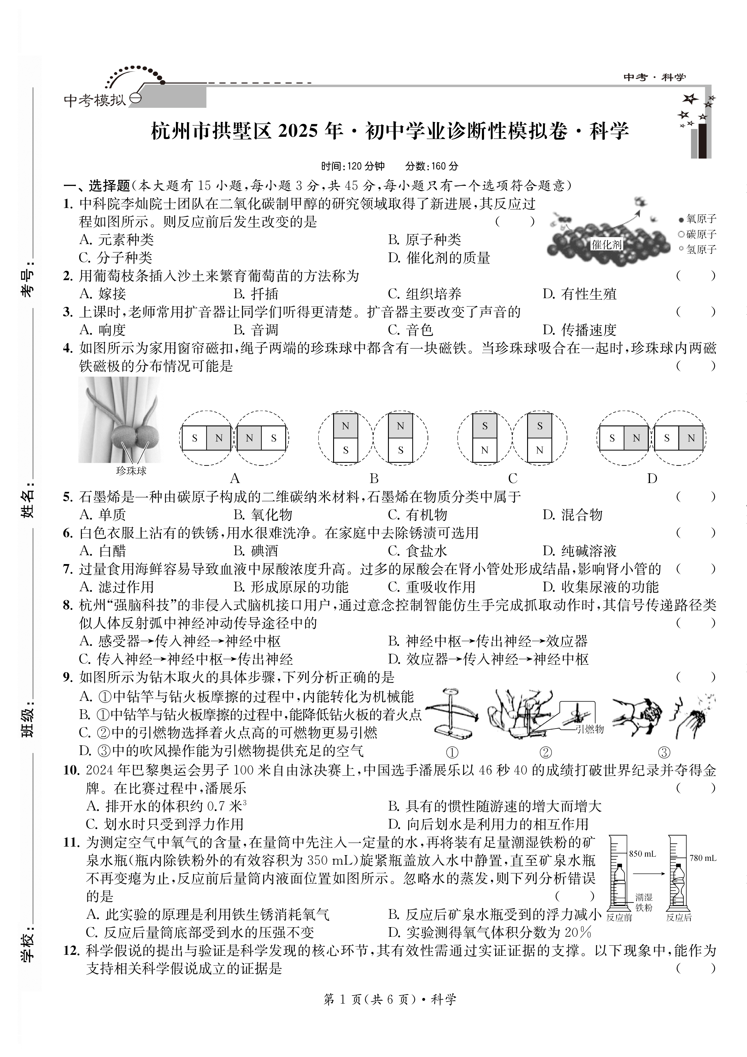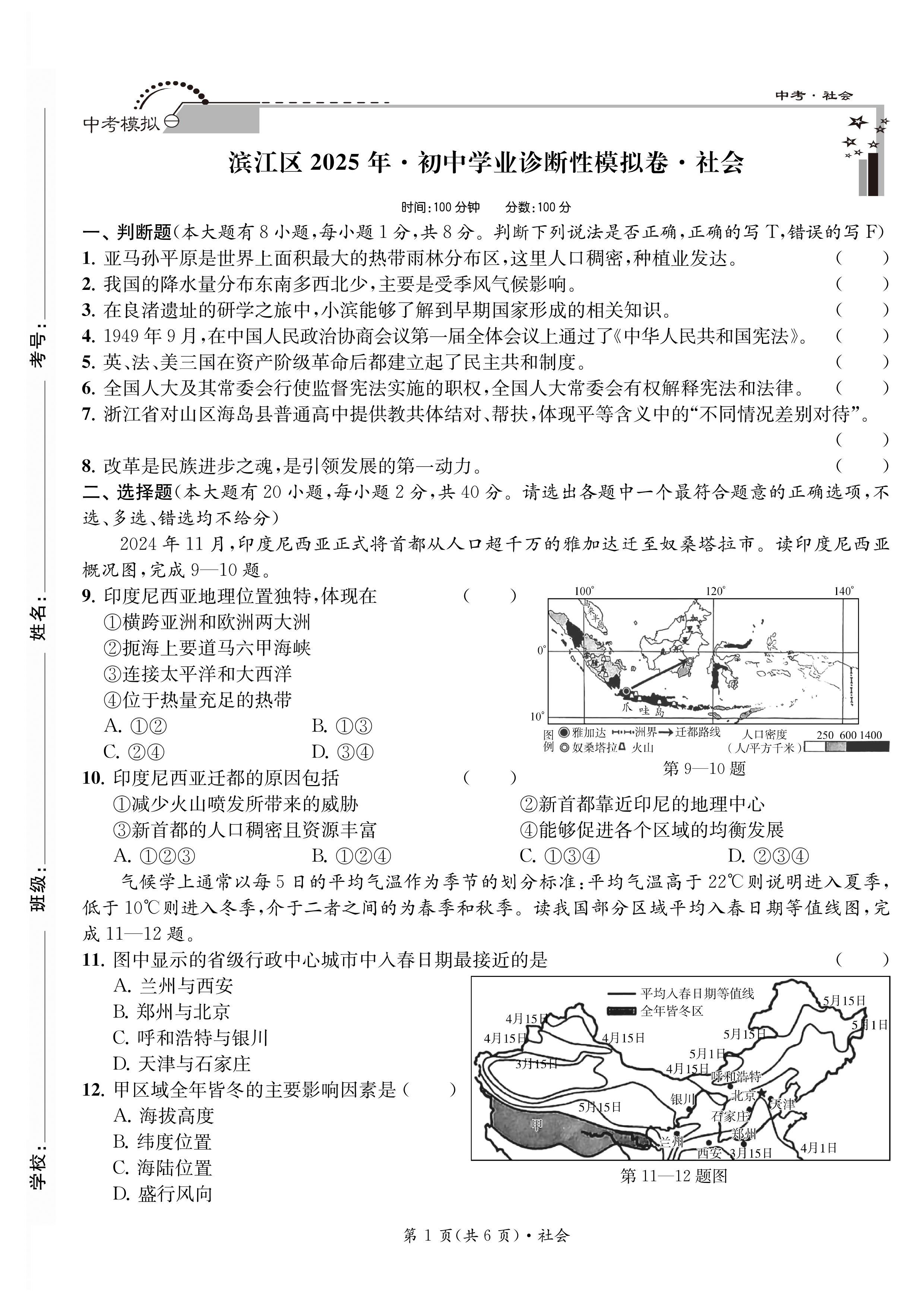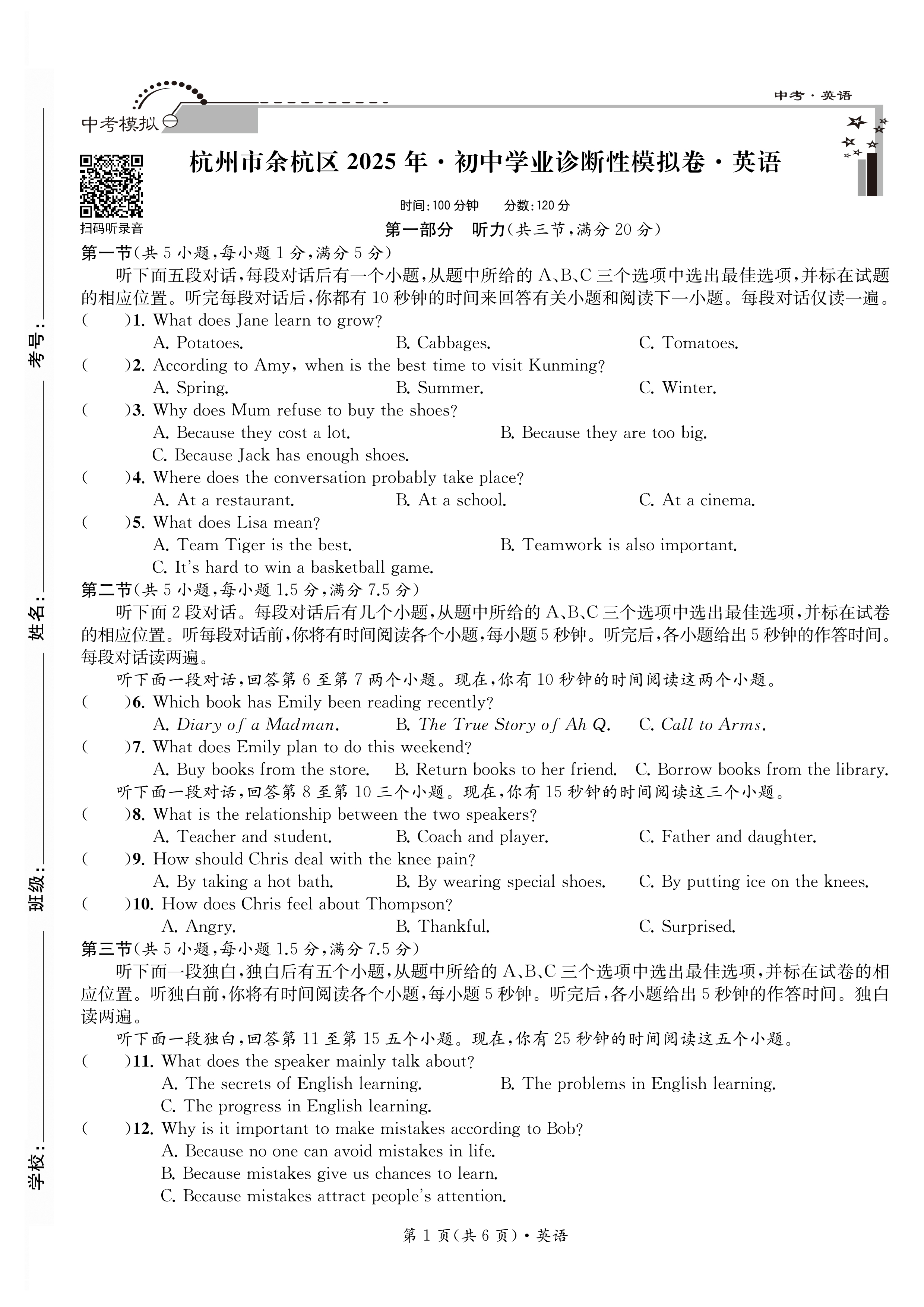 2026 初中学业诊断性模拟卷 语文·数学·英语·科学·社会(带答案)八五折