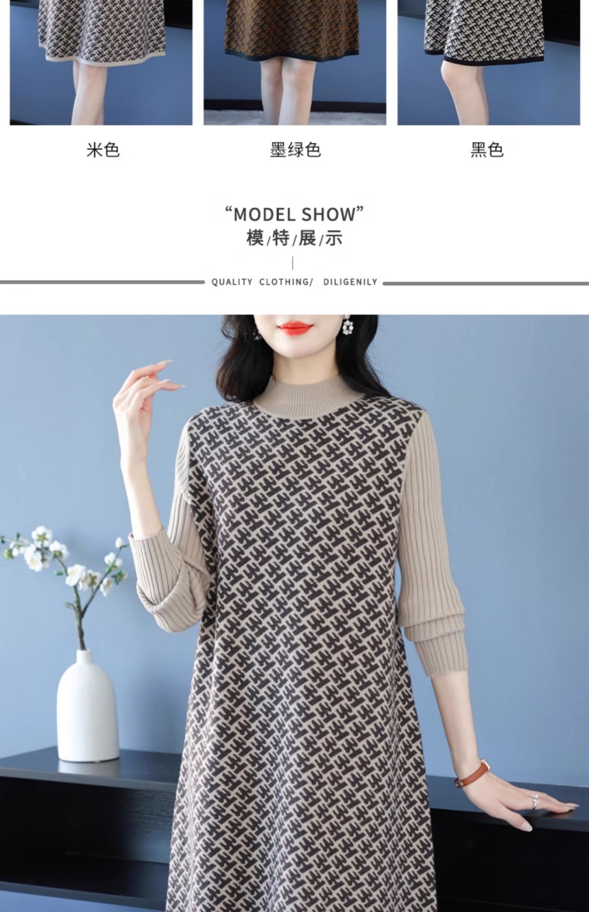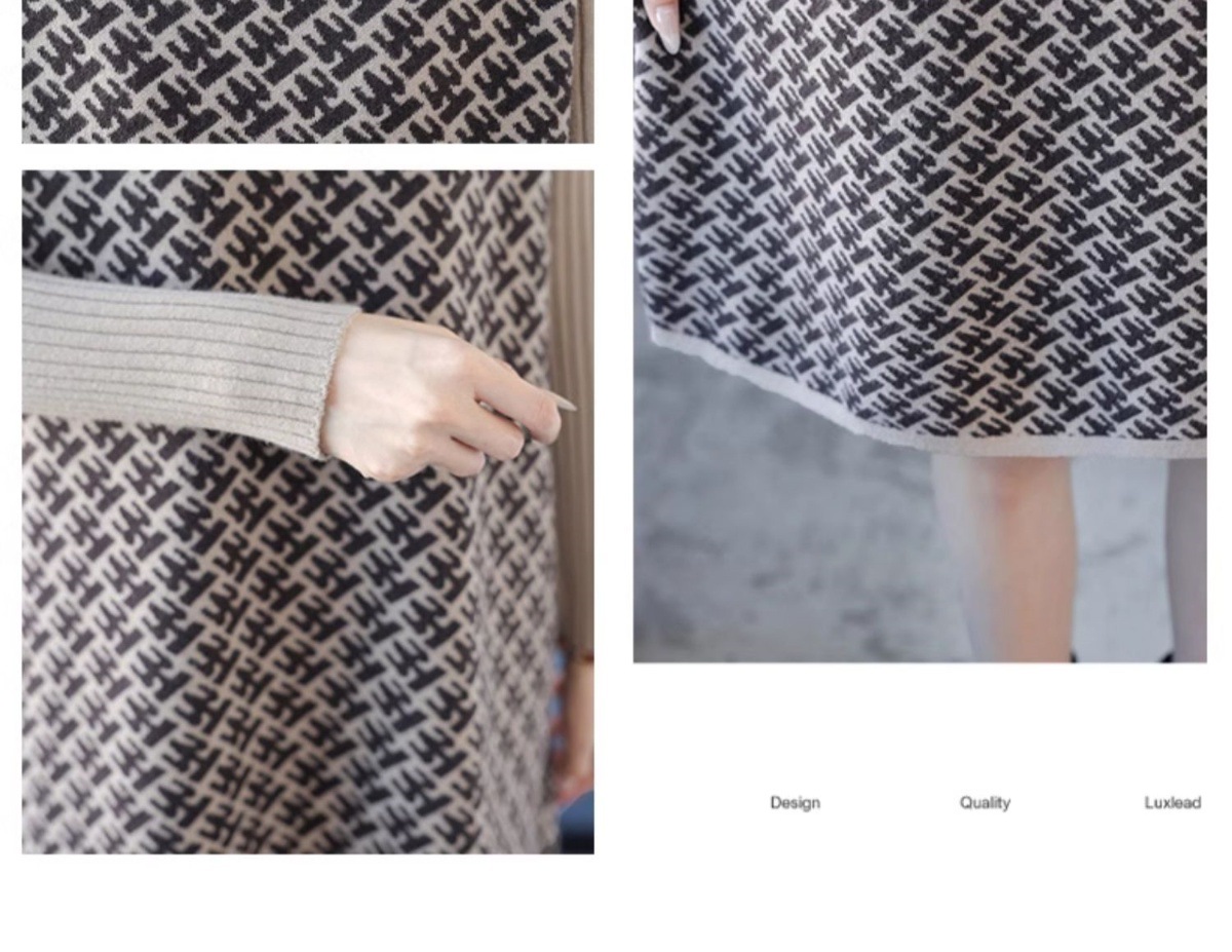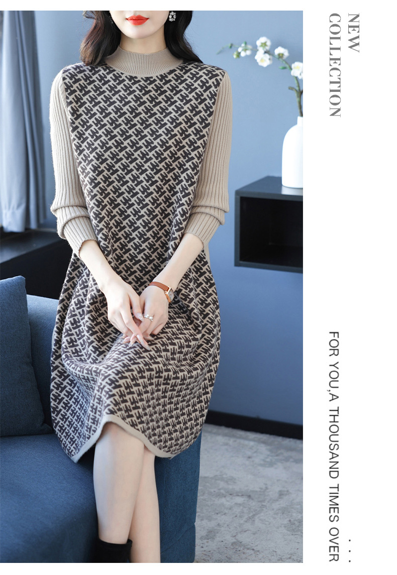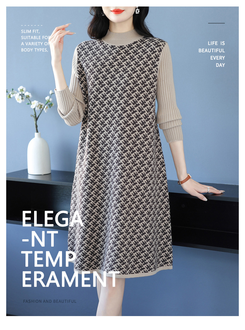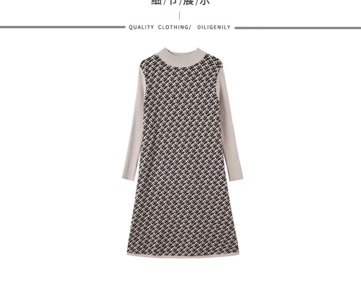 CC-16-9211秋冬提花中长款连衣裙女大码过膝配大衣针织打底毛衣裙
