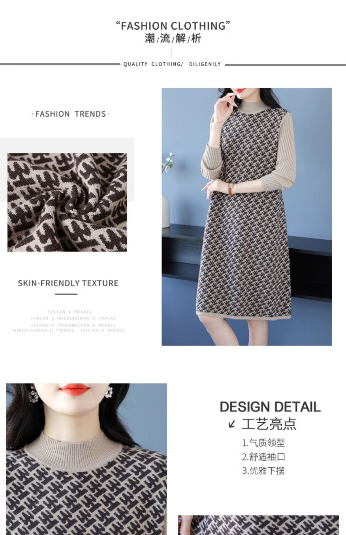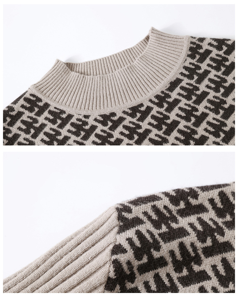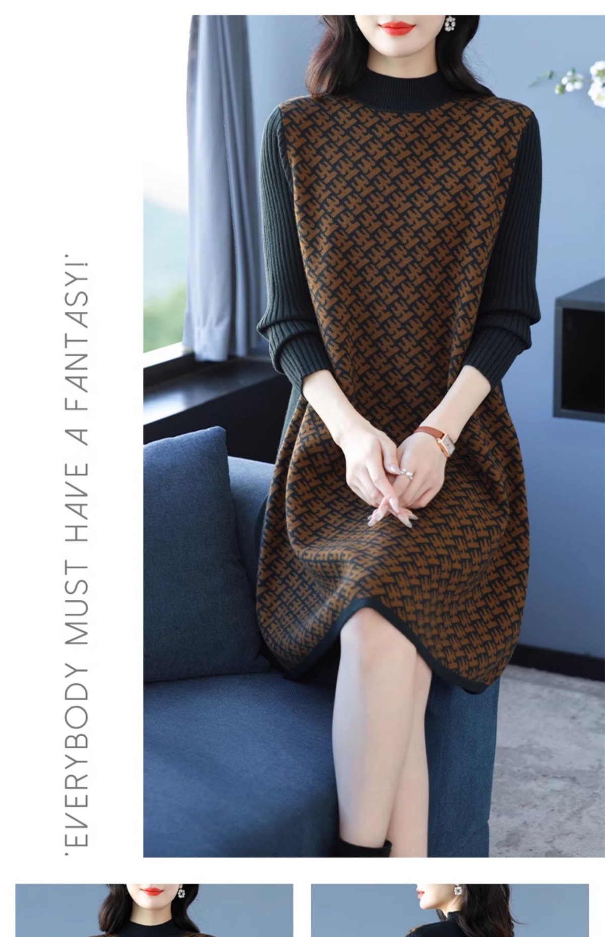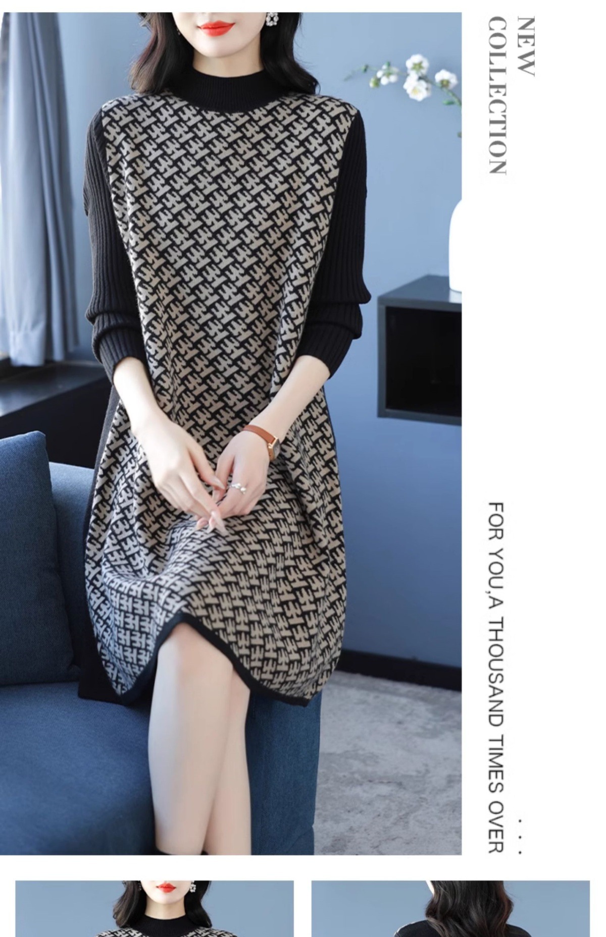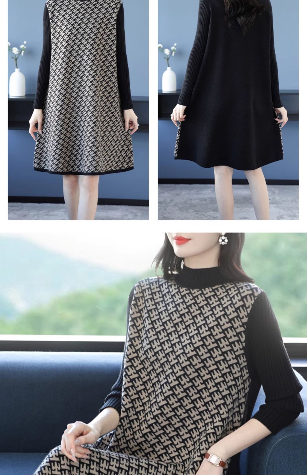 CC-16-9211秋冬提花中长款连衣裙女大码过膝配大衣针织打底毛衣裙