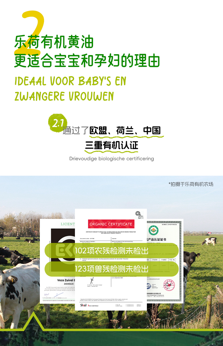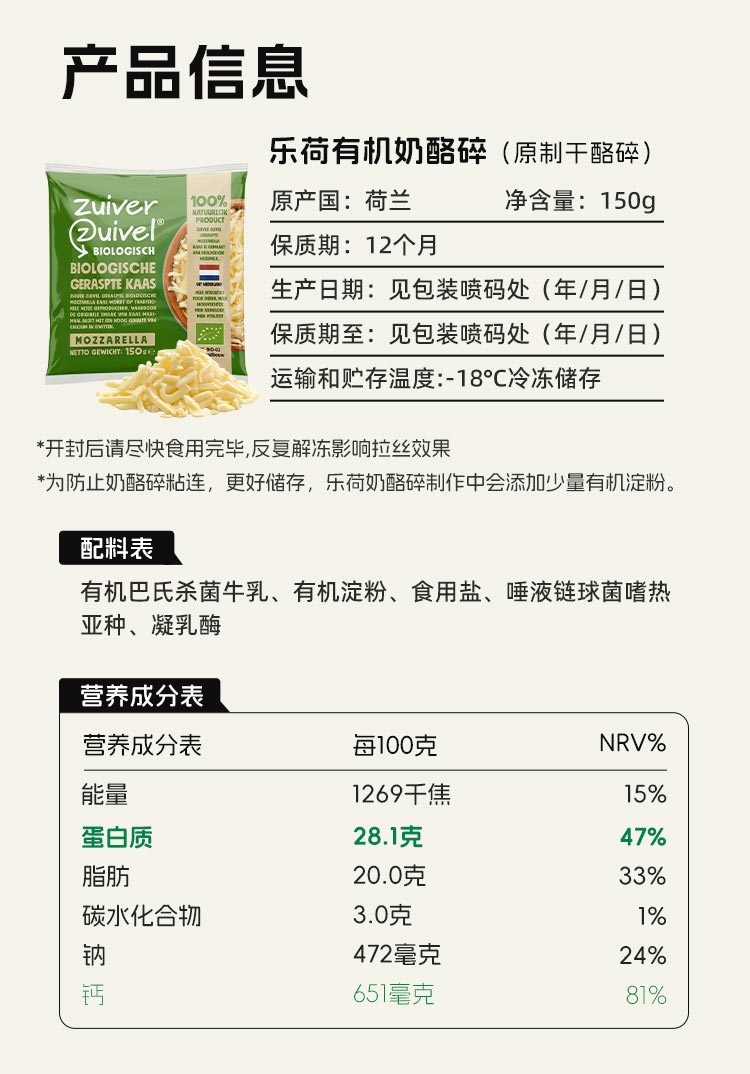 荷兰原装进口有机奶酪碎/有机奶酪/有机黄油 150年贵族有机牧场三重有机认证 纯净配方原制奶酪 乐荷