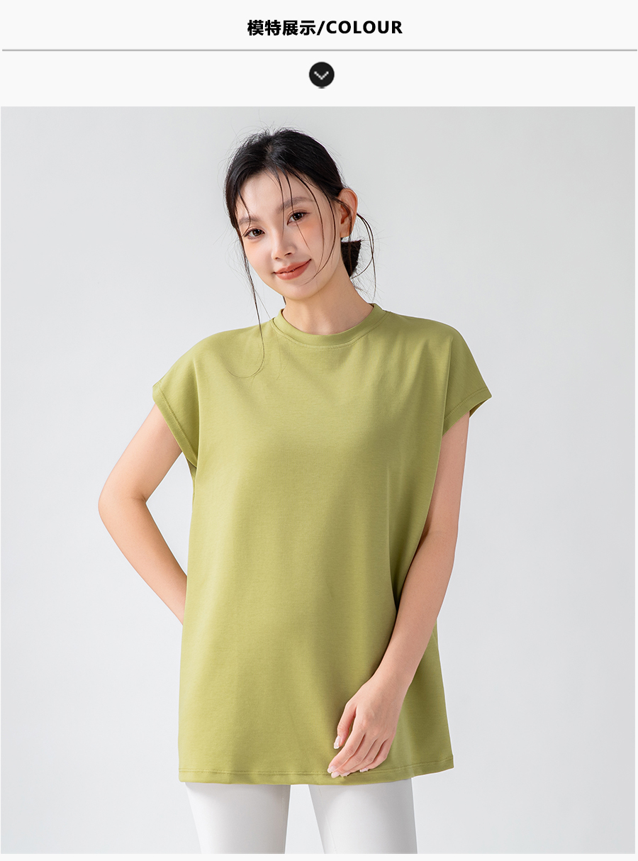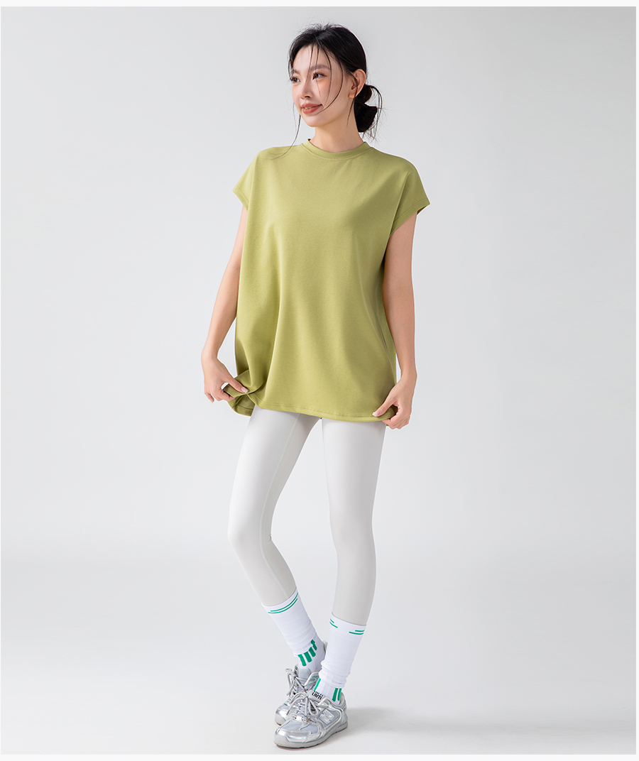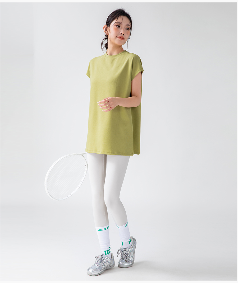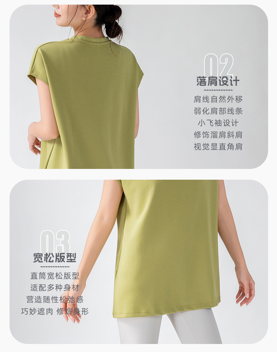 跃牌【美西西系列】设计感百搭复古文艺小飞袖中长款运动健身宽松上衣女DX-518