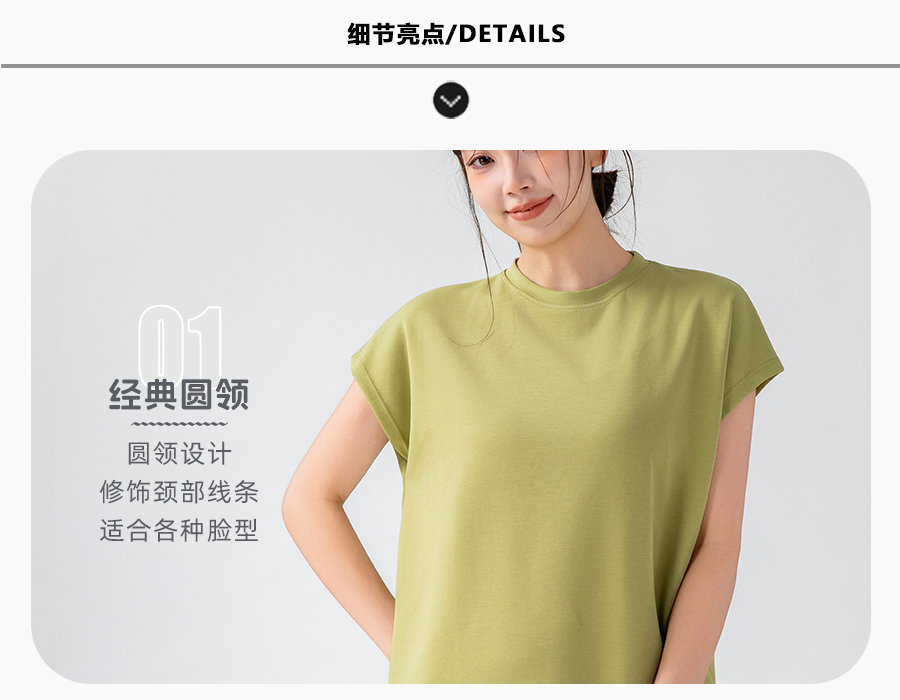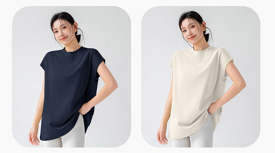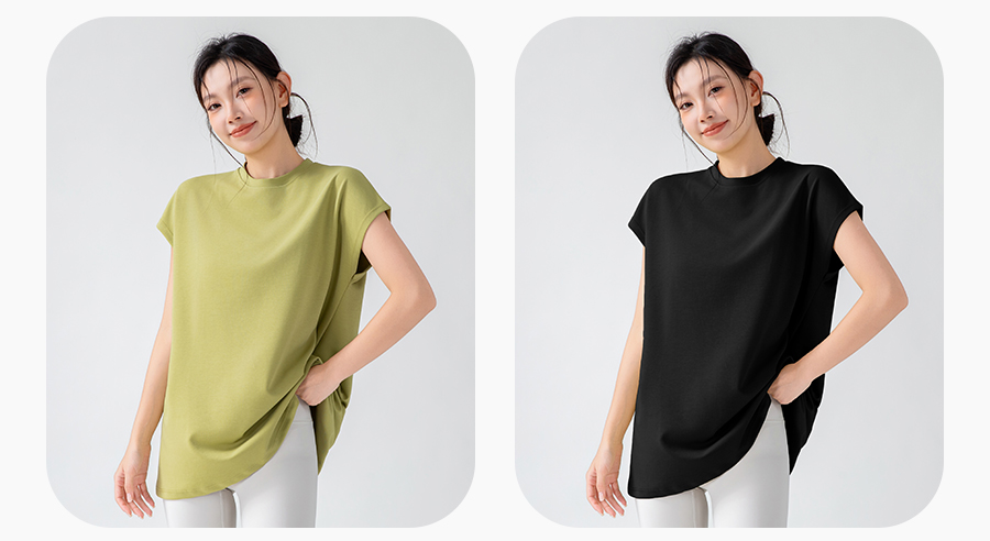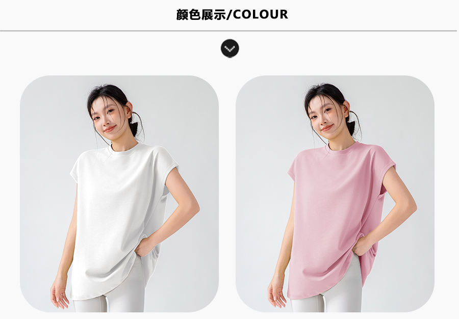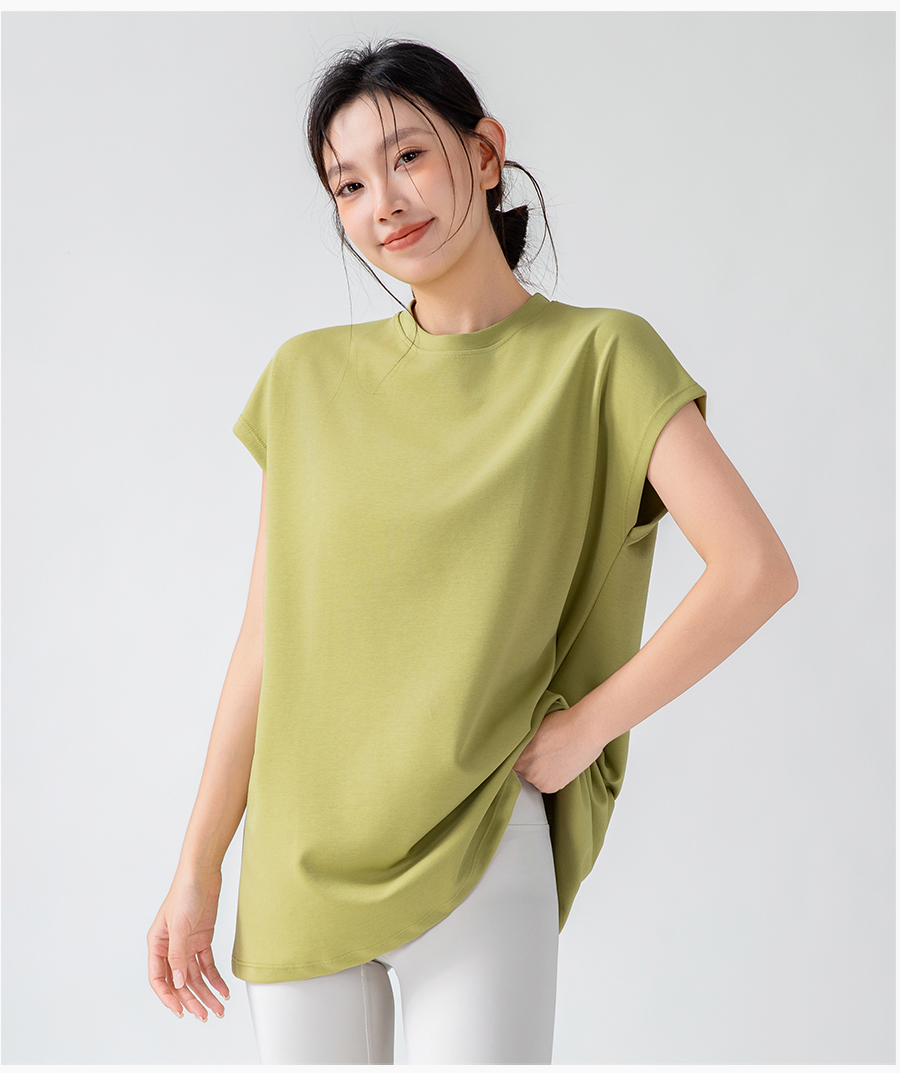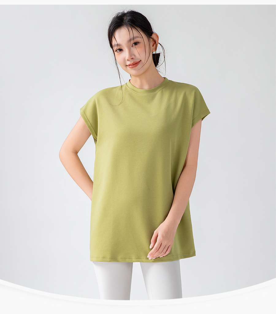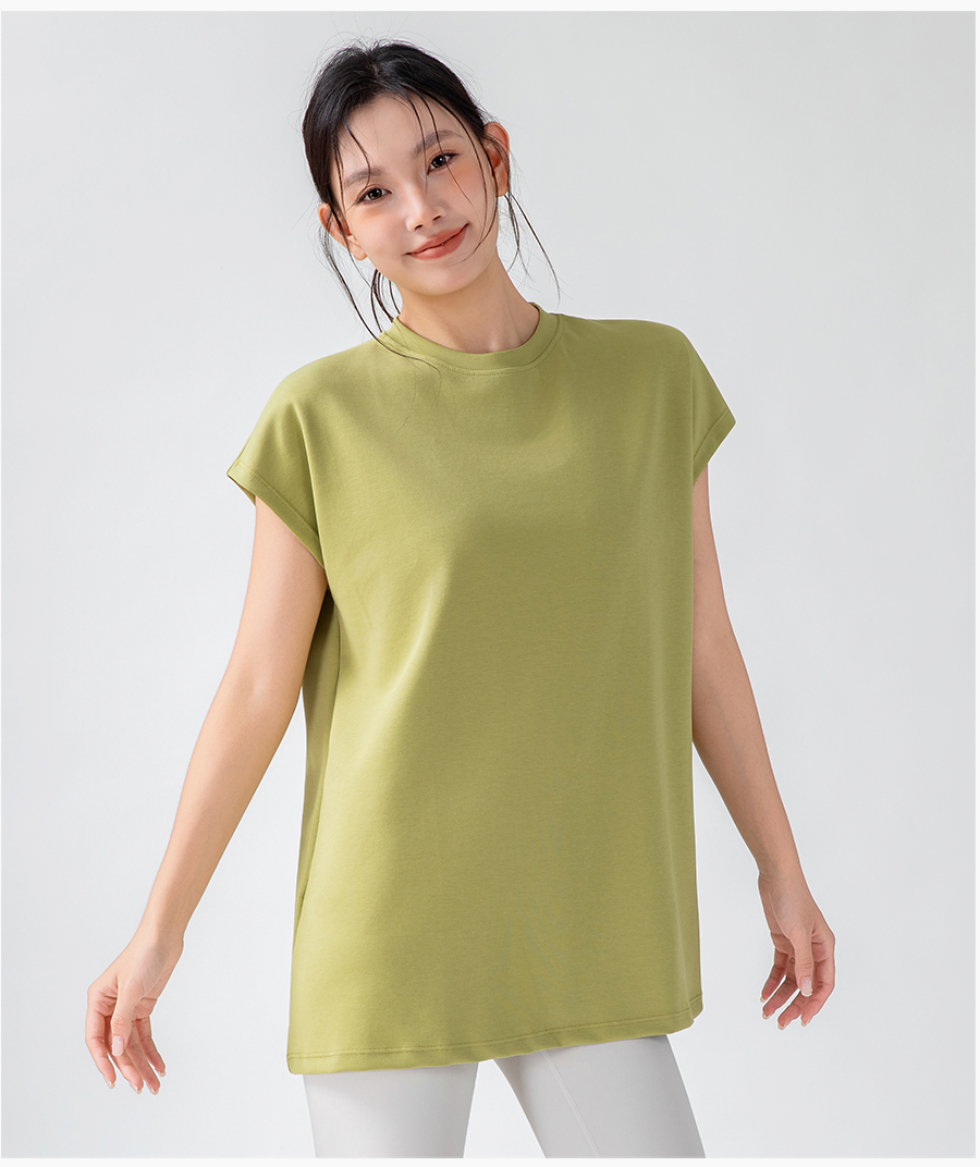 跃牌【美西西系列】设计感百搭复古文艺小飞袖中长款运动健身宽松上衣女DX-518