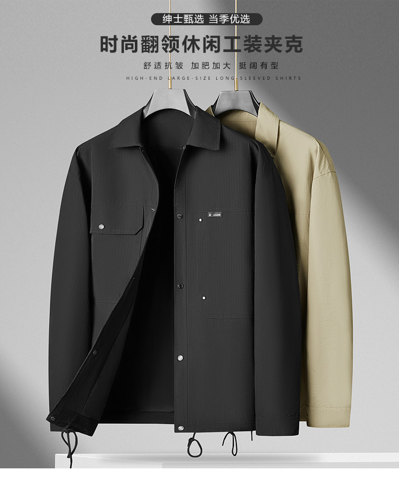 大依优型大码男装春秋翻领工装夹克外套休闲百搭潮流长袖外套300斤