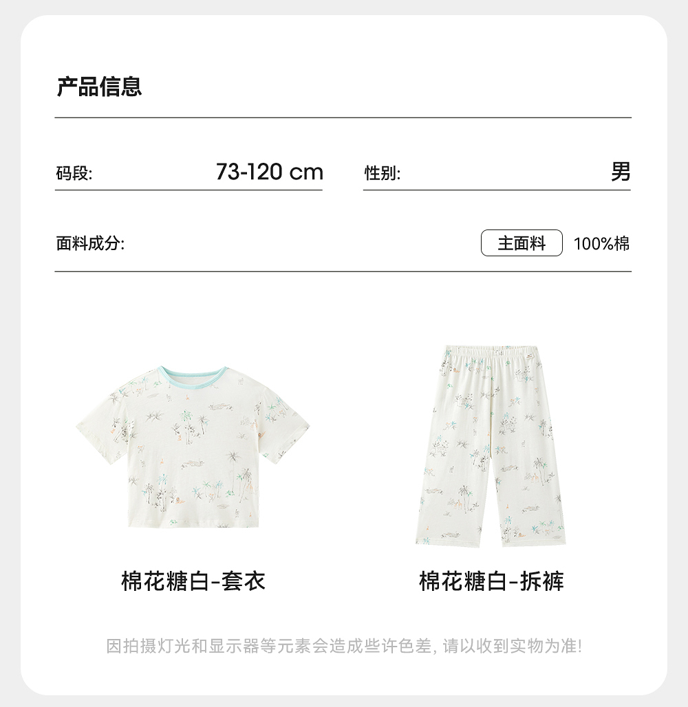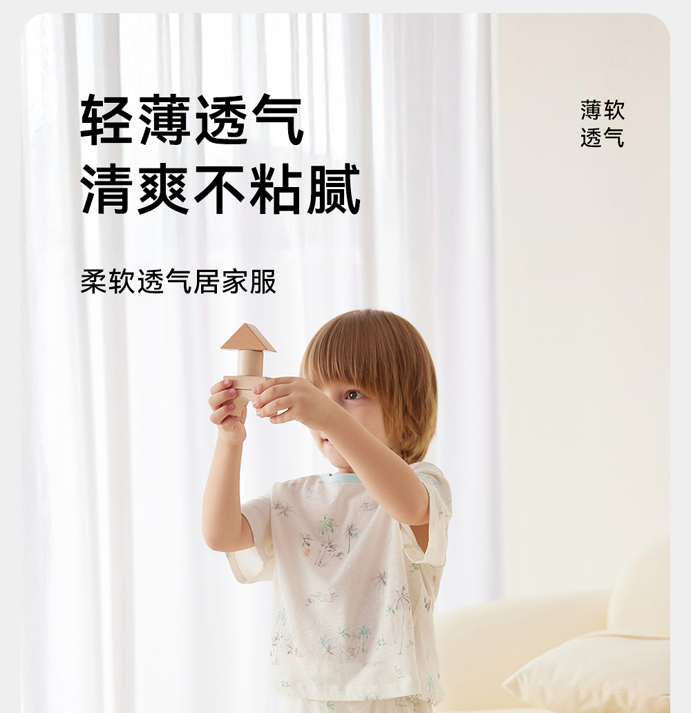 【商场同款】英氏儿童家居服夏季薄透气凉爽短袖2025新款中裤睡衣