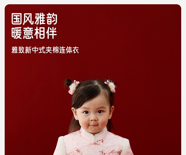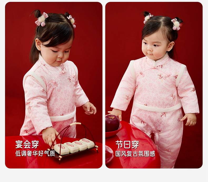 【商场同款】英氏婴儿哈衣女宝宝新生儿爬服连体衣喜庆新年新款