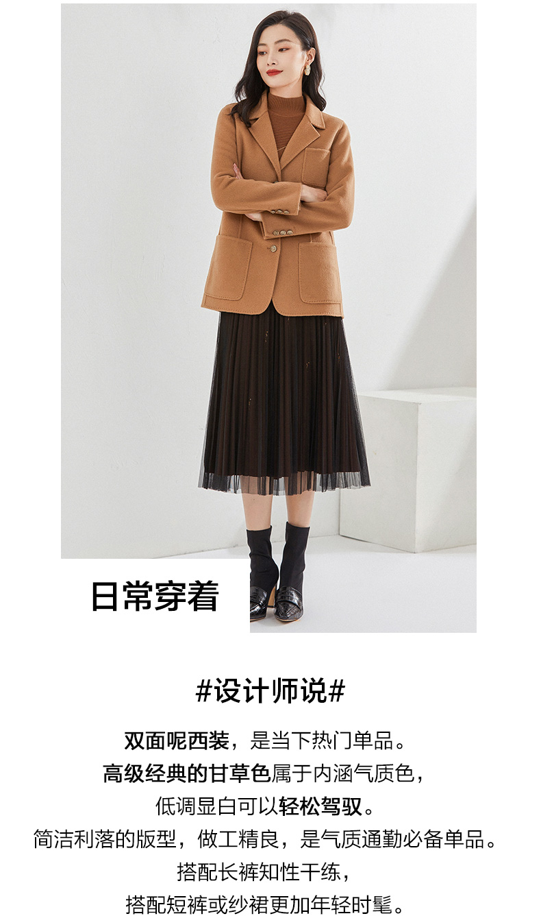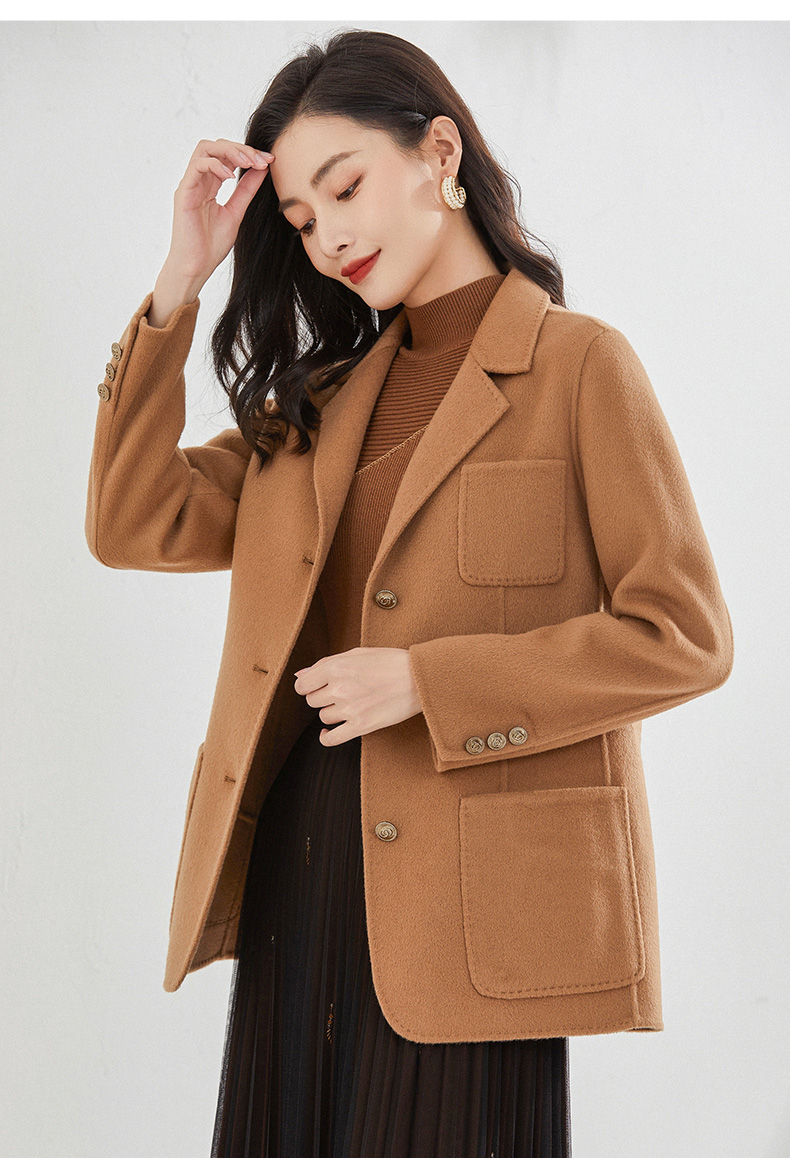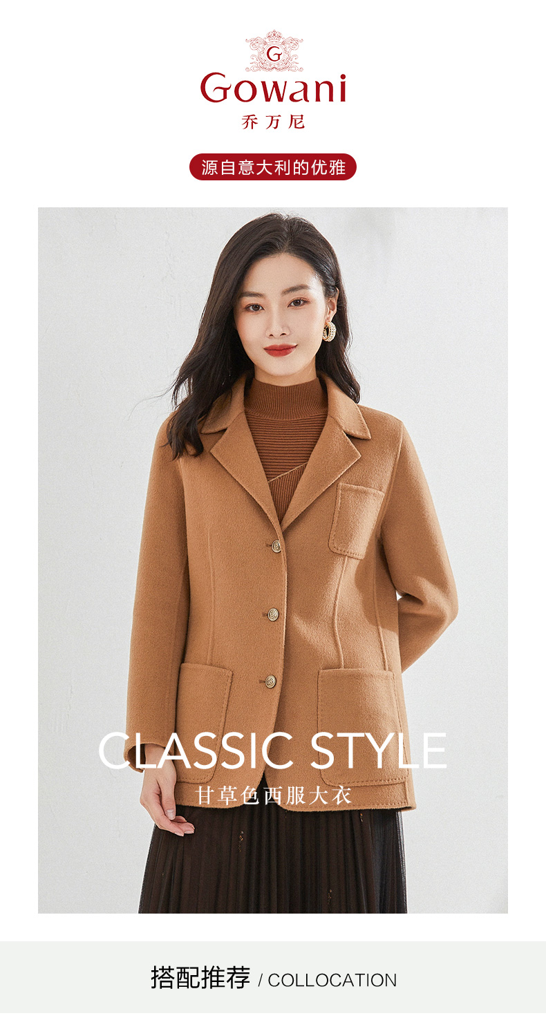 【羊绒】乔万尼新品双面绵羊毛大衣短款驼色西装EI4B543