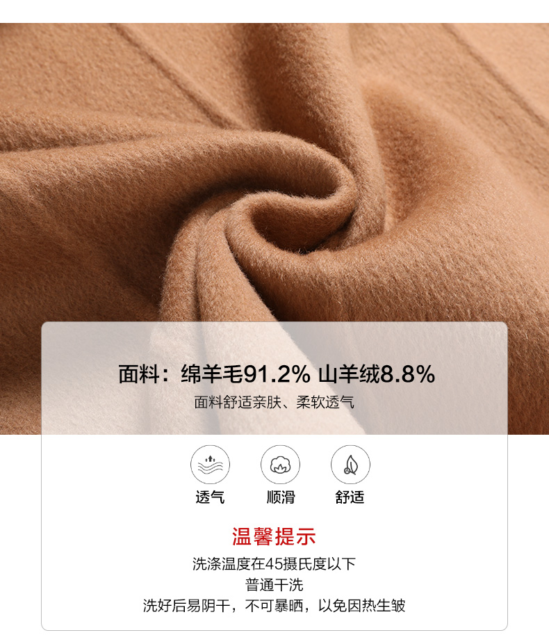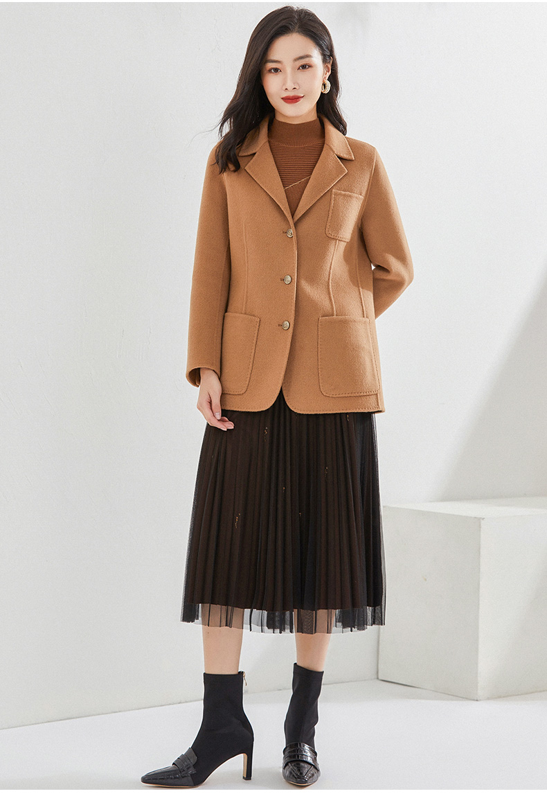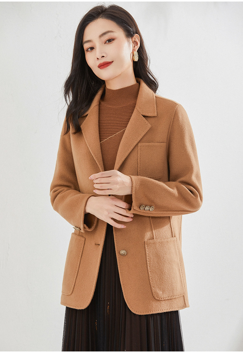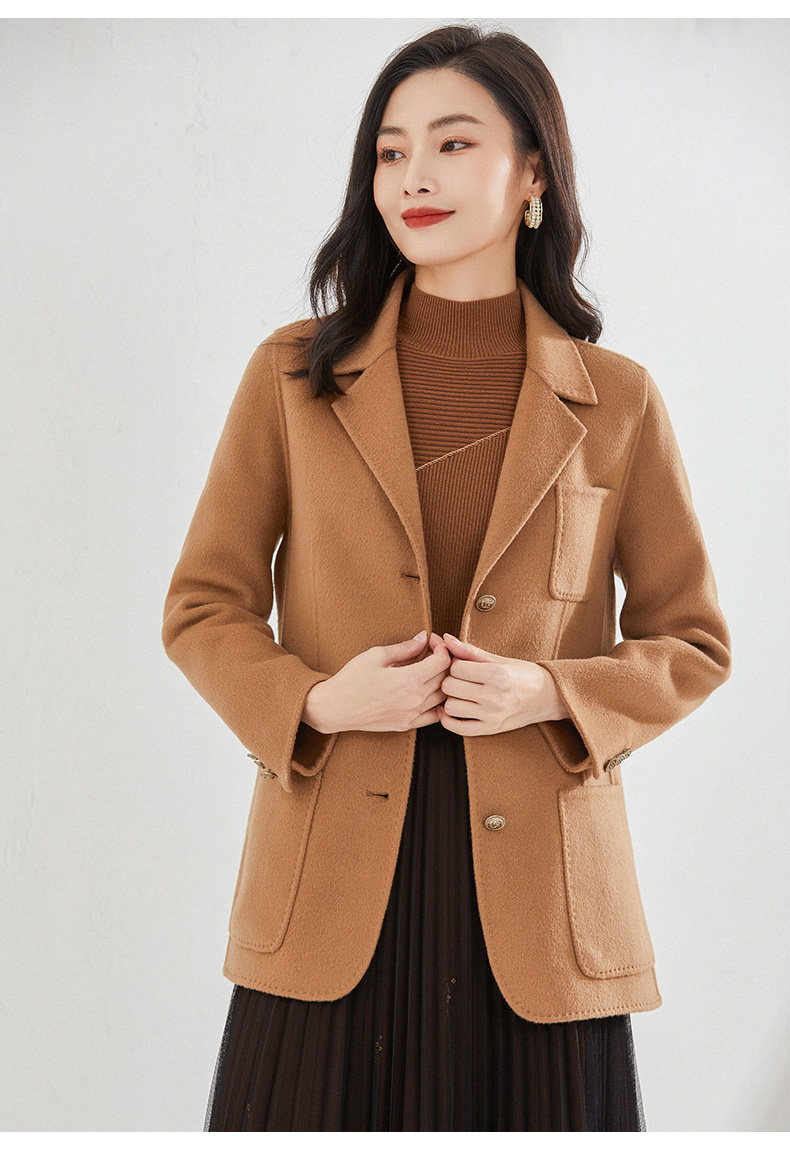 【羊绒】乔万尼新品双面绵羊毛大衣短款驼色西装EI4B543
