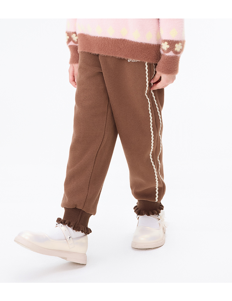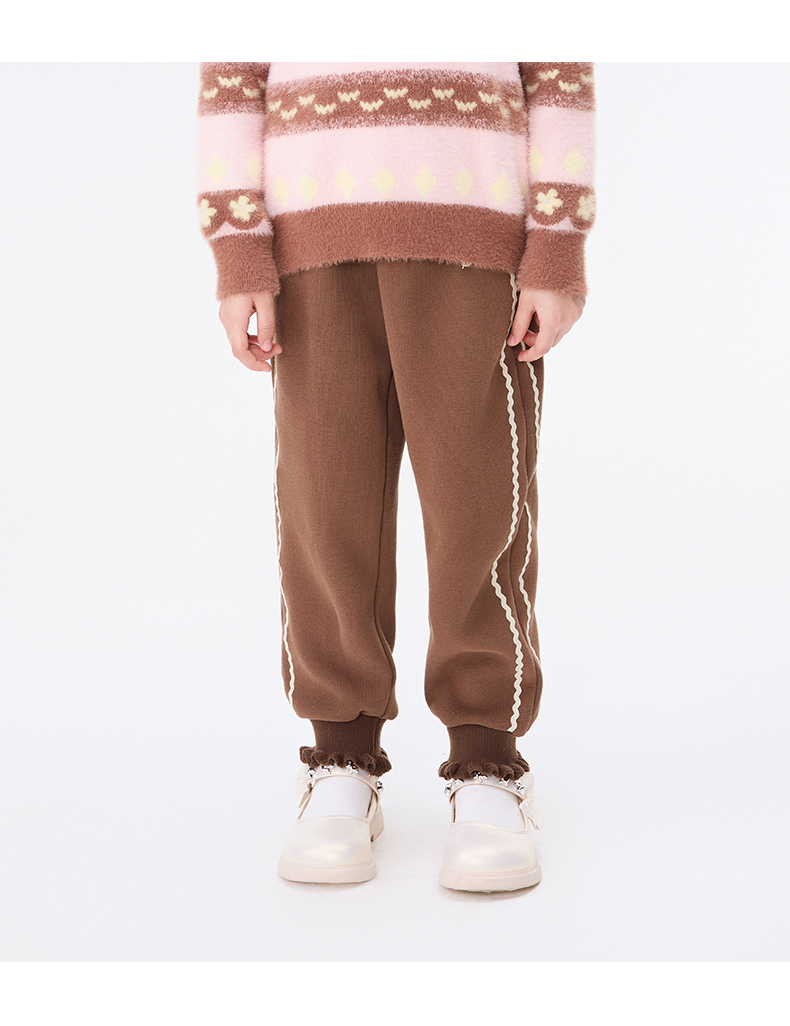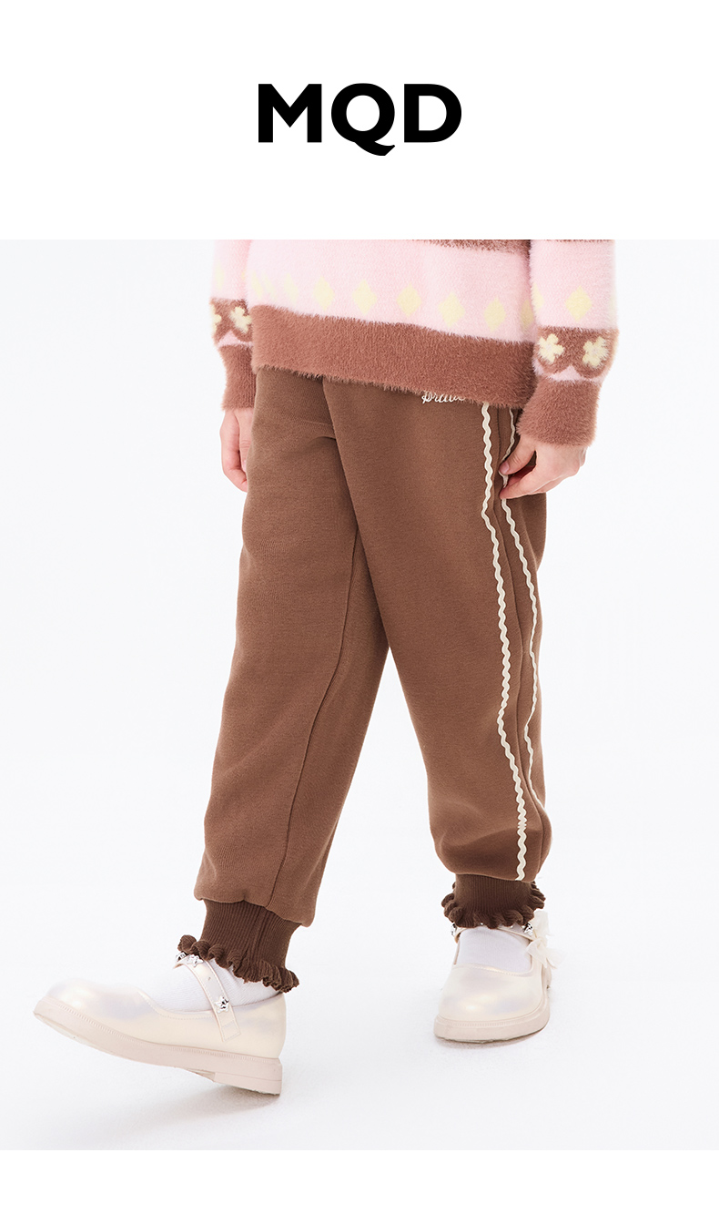 【秒3】【MQD】女童冬季波浪织带运动休闲针织长裤